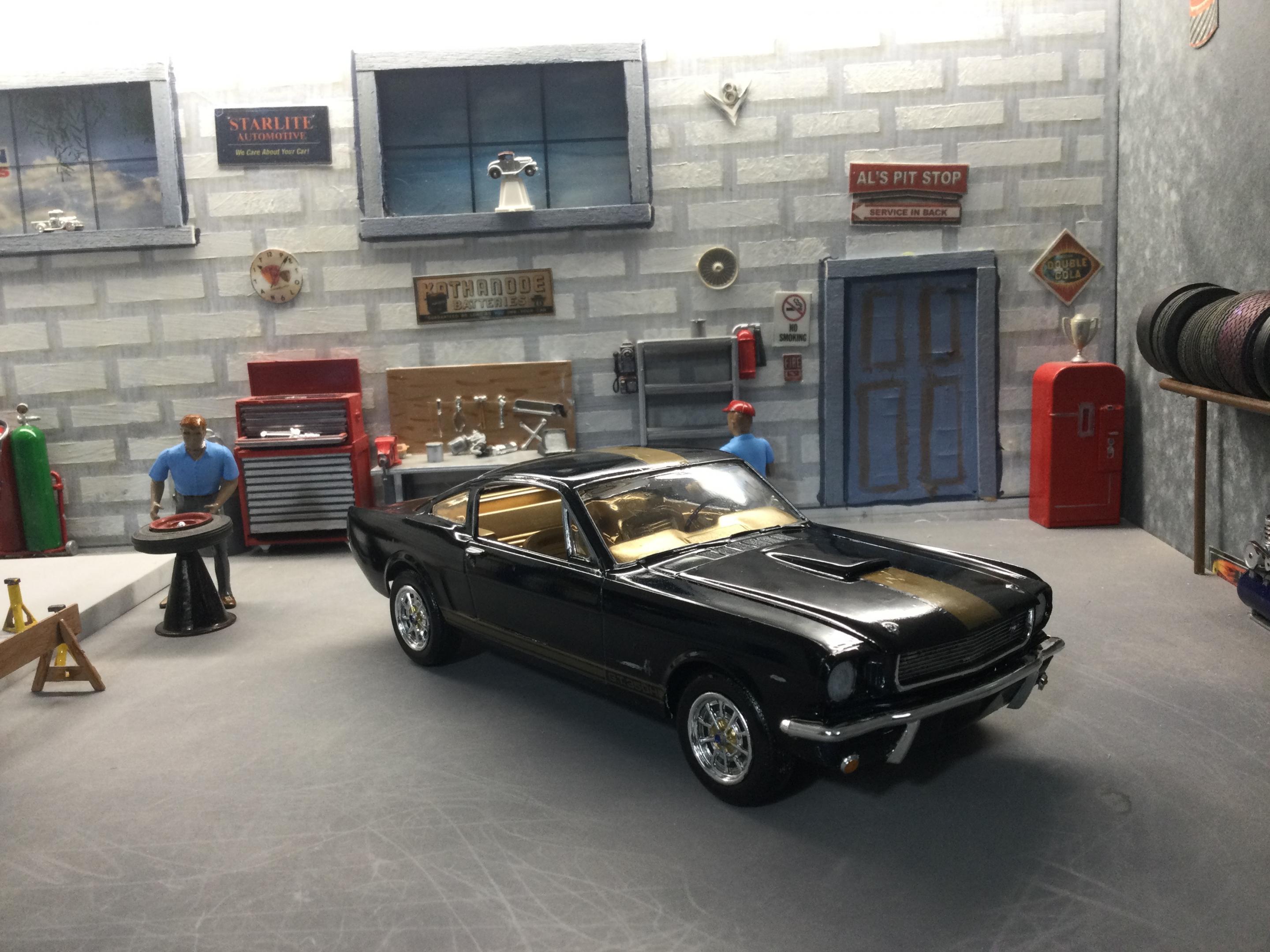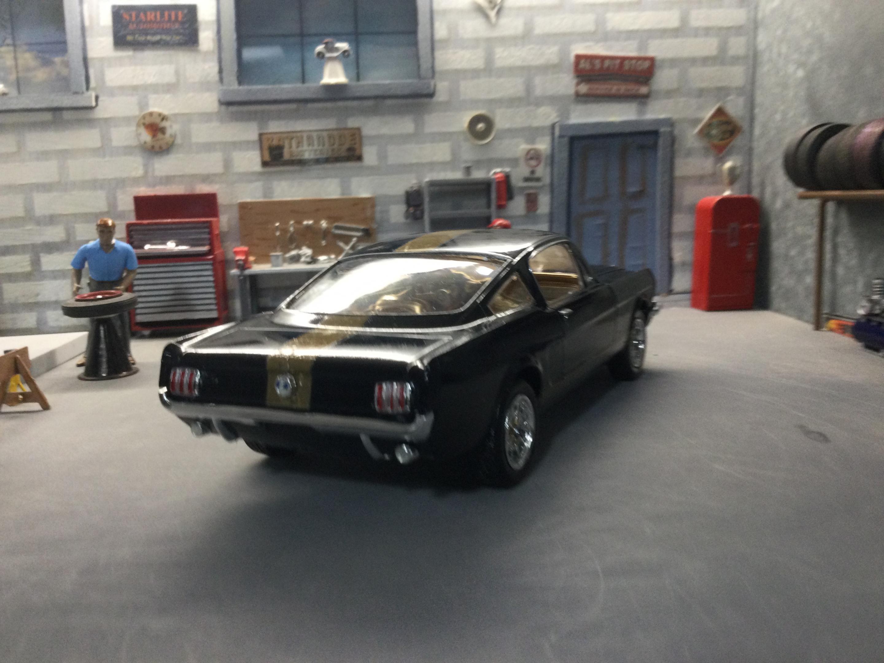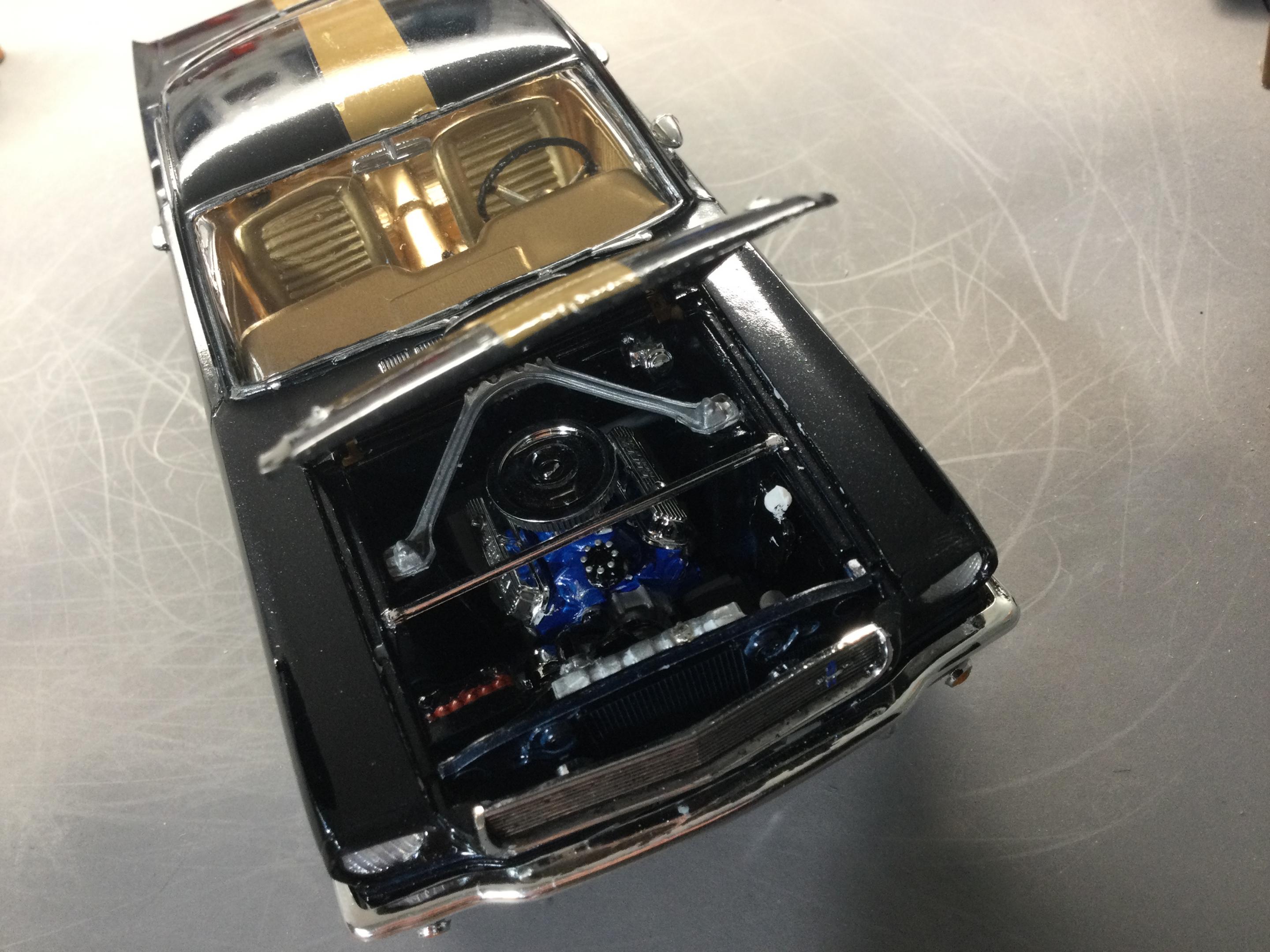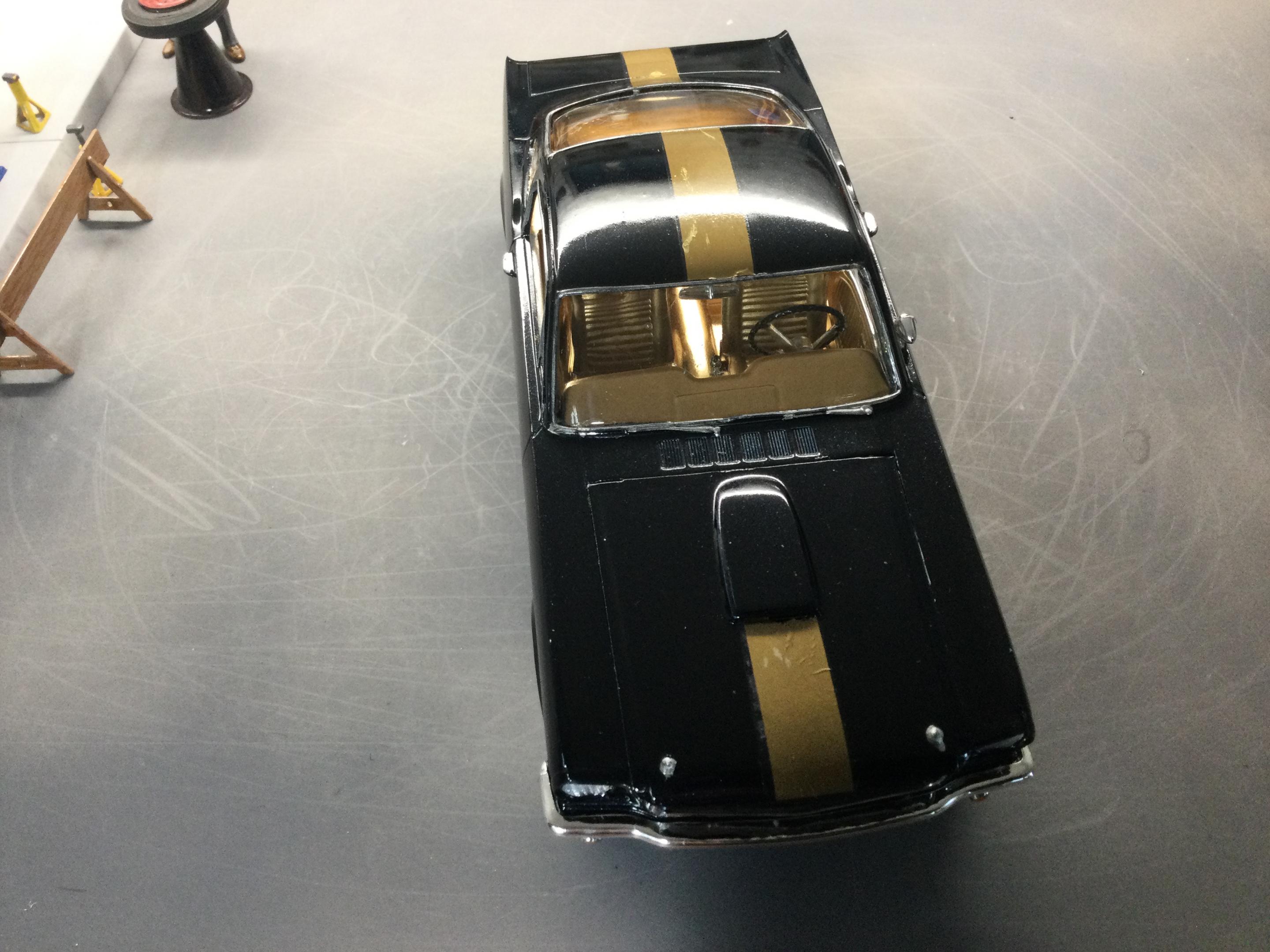 I really can't call this a Shelby because I messed the decals up. Decals and I just don't get along. So I made due with what actually kind of stayed together. The decals were the reason for the gold interior. The color is from an old Duplicolor. You know when they had the smaller cans. So I don't know the color. But it's actually a very dark metallic blue.