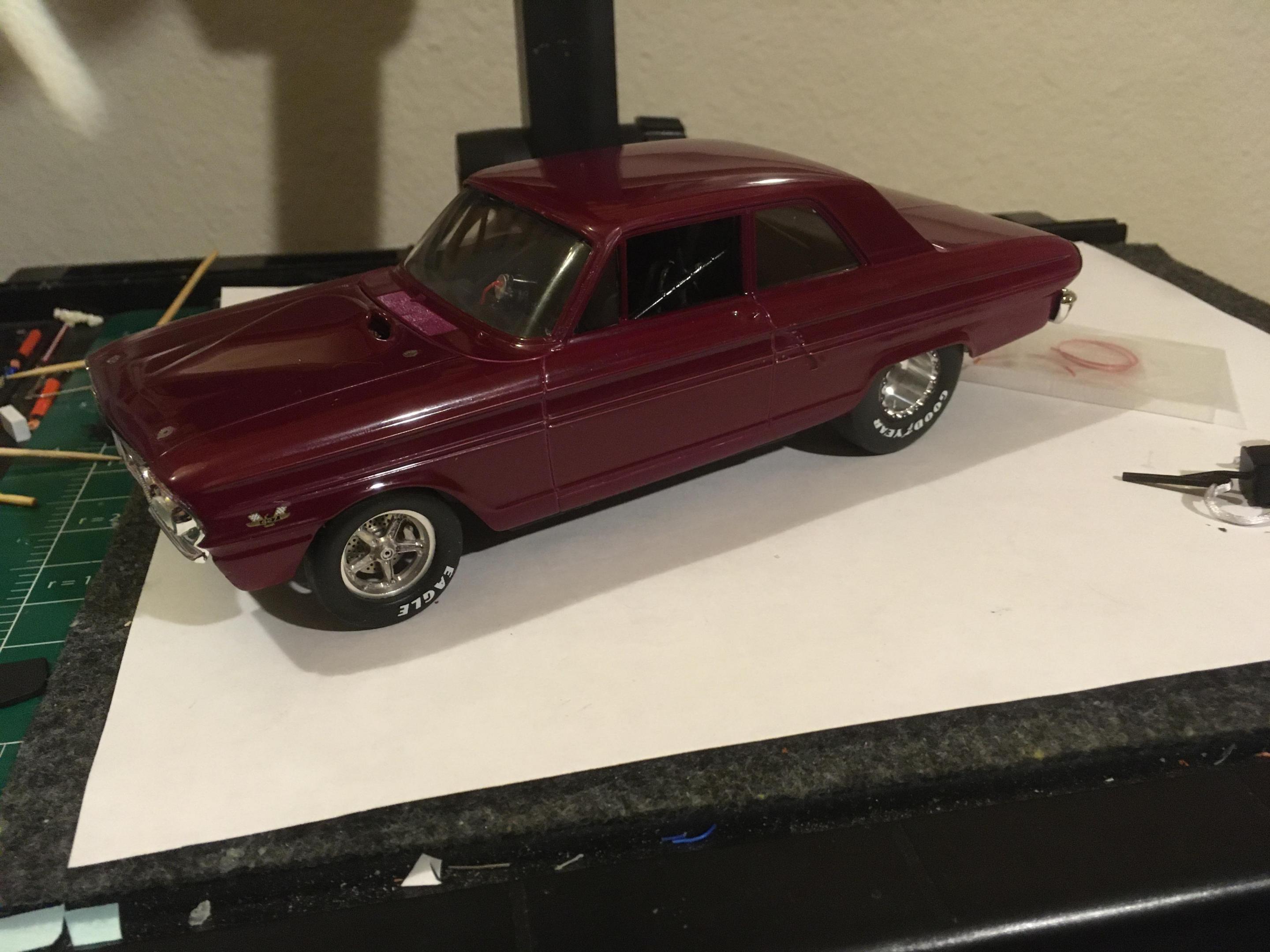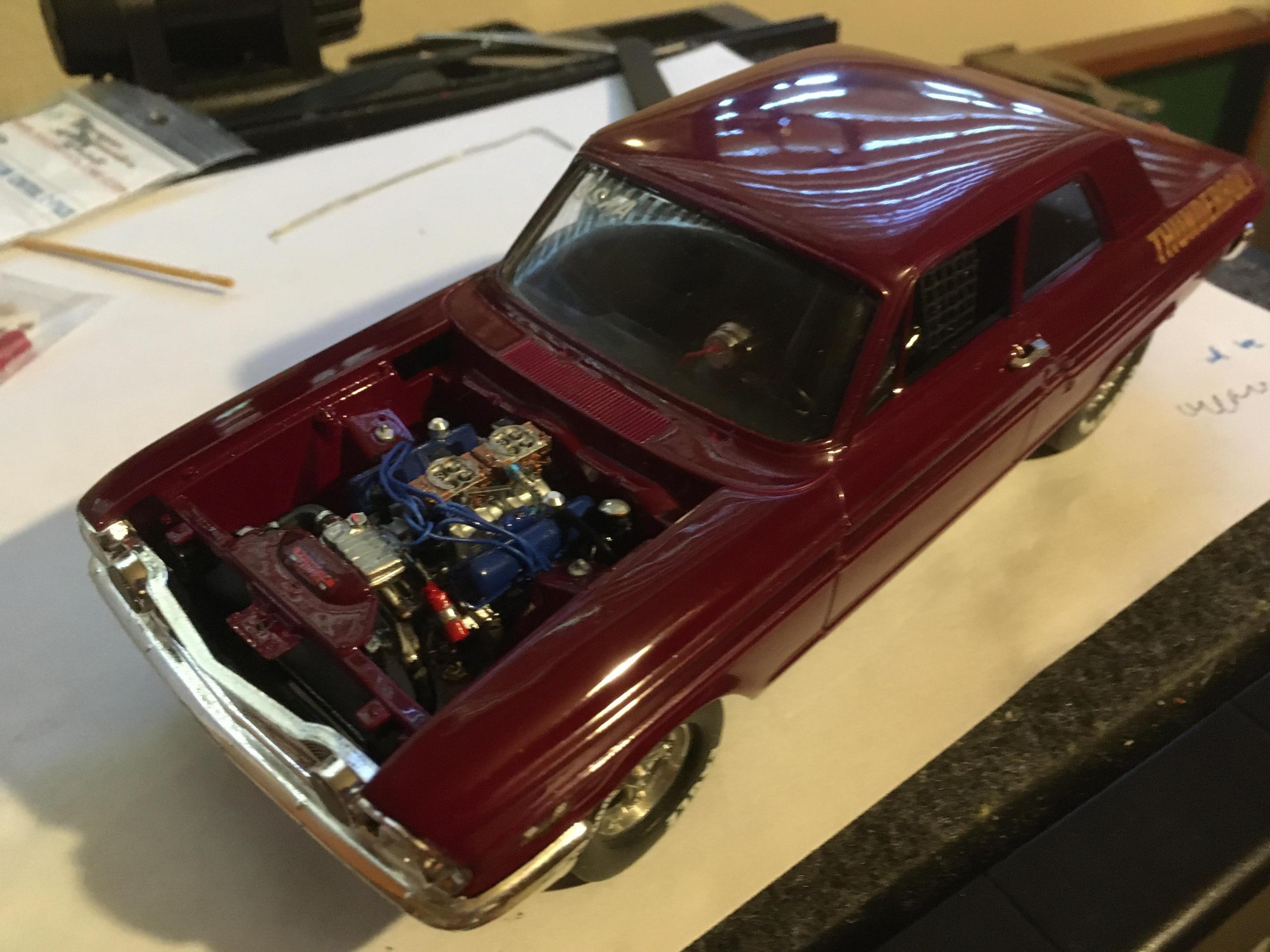 Been away working on a 1:1 hotrod . Getting some time to build lately. Needed to put another coat on the body but couldn't find more paint so I decided to strip and went with this ruby color that I like alot better. Added some interior and engine detail too.