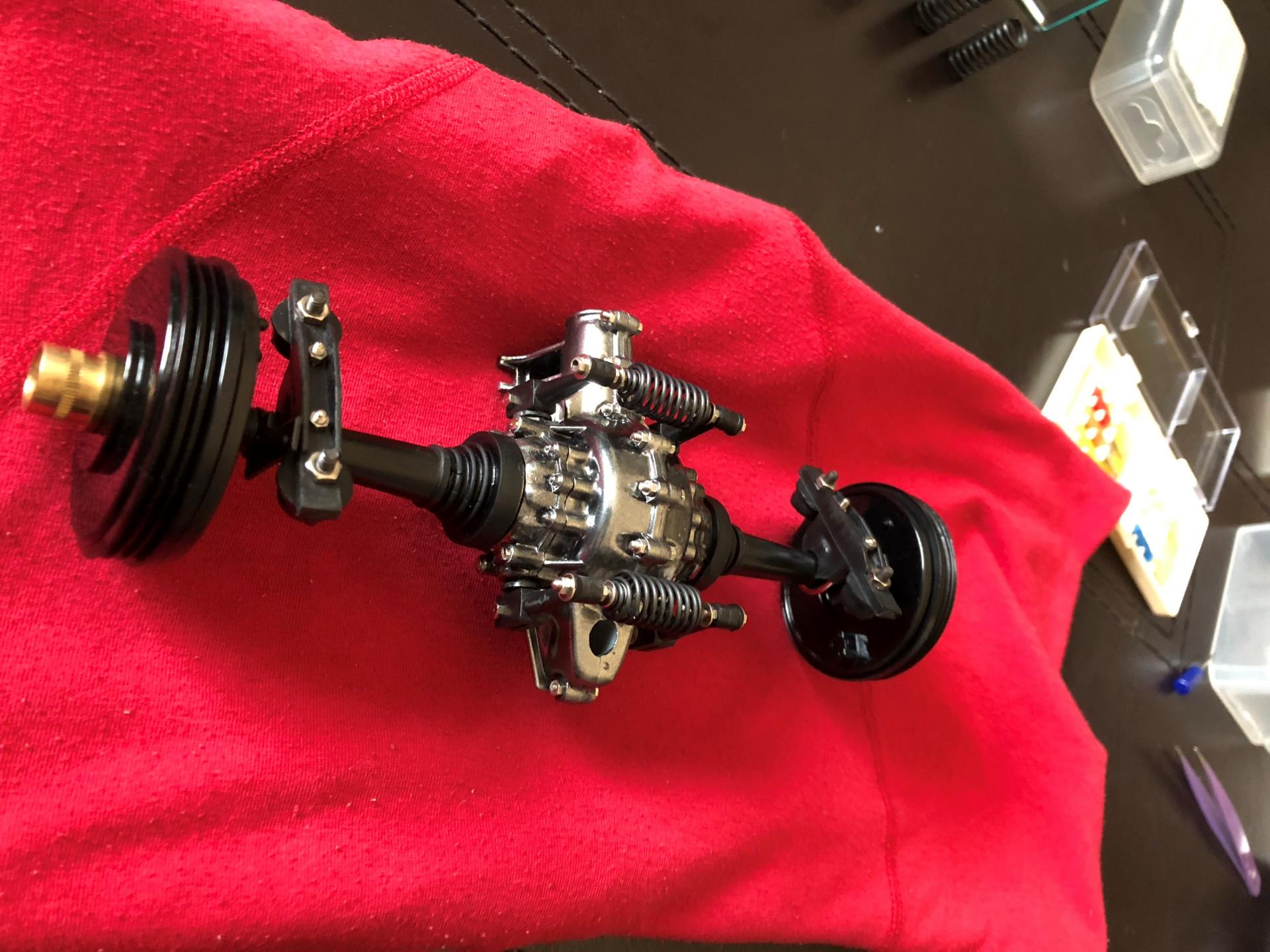 engine partially done , will continue the wires connection and fitting when it will be connected on to the frame ... just missing the top cover with the MERCEDES Benz inscription , need to re do it as I was not happy with the result ... and by trying to much I damage it , Marvin from modelmotorcars.com save me as he had an extra one . I got it , and will do it later on . next step : frame body assembly / wheels and rims / triangle suspension front and rear / gas tank exhaust line and muffler .