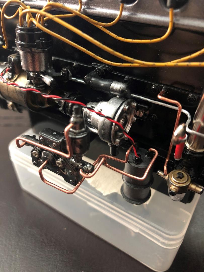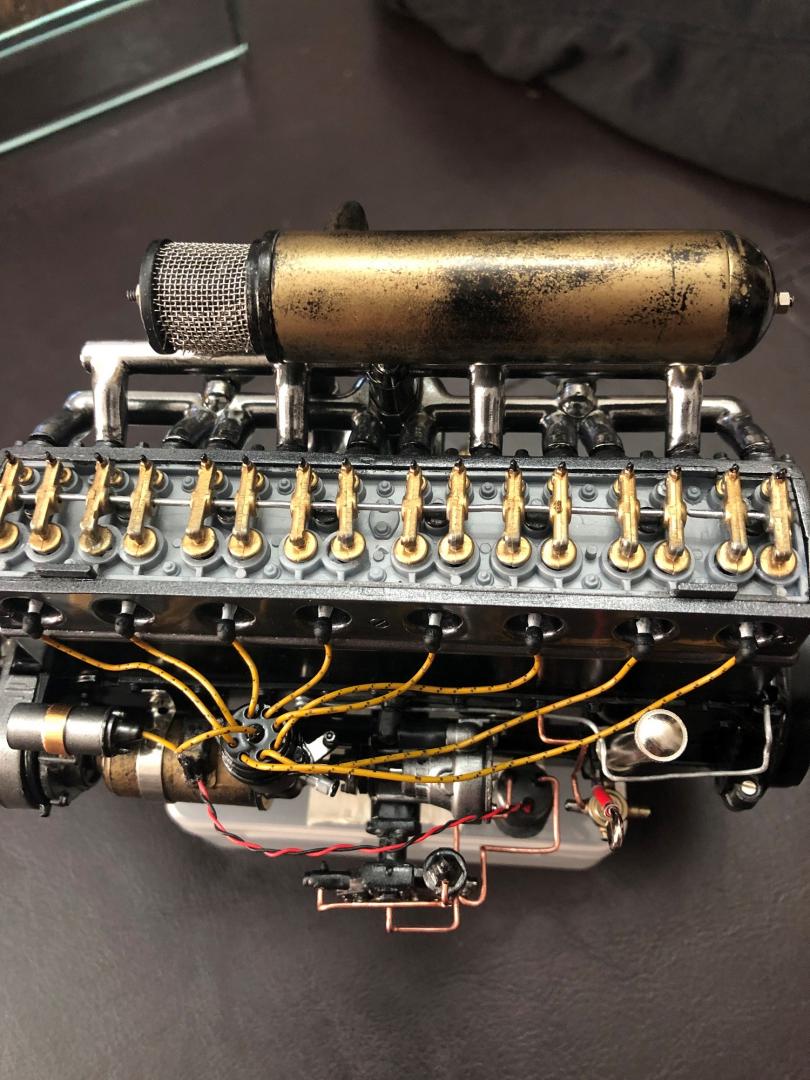 thank you , the yellow wires are from the Pocher website of Marvin https://www.modelmotorcars.com/ There is a shop section with all upgrade parts available depending on your model you are building . the black ( head) part connecting are the original one from the kit ( you cut and remove the original black wire , drill a small hole in the head and connect the yellow one inside .) then for the red and black one , taken from an old digital camera that I open apart , and took small screws that I added to the engine part for more realism , the red & black wire were thin enough and adding some different colors, for more detailing final impression. ( improvisation is Pocher philosophy.) !!!!!