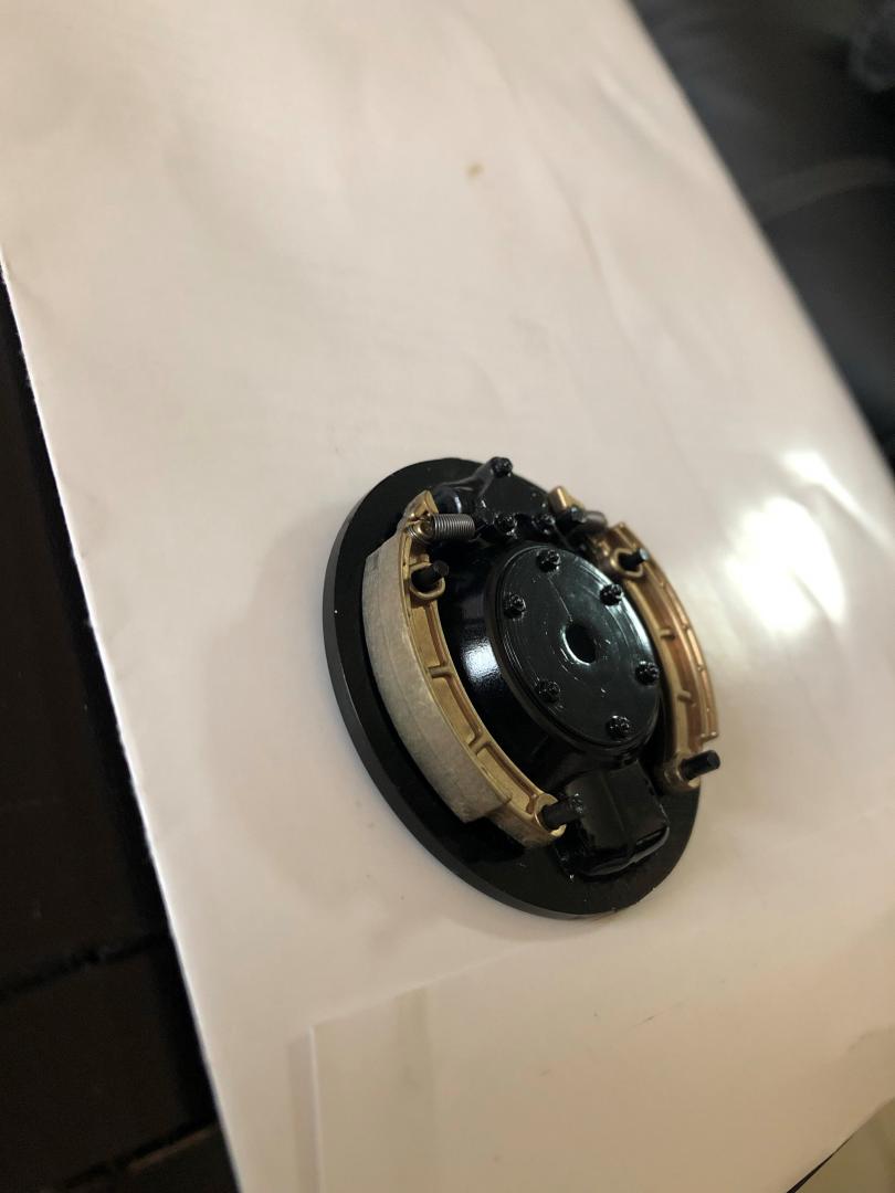 wheels and rims .... hard to decide how to paint those rims and then insert them as the original tires are very hard and lack of flexion . I decided to paint the rims then trying without damage to fit them inside . it was a risk . i did a thin white line on the tires , the rims have been paint in gloss back first then Alclad chrome , then end of the spoke have been re paint in black manually with a brush , a brass bolt have been added to simulate a valve that doesn't exist ... the Pocher wheels use to be amazingly done , but the K91 model was a disgrace on that part . try my best to upgrade the final looking. I unfortunately loose the mirror effect of the Aclad paint during the assembly as I had to put Vaseline as it was nearly impossible . will have to to do the trim . this will be later on .
