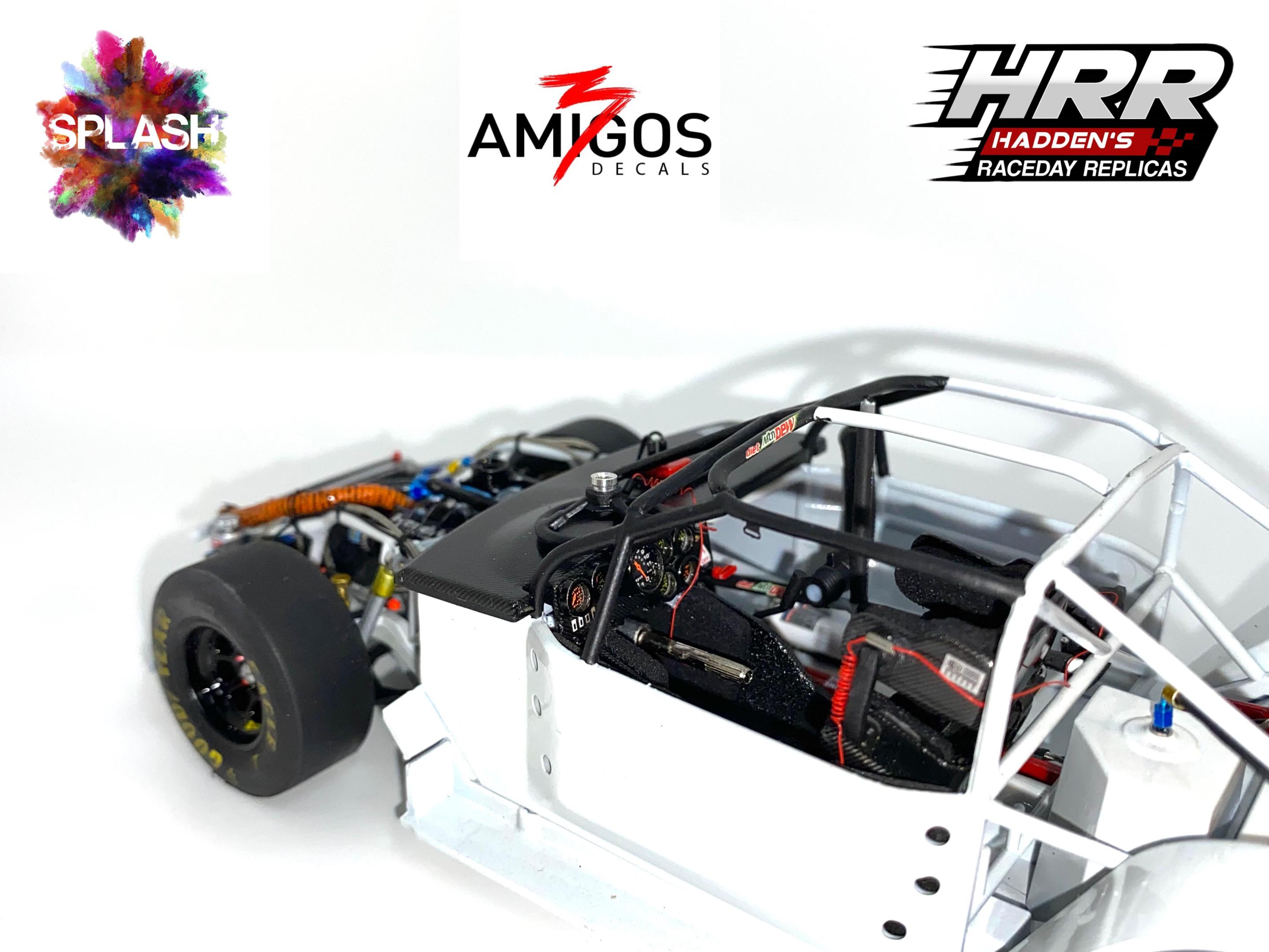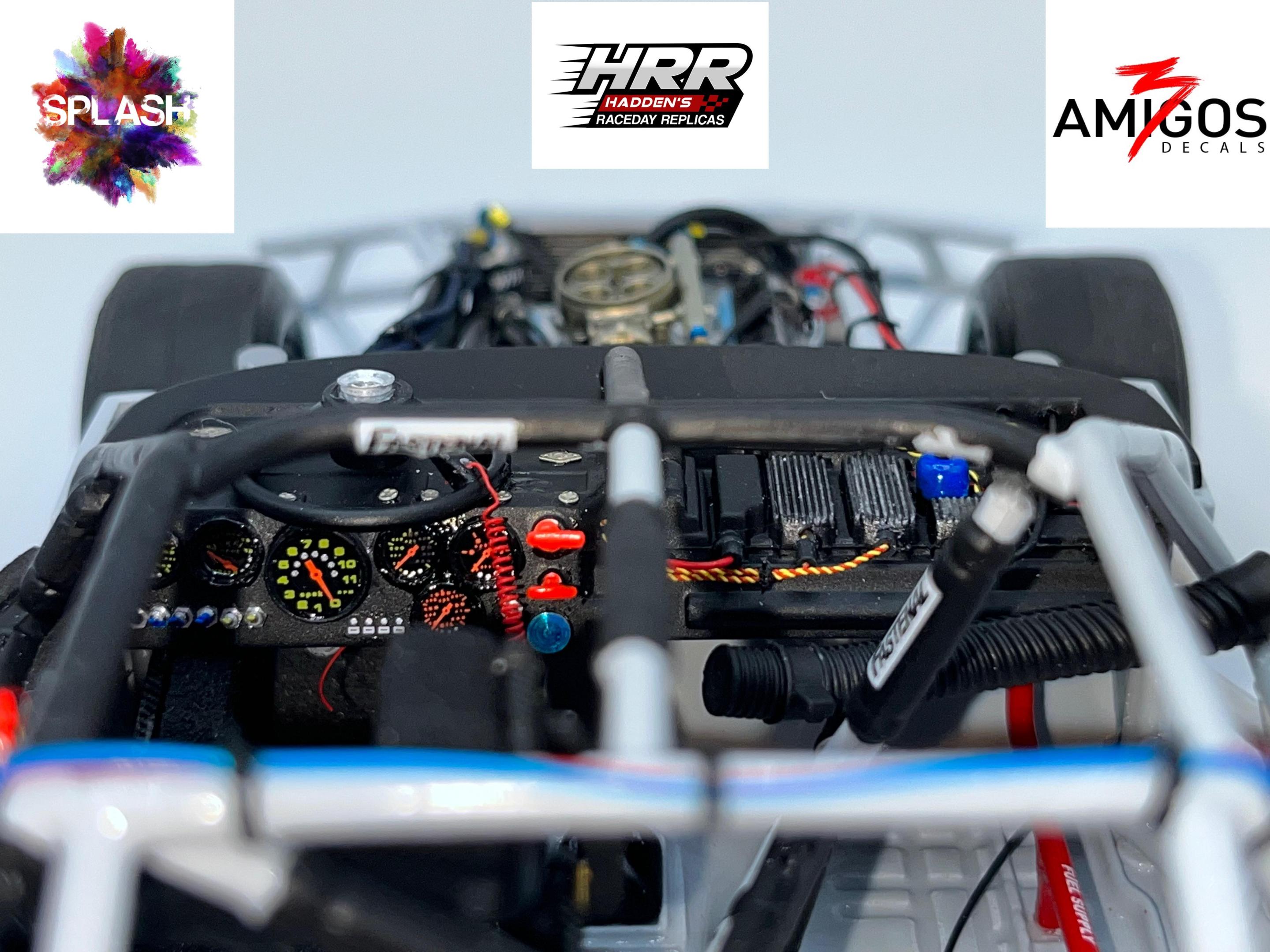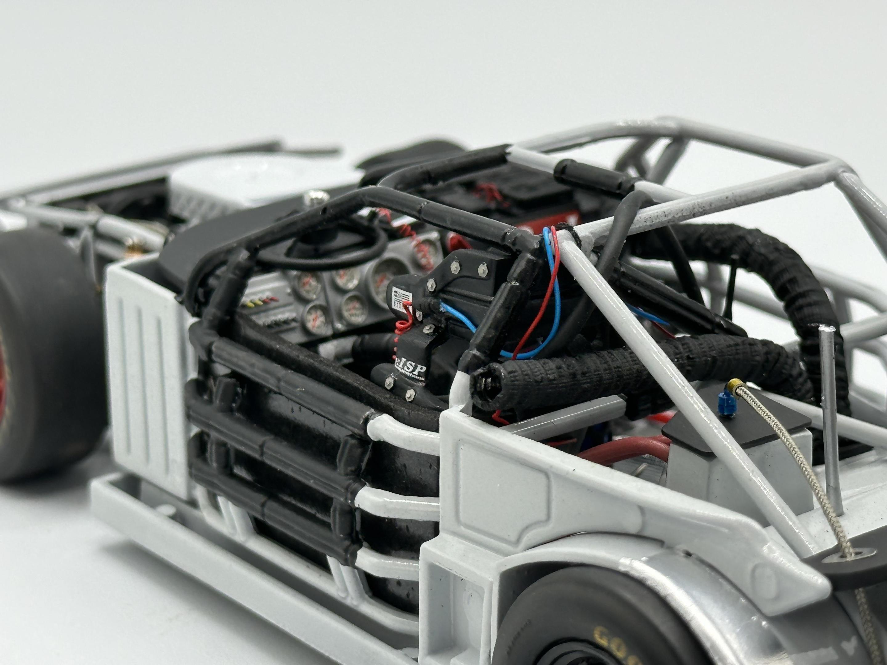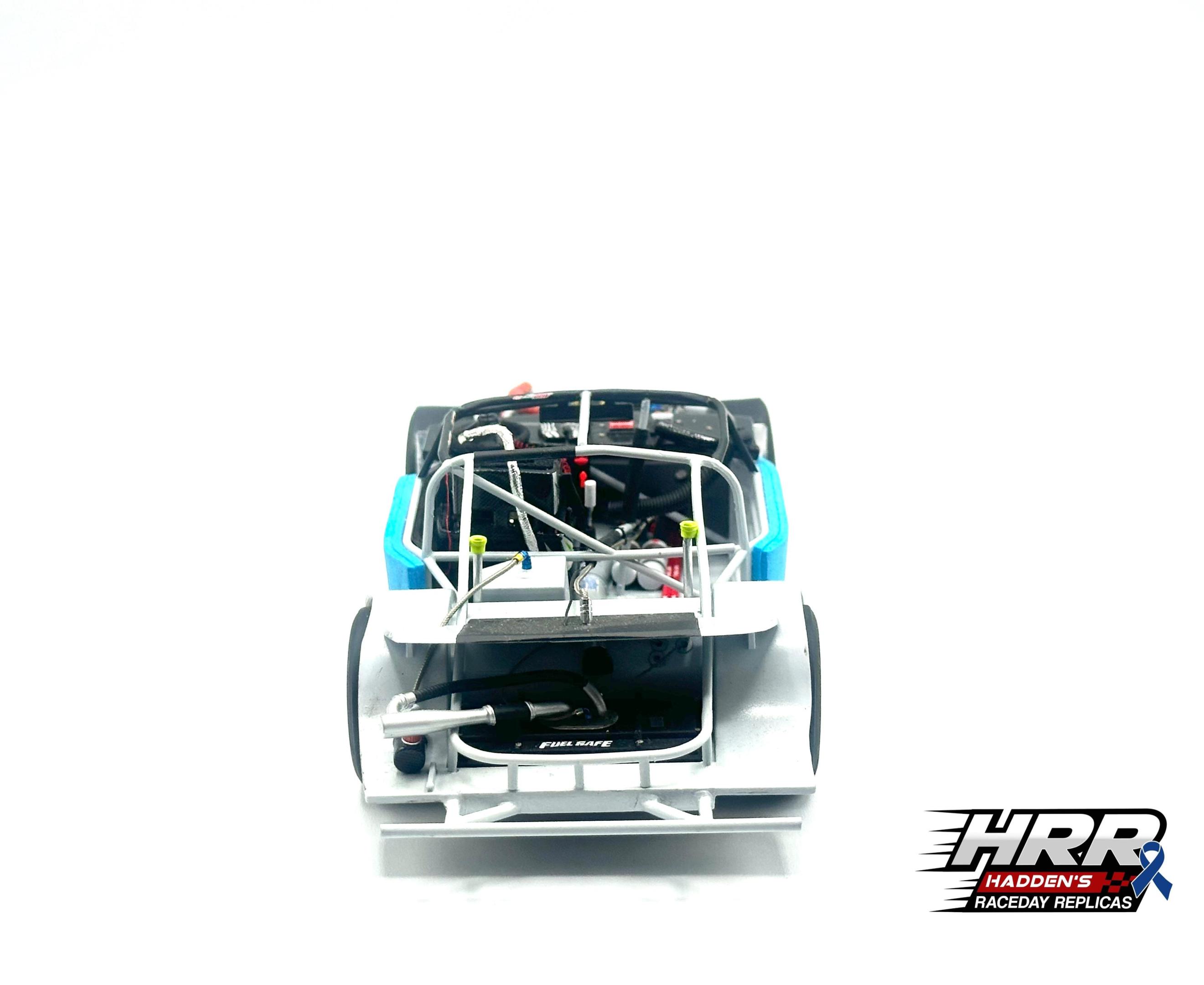 This one has been done for sometime now just getting around to posting it. This is a Revell kit, splash paints and 2k, 3 Amigos decals, also can’t thank Mark at MPR decals for the roof camera logos. I used a lot of protech fittings, a lot of detail nuts from rb motion, also fittings and wire from Detail Masters. I added the superspeedway splitter and bumper extensions. The helmet and HANS device are from GF Models.