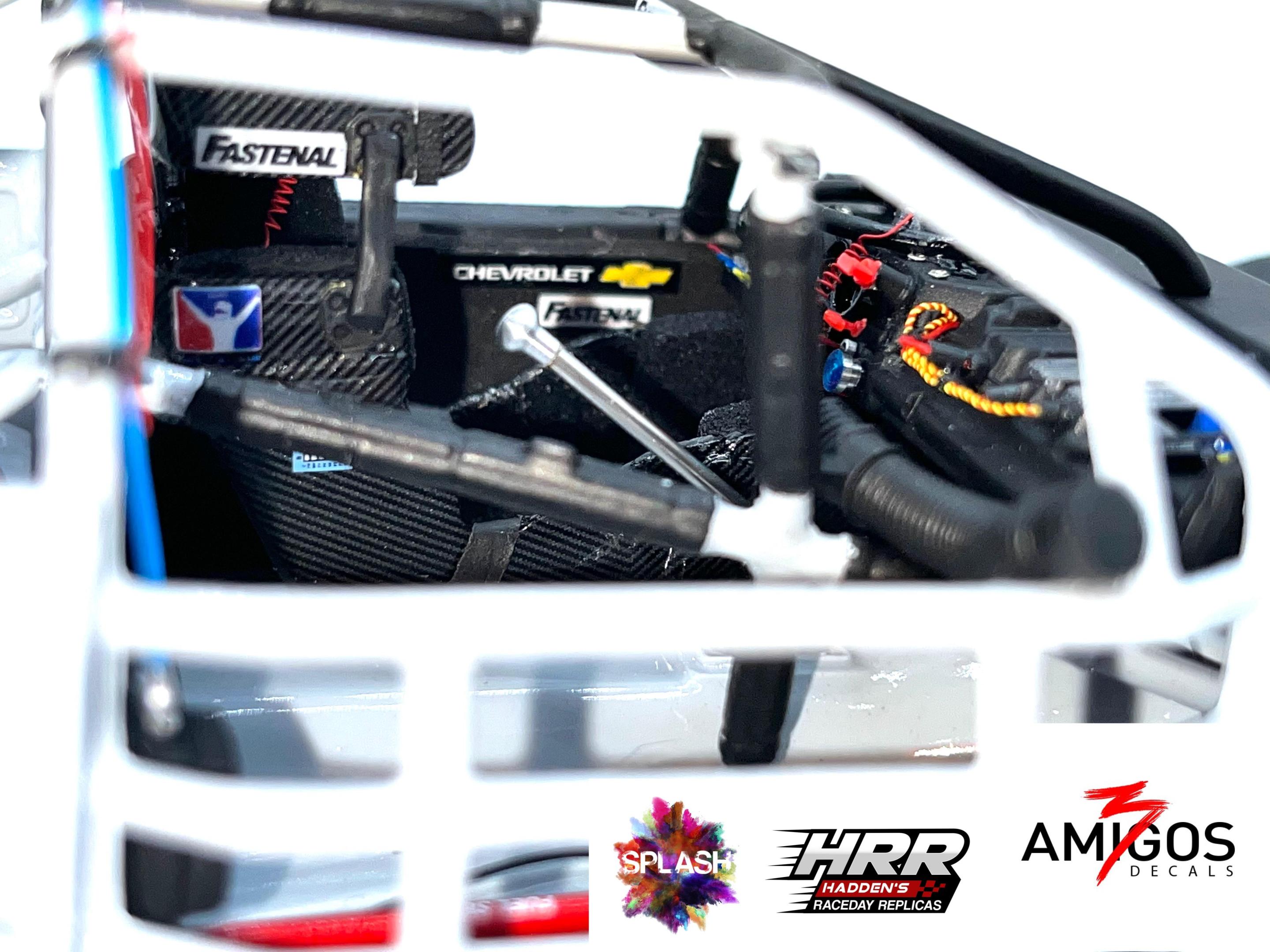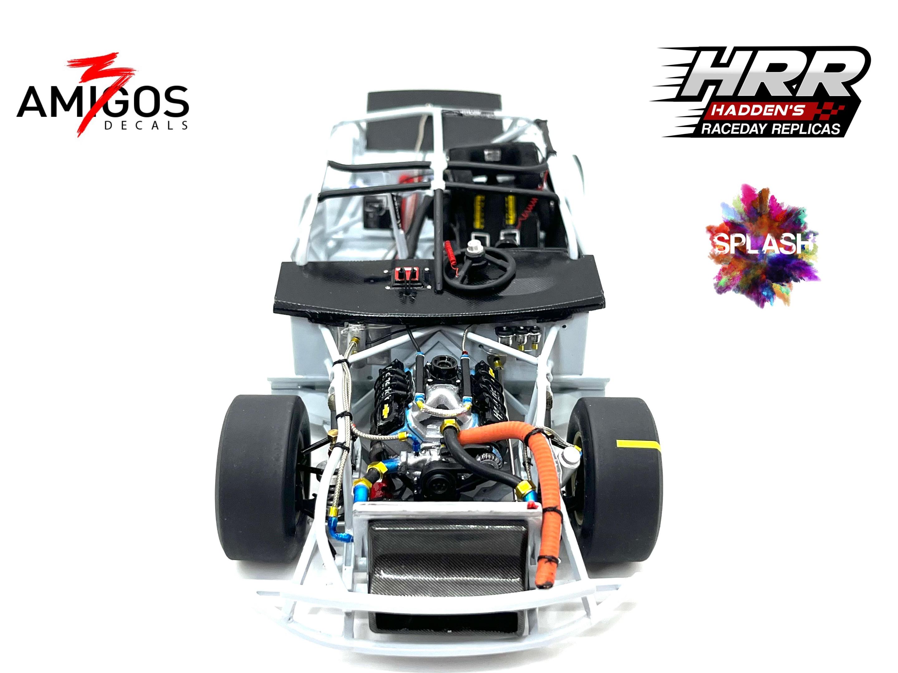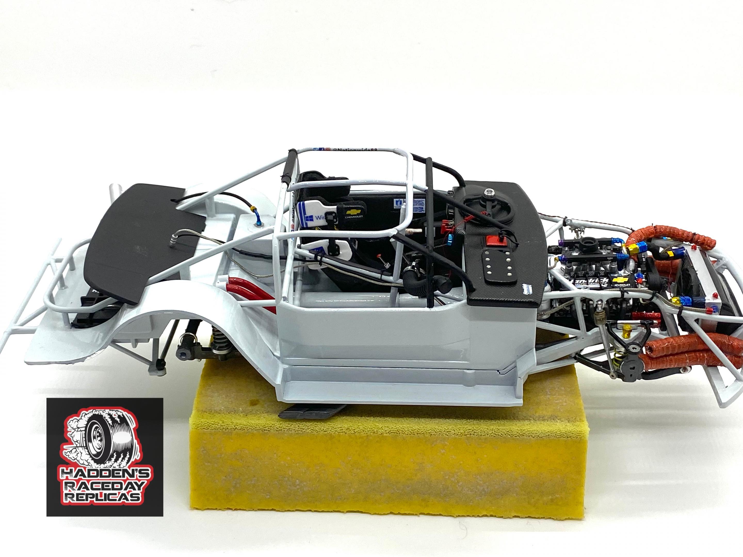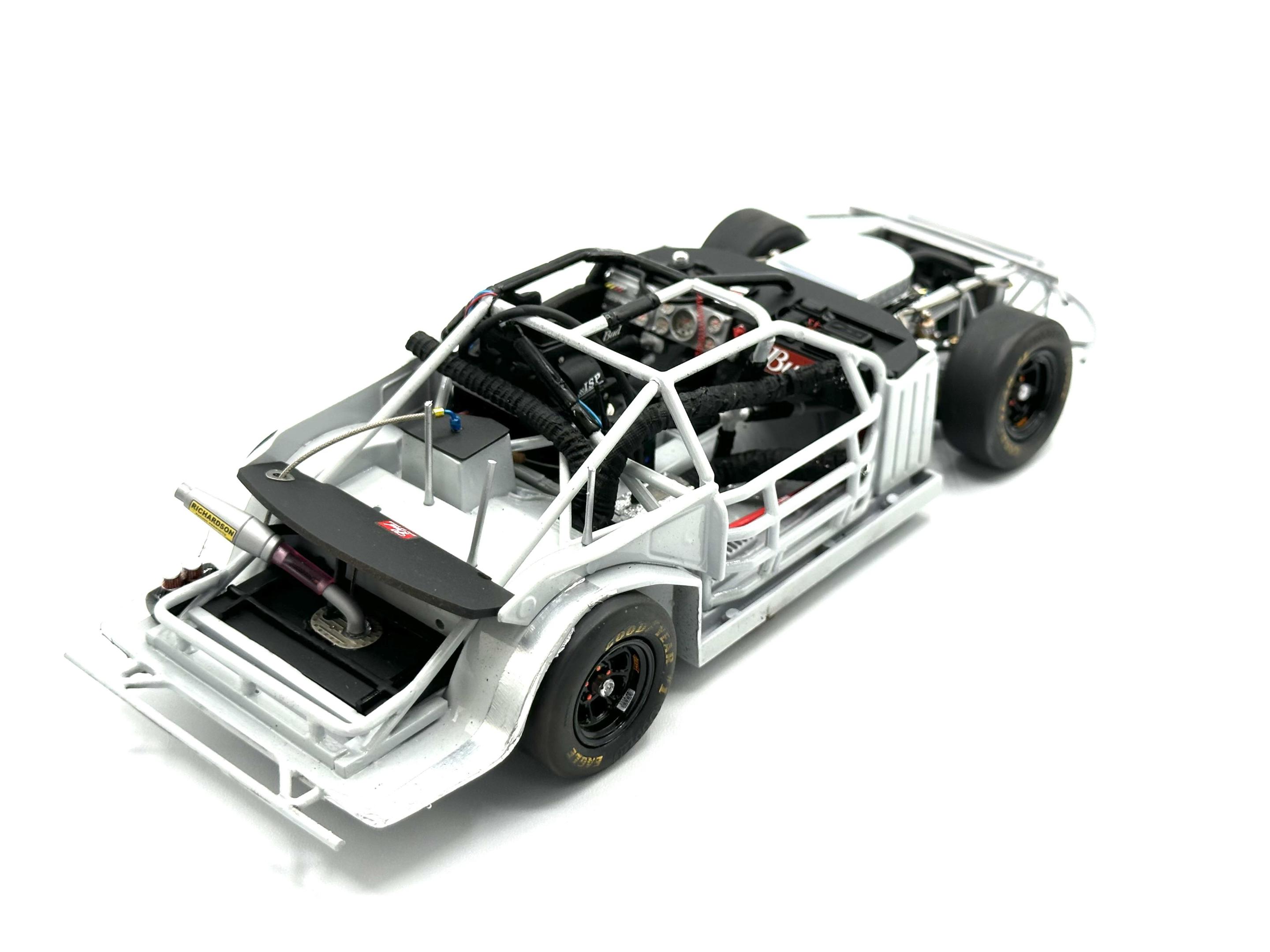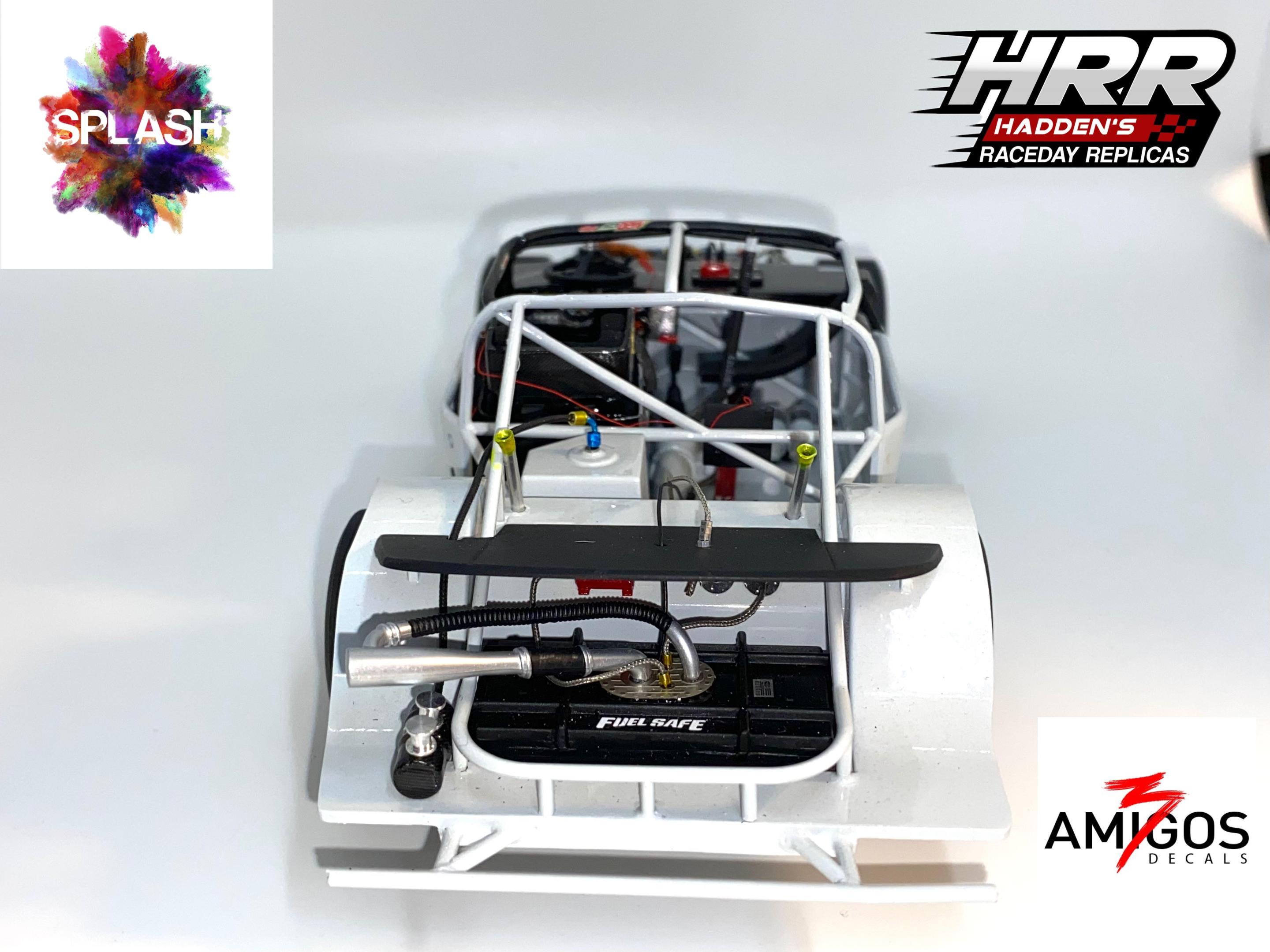 This one has been done for sometime now just getting around to posting it. This is a Revell kit, splash paints and 2k, 3 Amigos decals, also can’t thank Mark at MPR decals for the roof camera logos. I used a lot of protech fittings, a lot of detail nuts from rb motion, also fittings and wire from Detail Masters. I added the superspeedway splitter and bumper extensions. The helmet and HANS device are from GF Models.