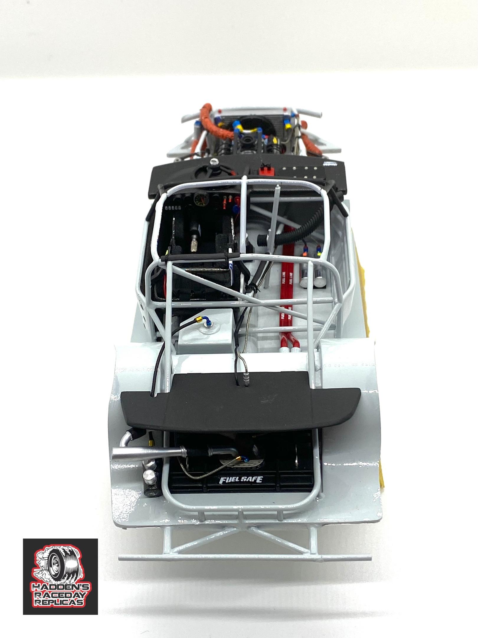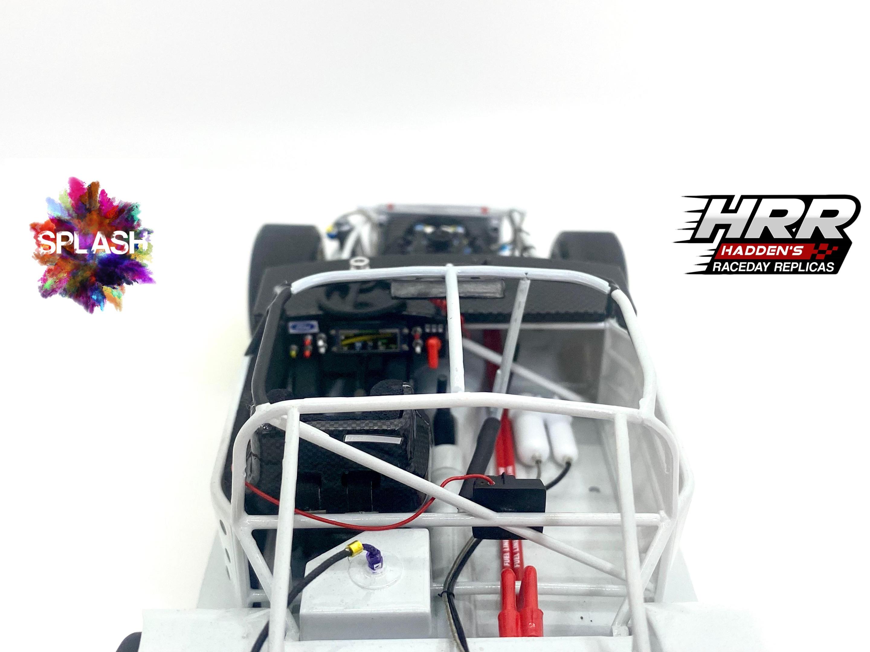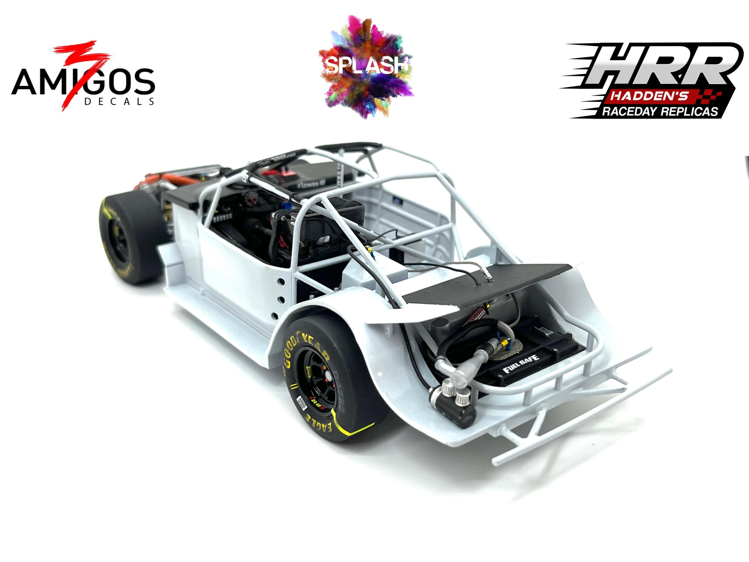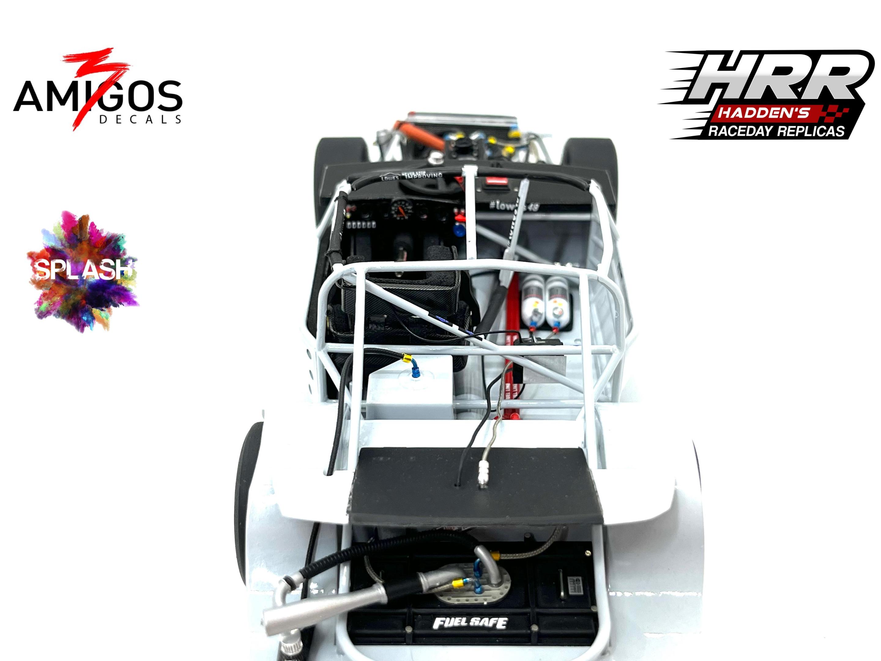 This one has been done for sometime now just getting around to posting it. This is a Revell kit, splash paints and 2k, 3 Amigos decals, also can’t thank Mark at MPR decals for the roof camera logos. I used a lot of protech fittings, a lot of detail nuts from rb motion, also fittings and wire from Detail Masters. I added the superspeedway splitter and bumper extensions. The helmet and HANS device are from GF Models.