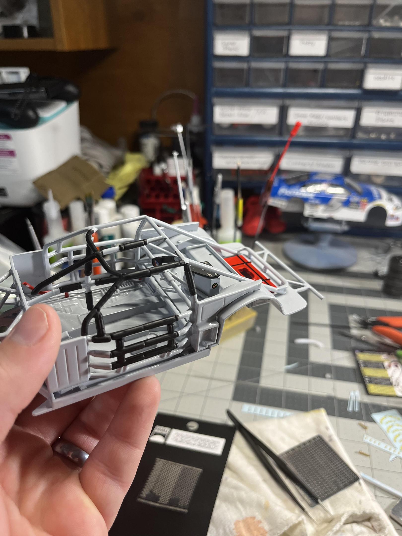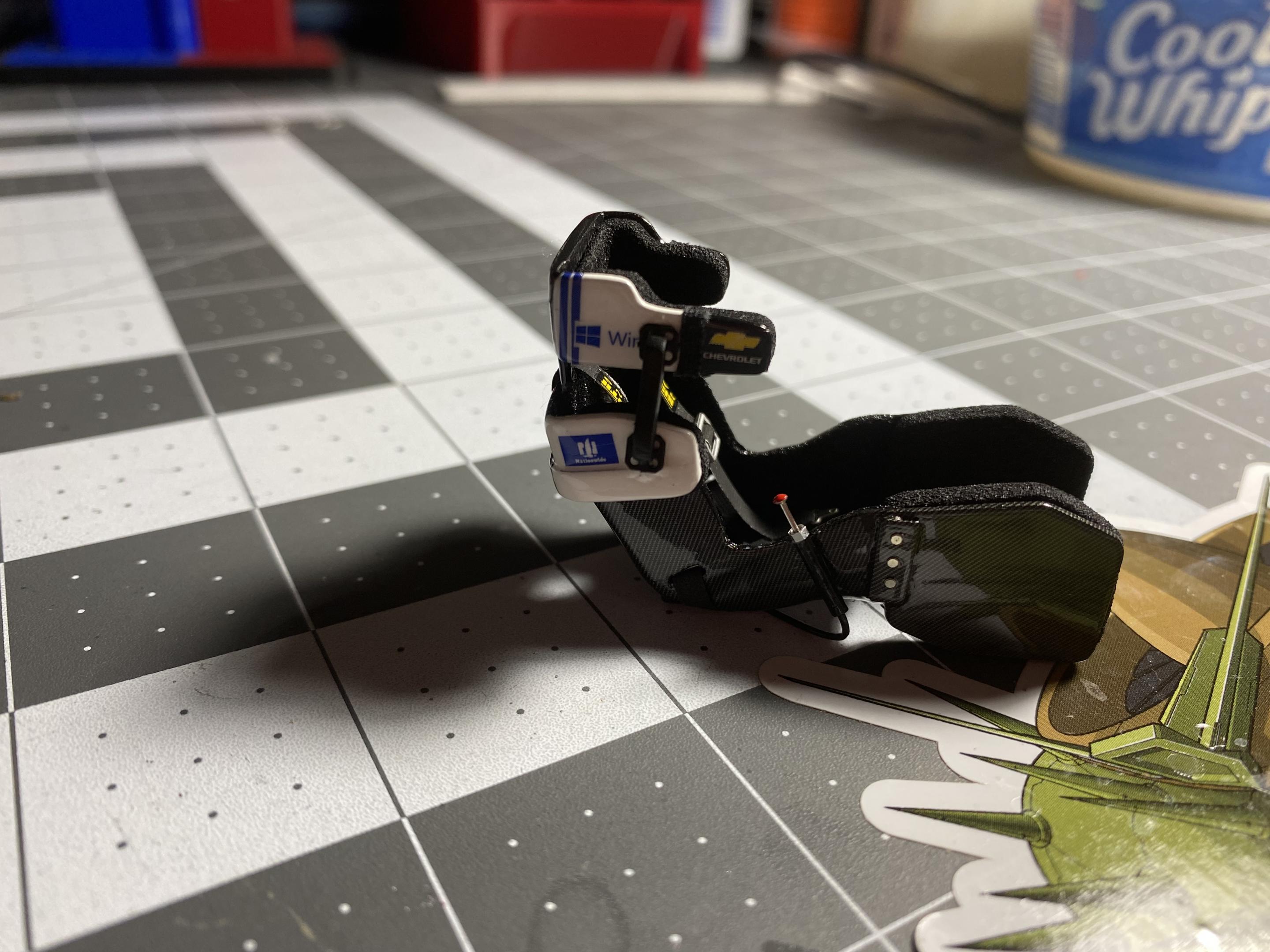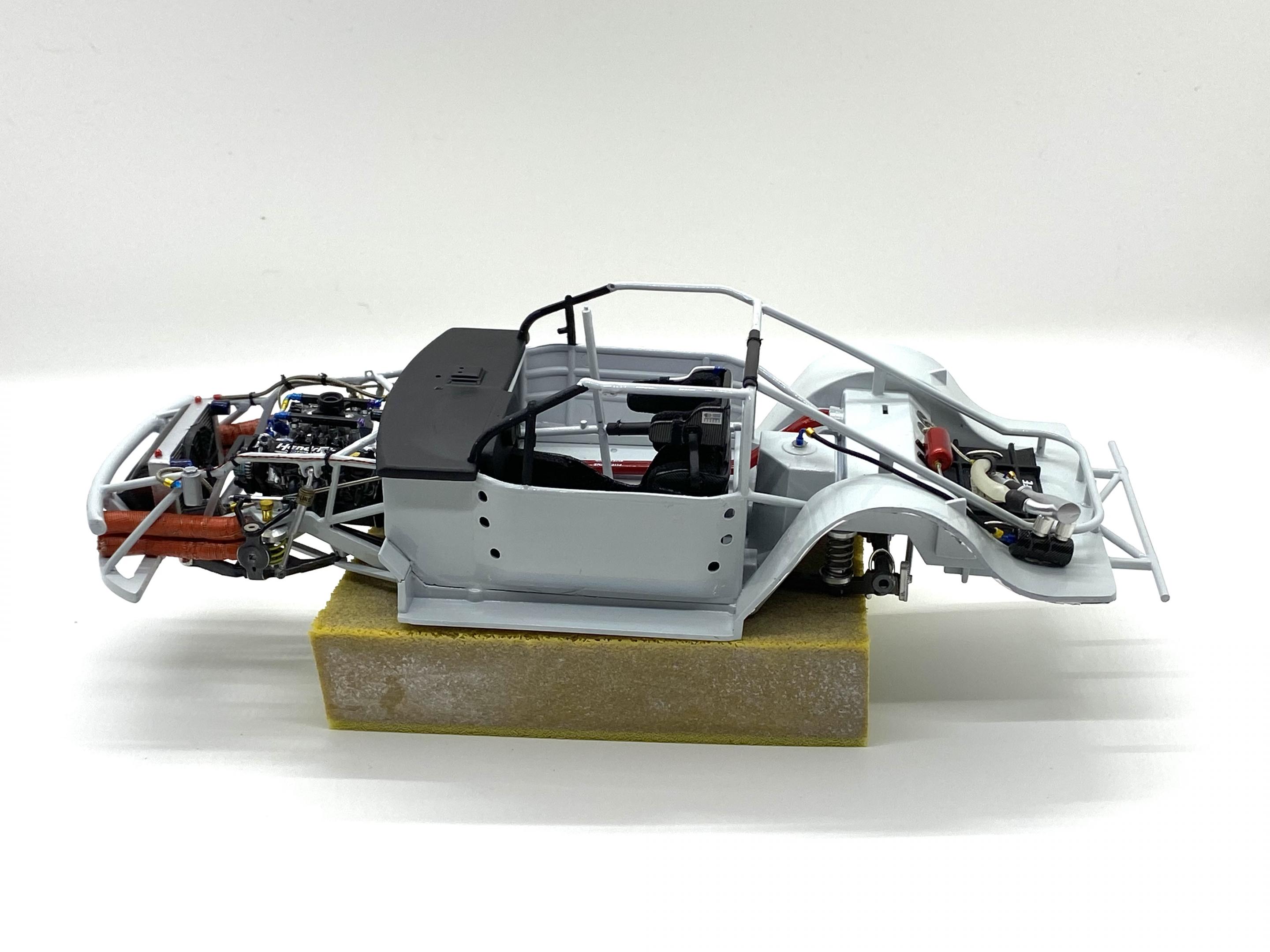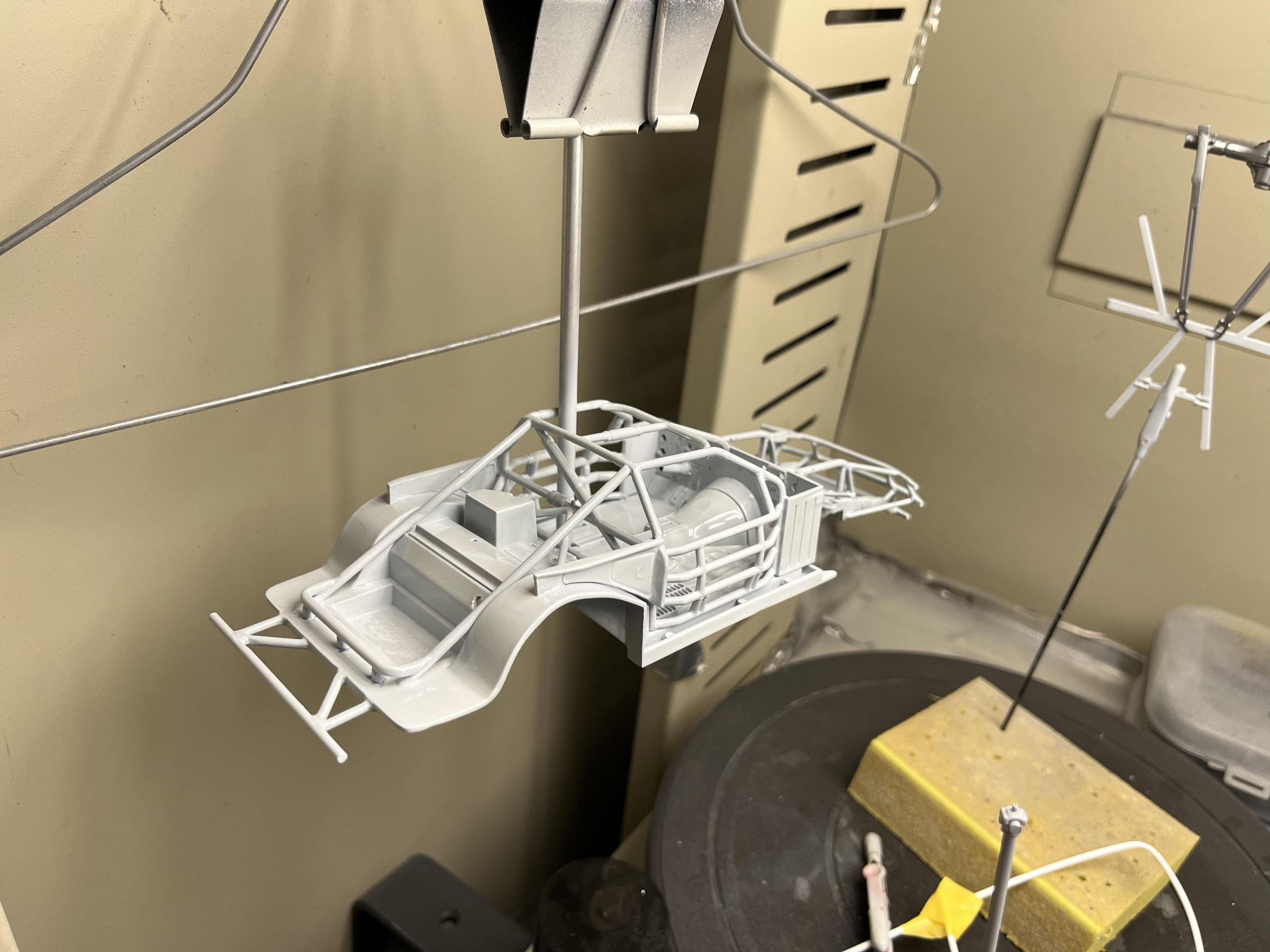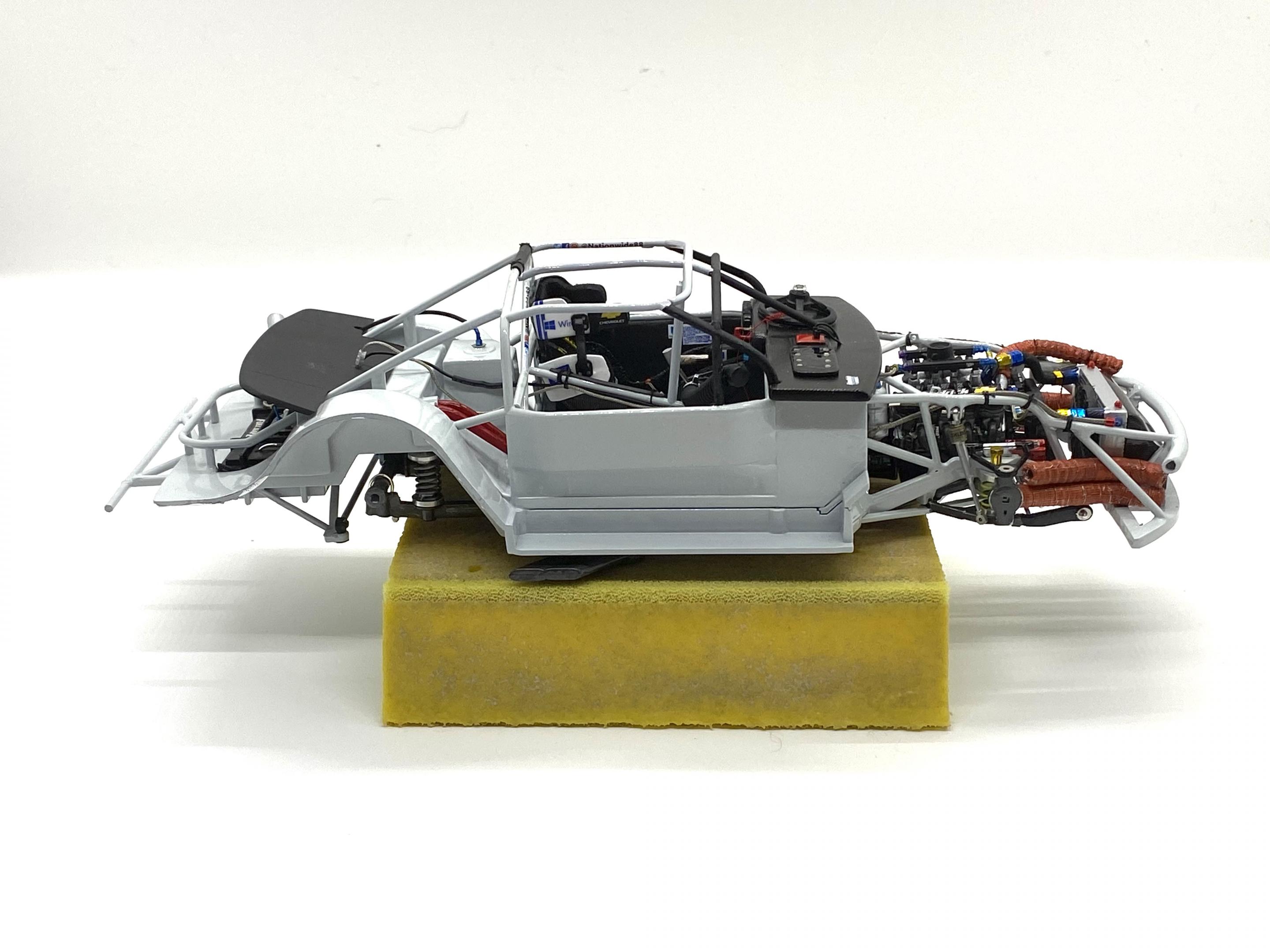 Made a bit of progress, the chassis still has some parts to install and paint up, the seat needs the rest of the carbon fiber decals, and rivets added, then on to seat belts, the dash still needs toggle switches added and some more carbon fiber decals. The body is primered and ready for paint soon. Hopefully in a few weeks this one will be completed along with the other builds I need to finish up.