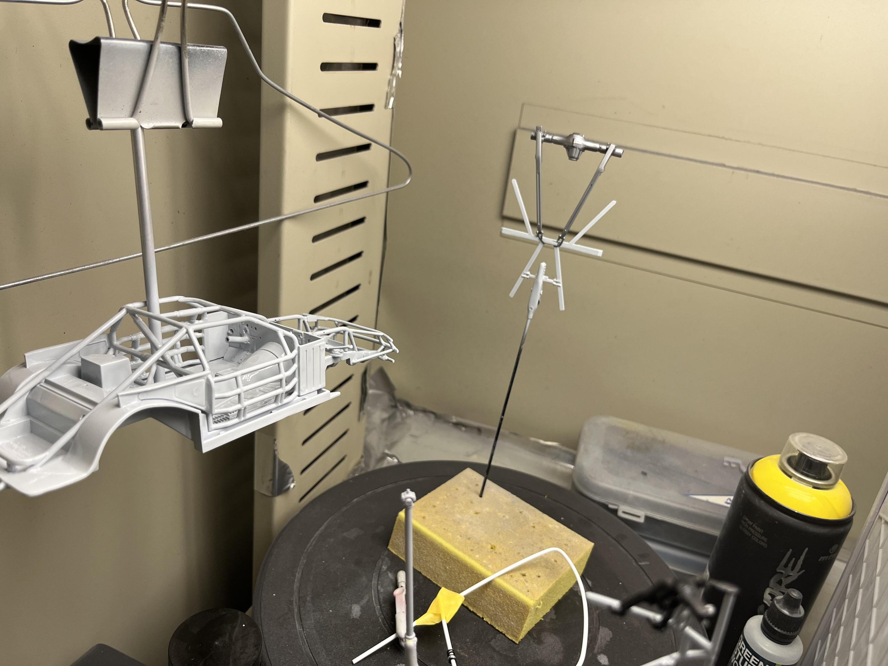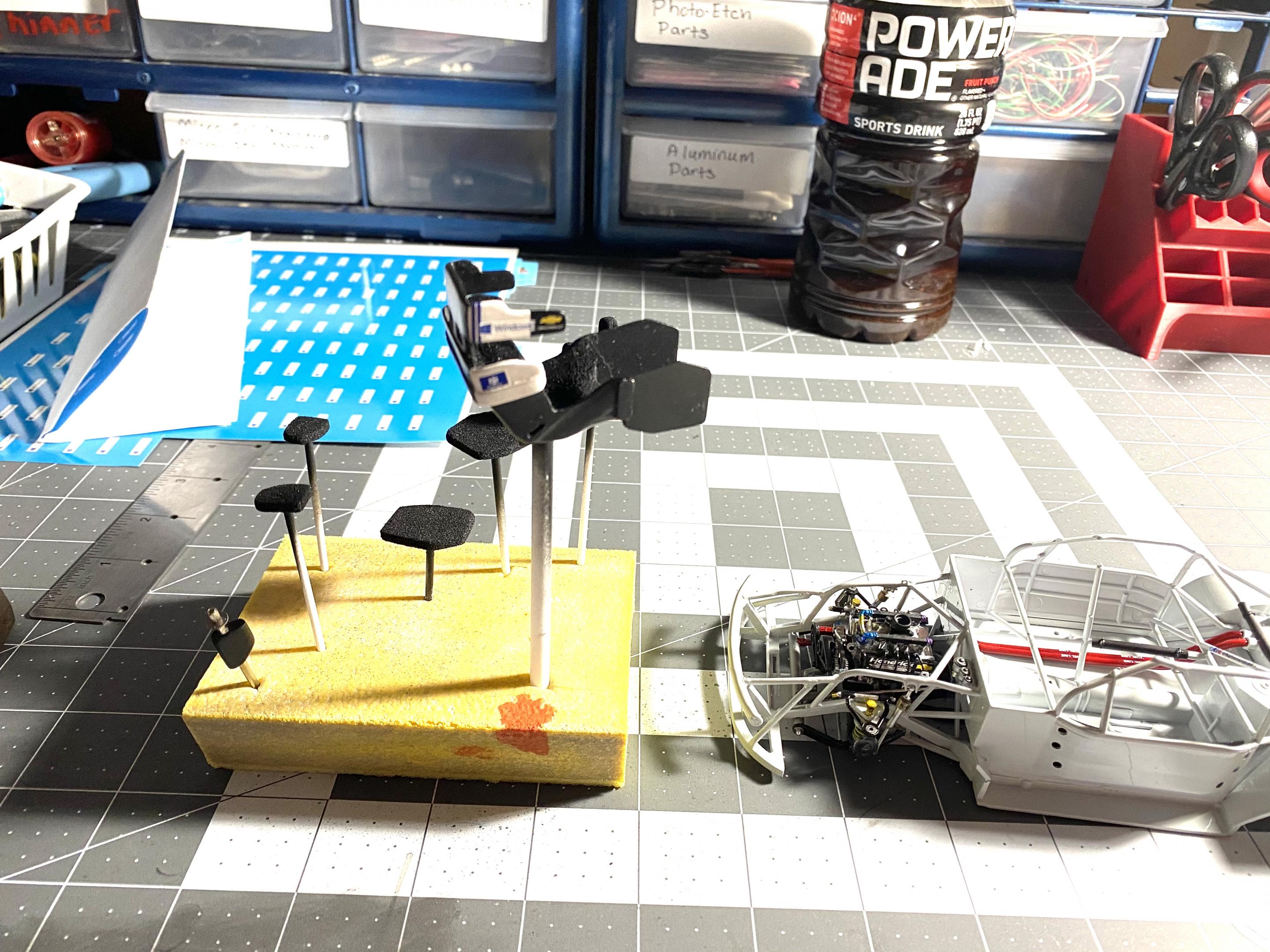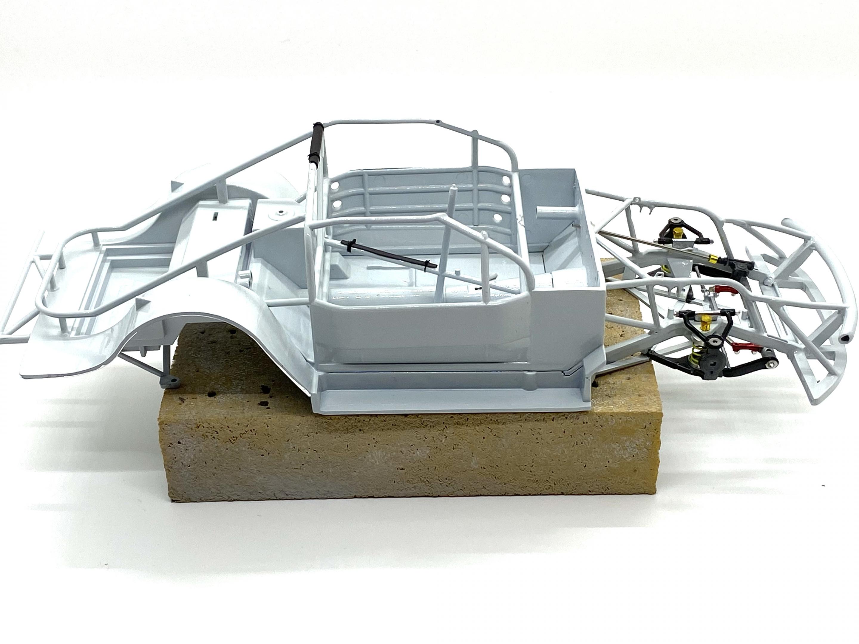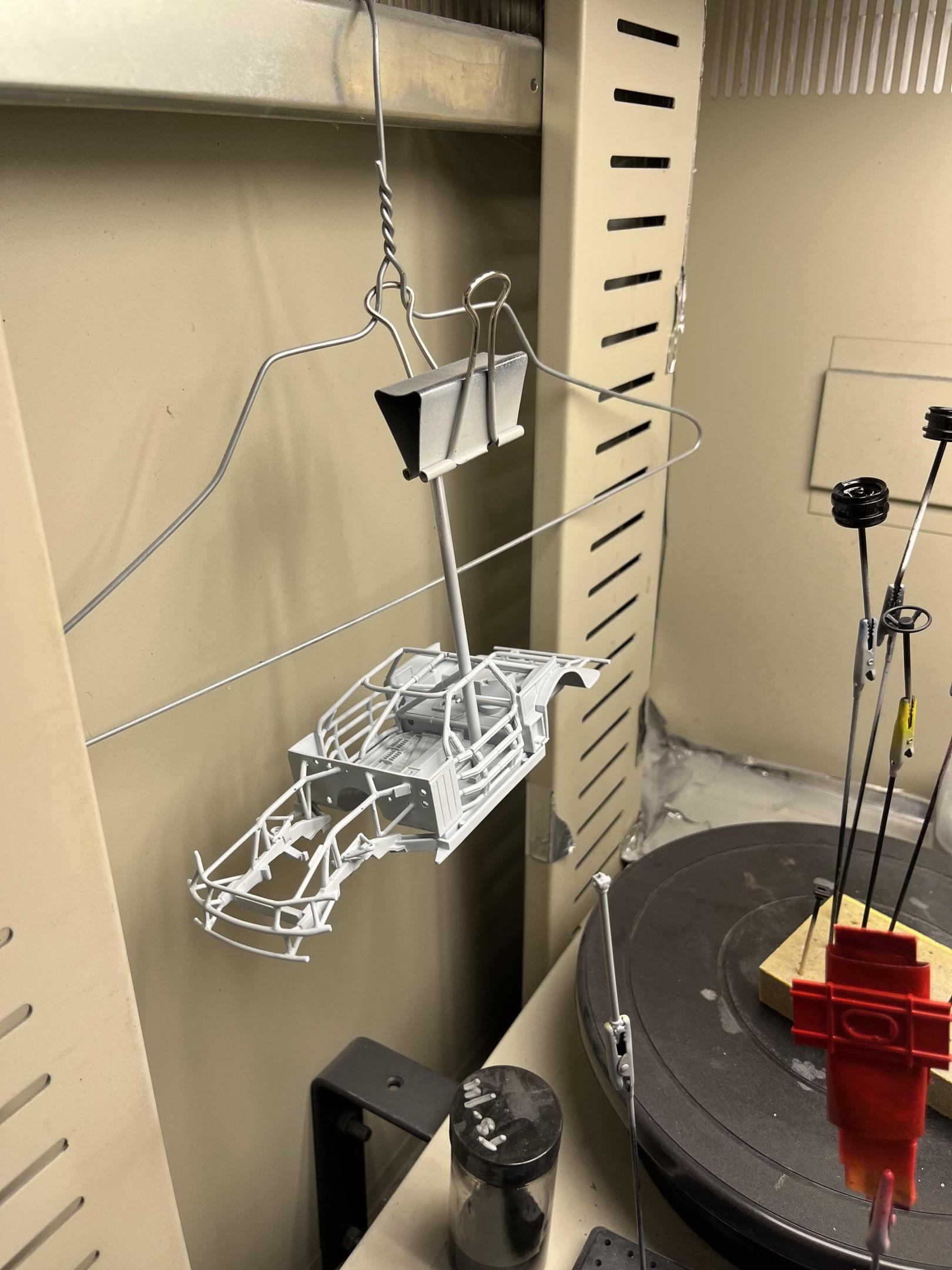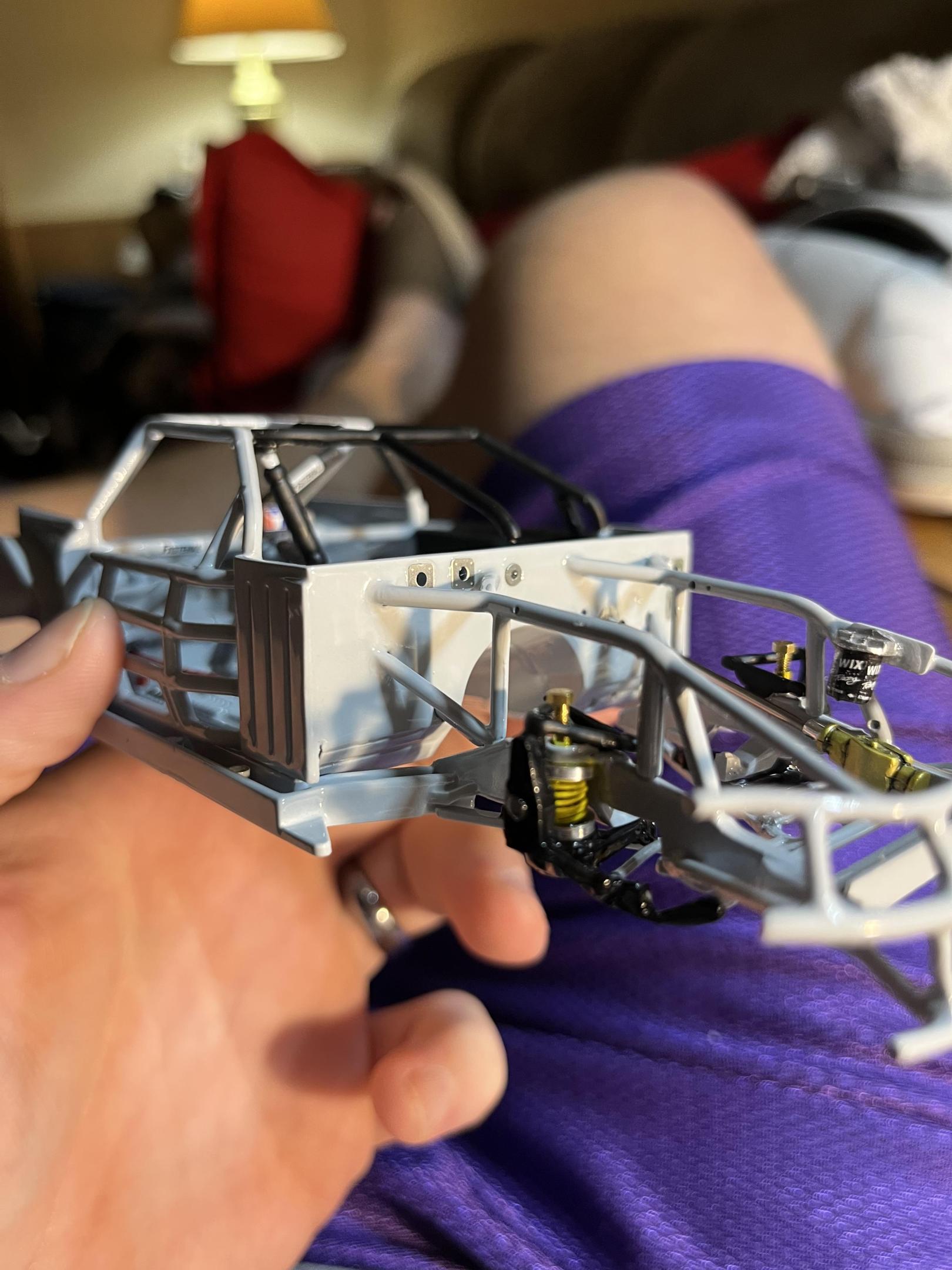 Made a bit of progress, the chassis still has some parts to install and paint up, the seat needs the rest of the carbon fiber decals, and rivets added, then on to seat belts, the dash still needs toggle switches added and some more carbon fiber decals. The body is primered and ready for paint soon. Hopefully in a few weeks this one will be completed along with the other builds I need to finish up.