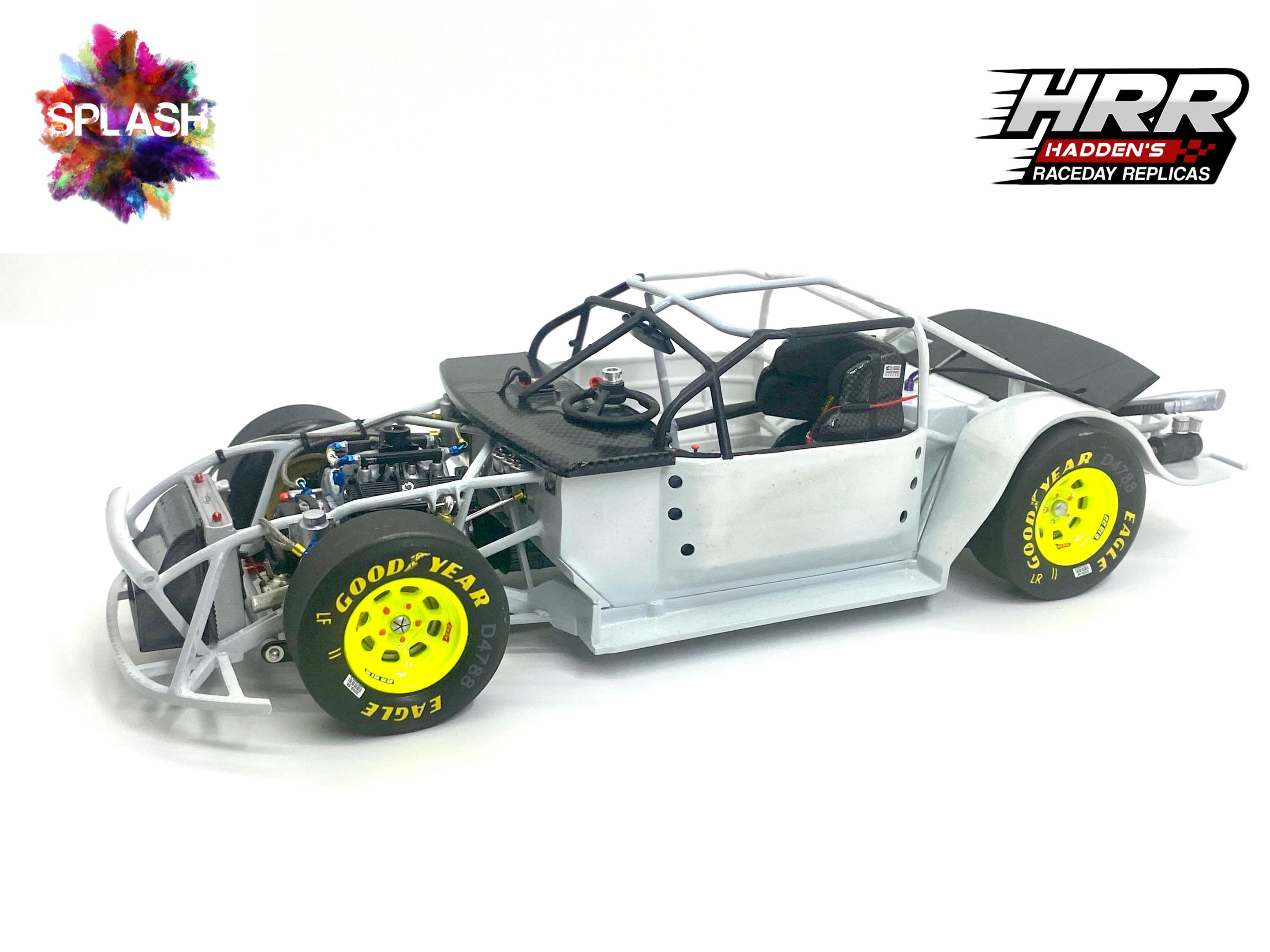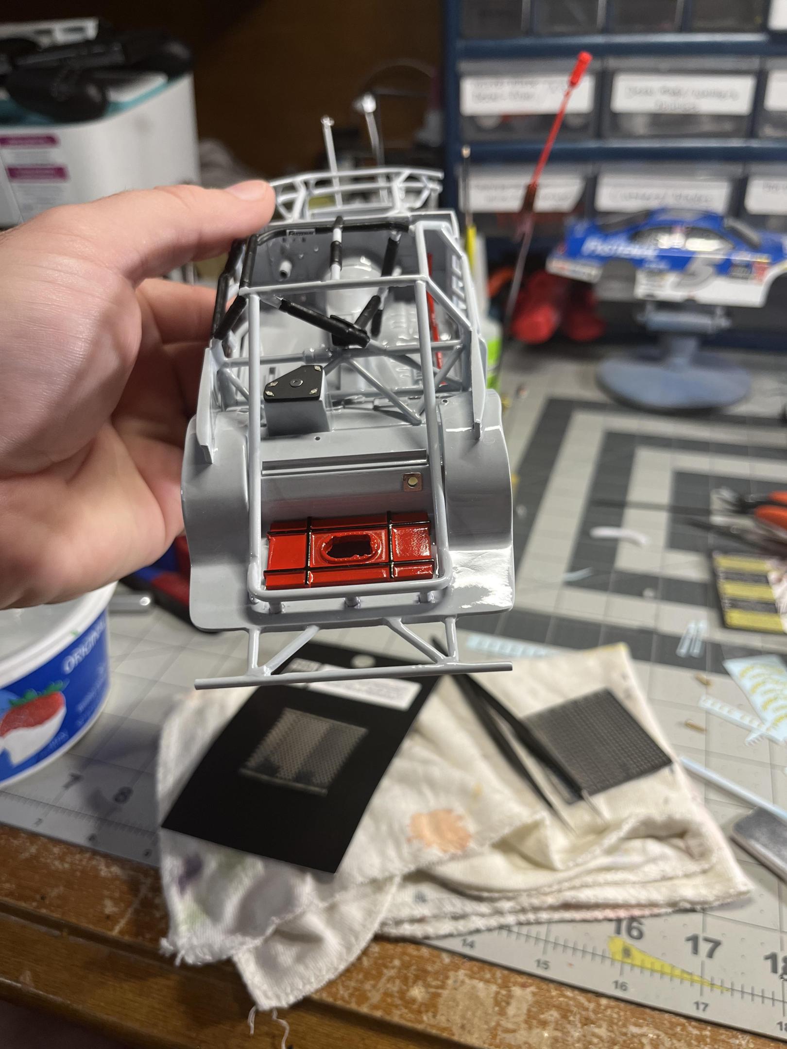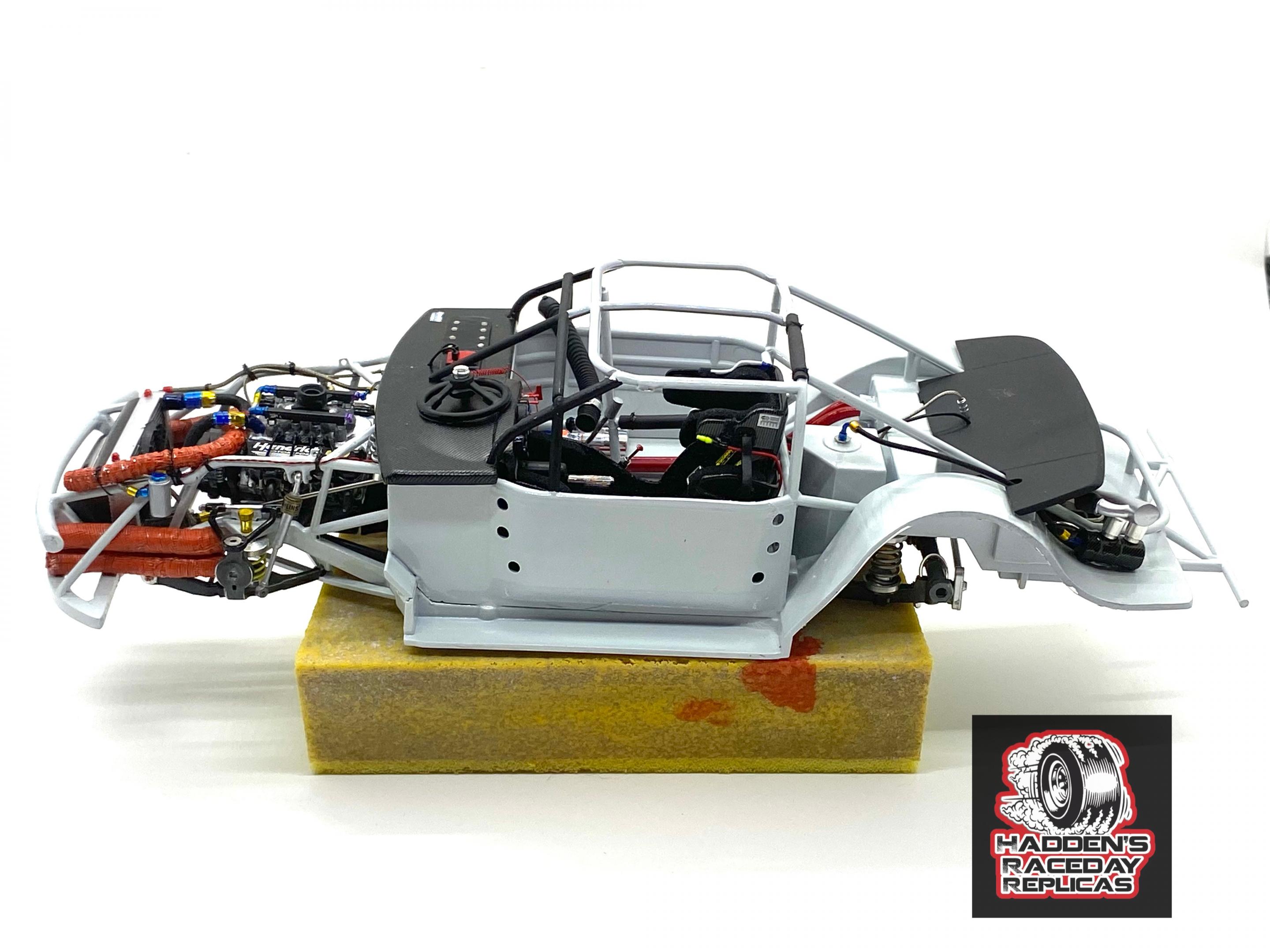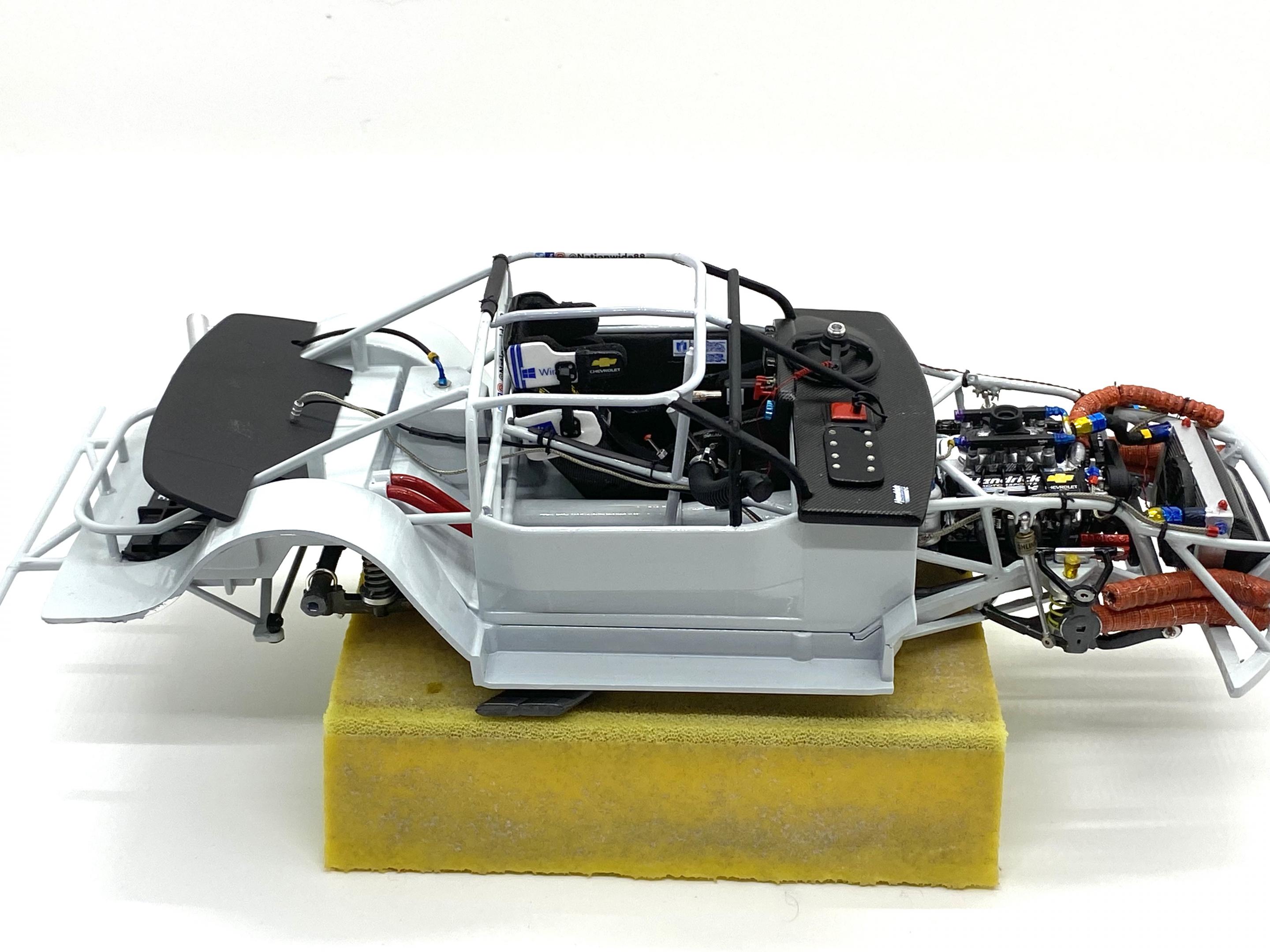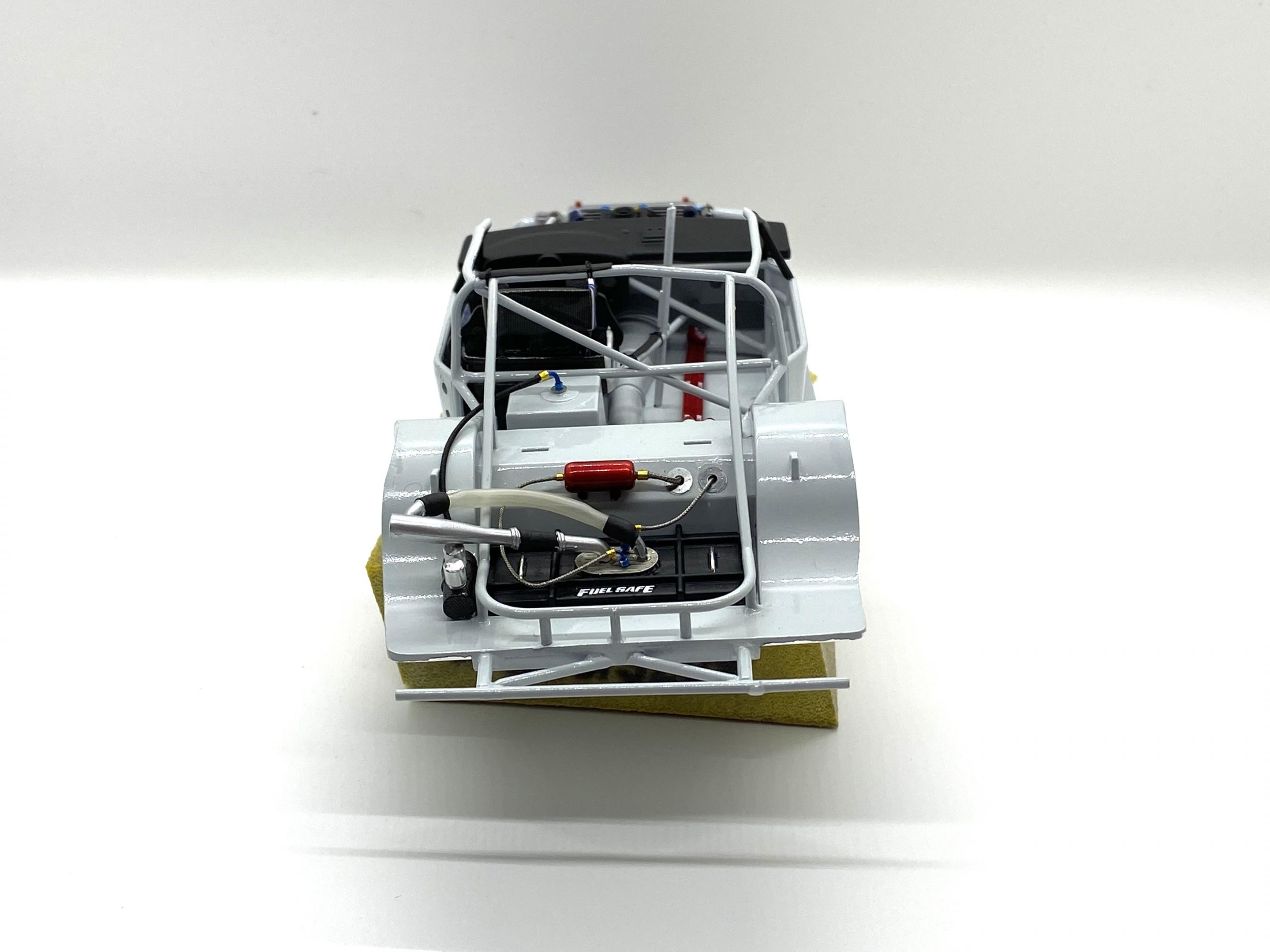 I still have a lot more to do before I finish this one up, but I wanted mock it up a little. The engine is about 90 percent done, still have some plumbing to do. I’m still working on the fire extinguishers and getting them plumbed. I need to make the seat belts, and radio wires to finish up the seat. The dash also needs to be painted and decals need to be applied, as well as some photo etch parts. I got the body cleared this weekend, the decals are from 3 Amigo’s, and they went on very easily, I added a few decals from power slide. Also need to decal and finish painting the rims and tires. I used a lot of Protech and Detail Master’s parts on this build as well. I can almost see the finish line with this build.