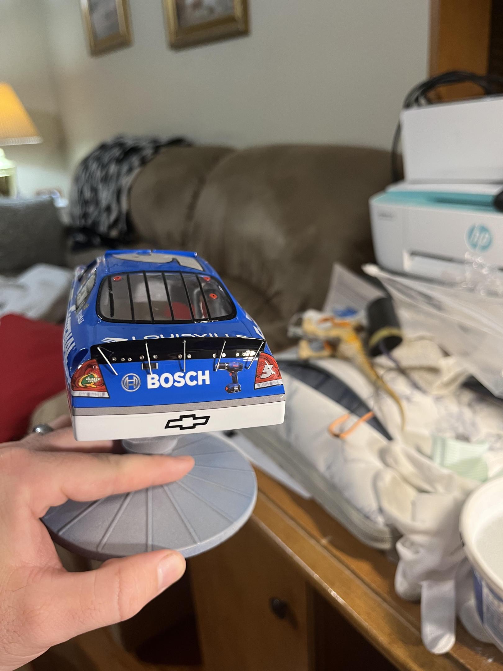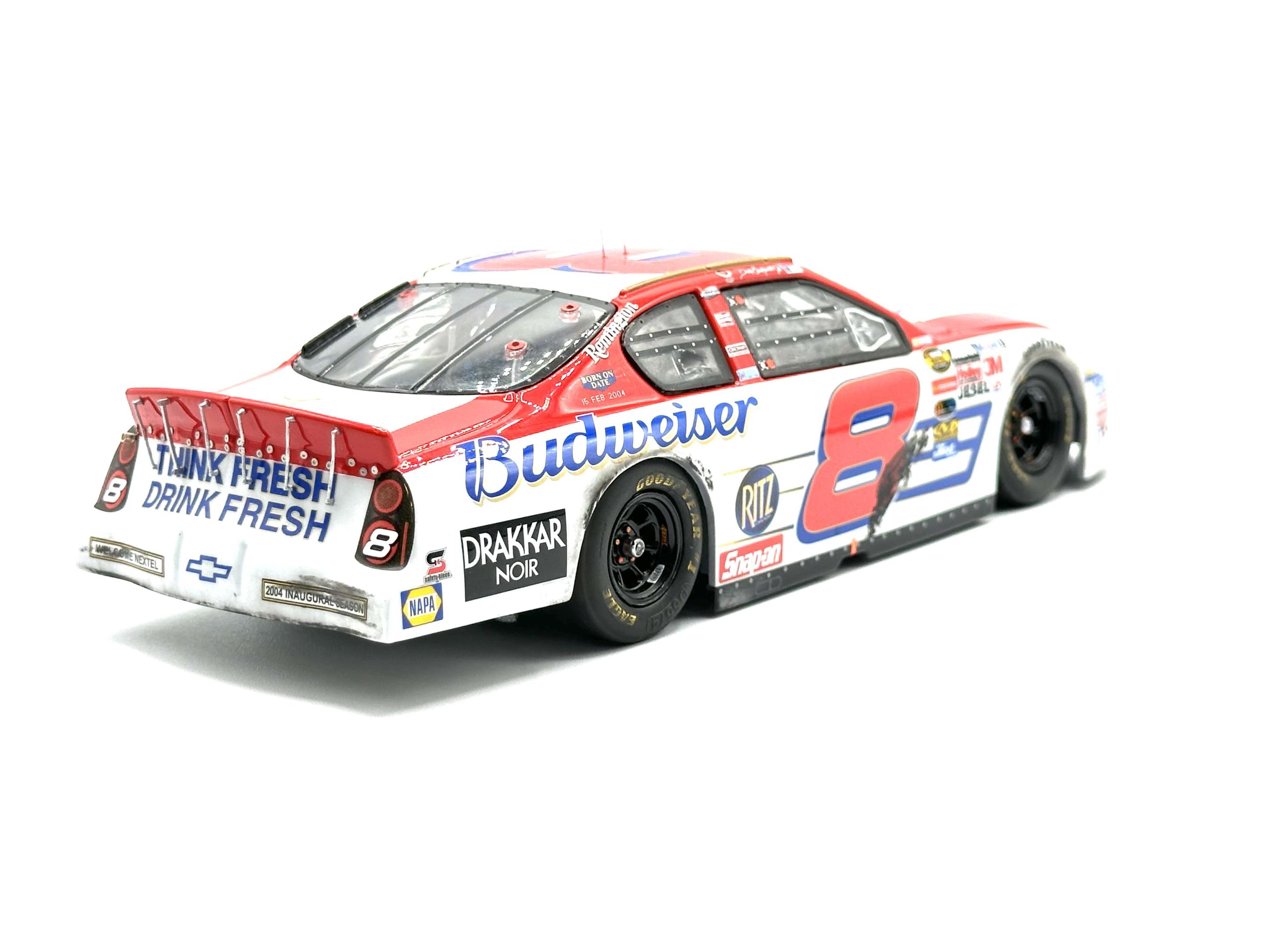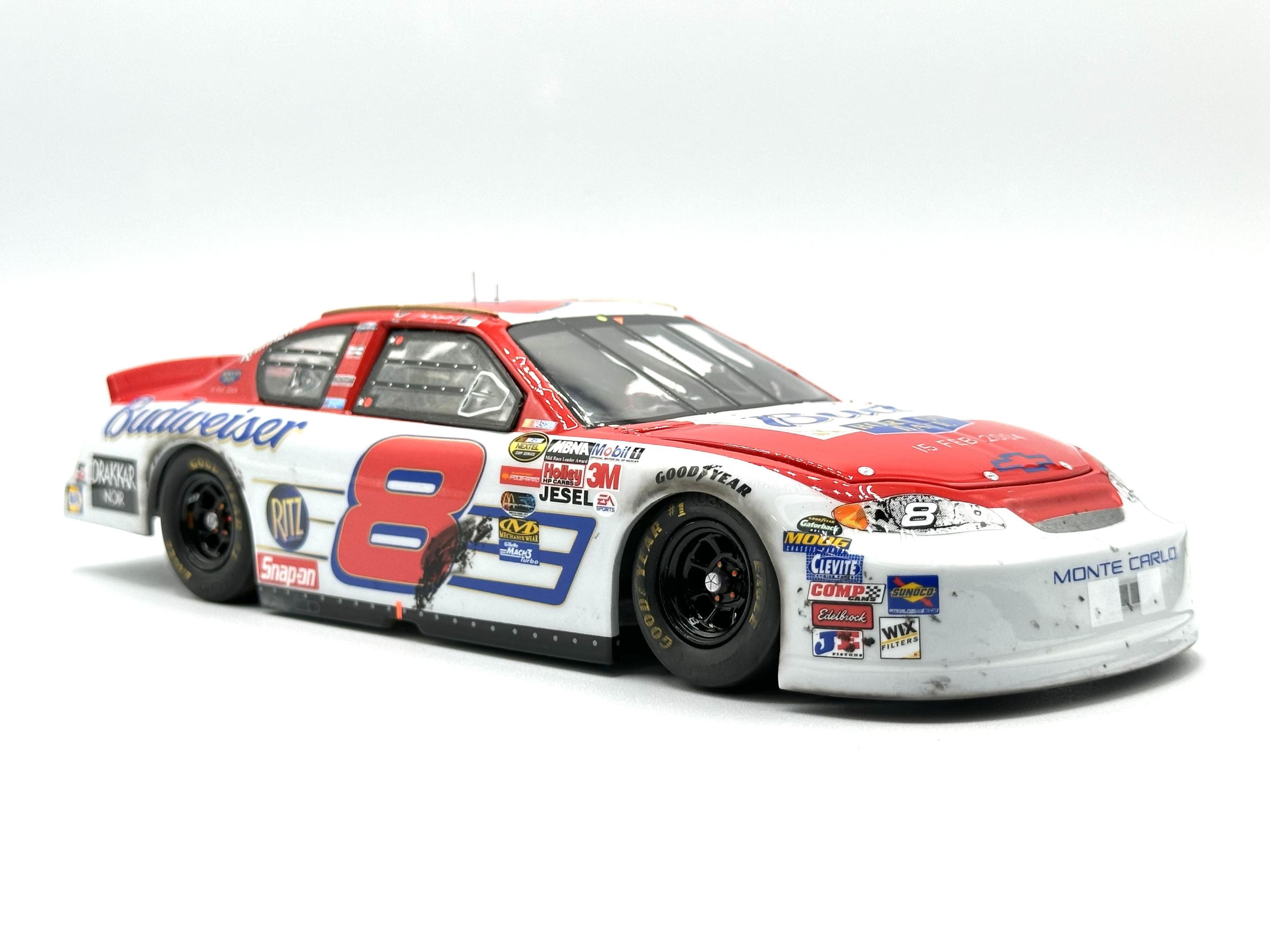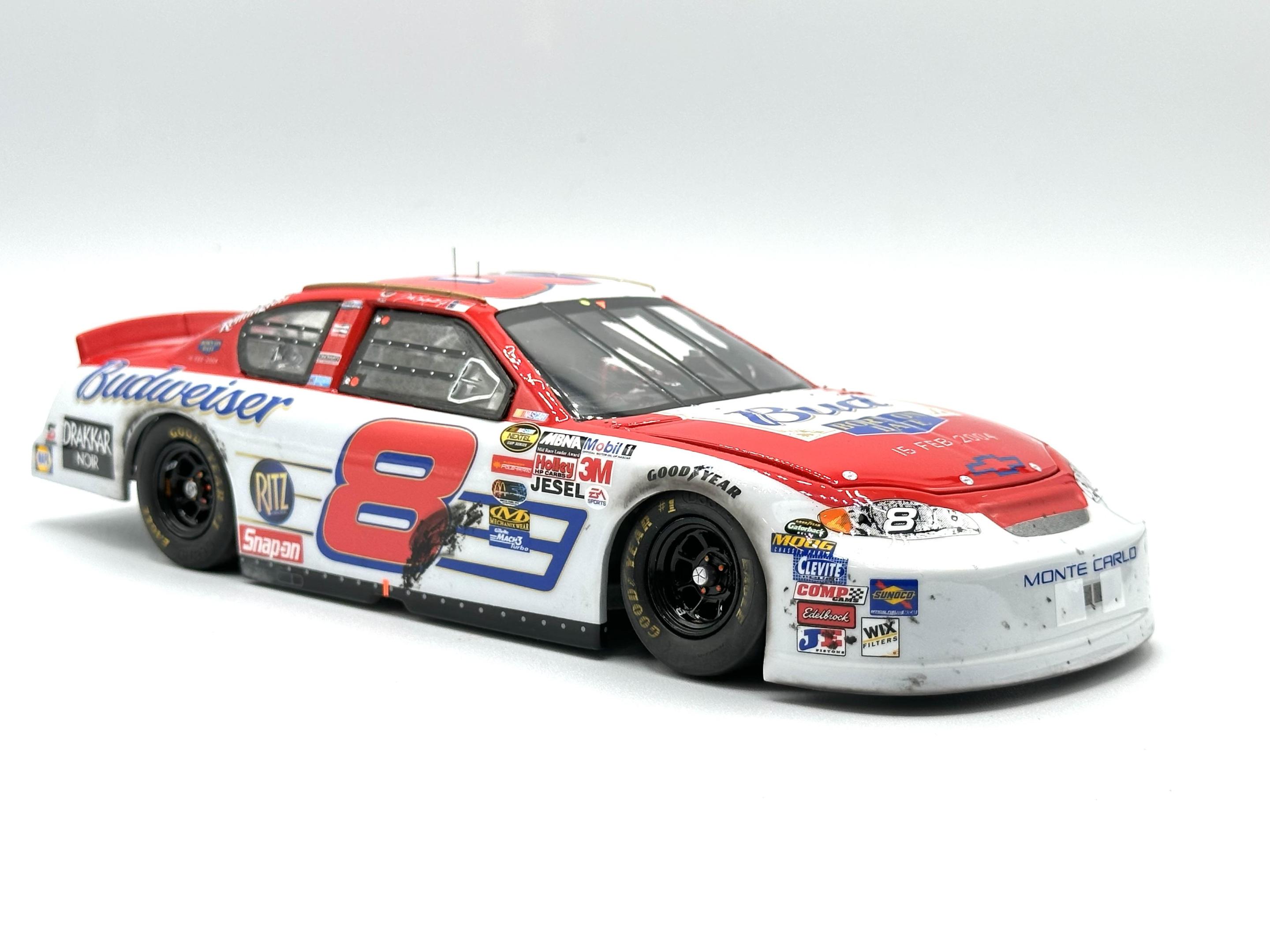 Just finished up the 2004 Dale Earnhardt Jr Daytona 500 winner, this is a Revell Kit with a resin nose from Henrik Ludwig. This build is part of a special project and I can’t wait to show everyone next week the final project details. This build also has many many parts from Jaye’s Model Garage, if you haven’t bought any parts from him please go and do that, they are designed beautifully and really add a lot of detail to a build. The paint is from splash paints, along with their 2k gloss clear. There are plenty of things I wish I could’ve done better on this build but this is my first completed build since my surgeries in January and March, my hands are slowly getting better and hope to continue to elevate each build.