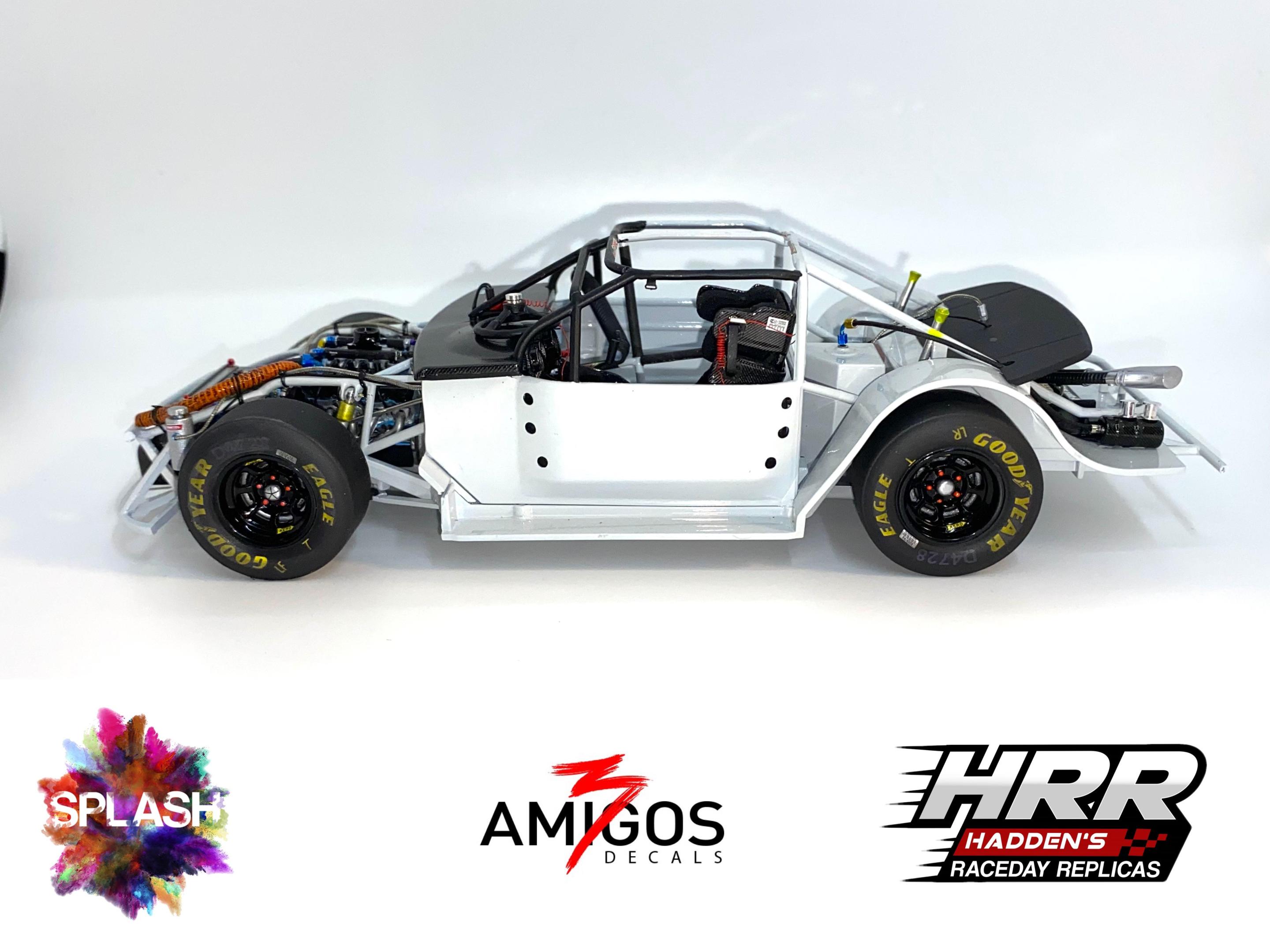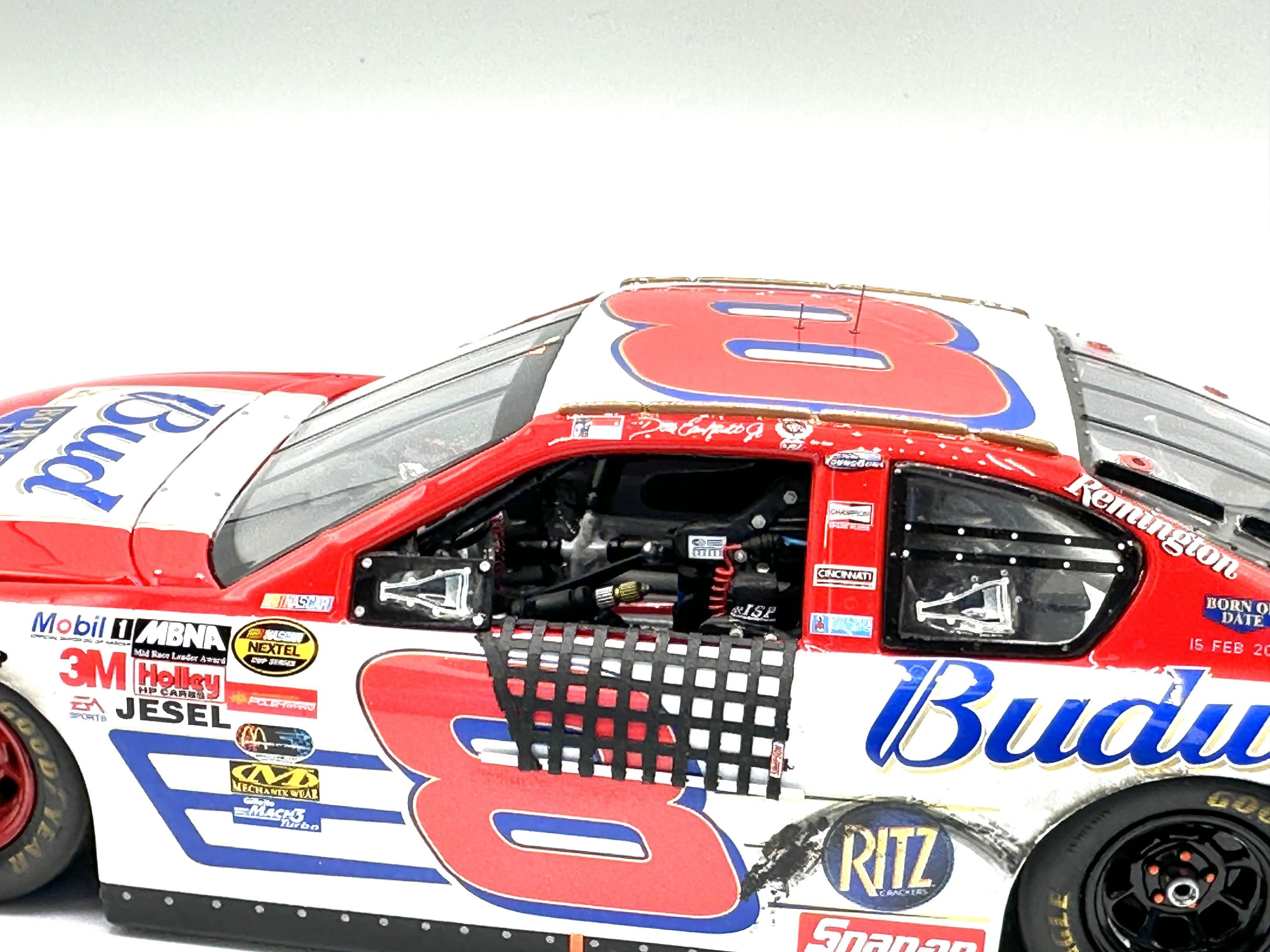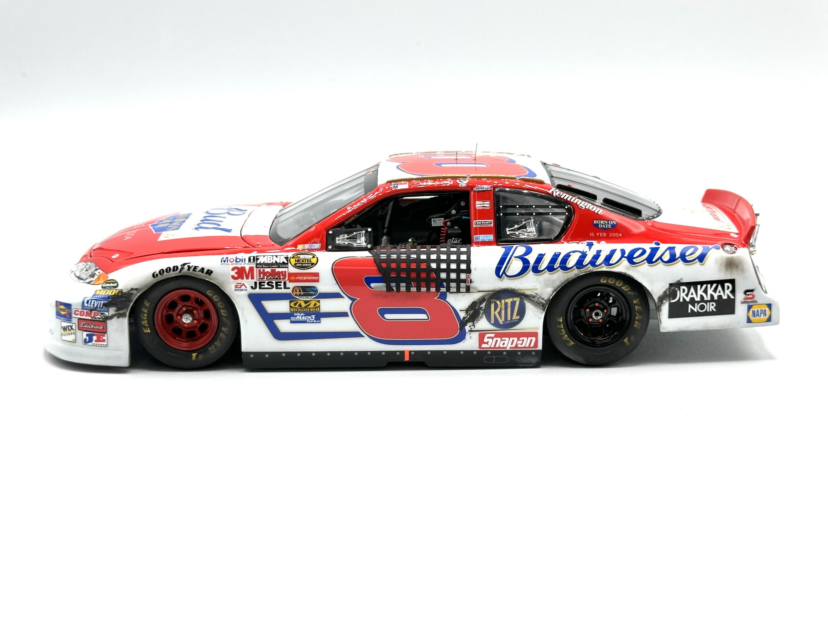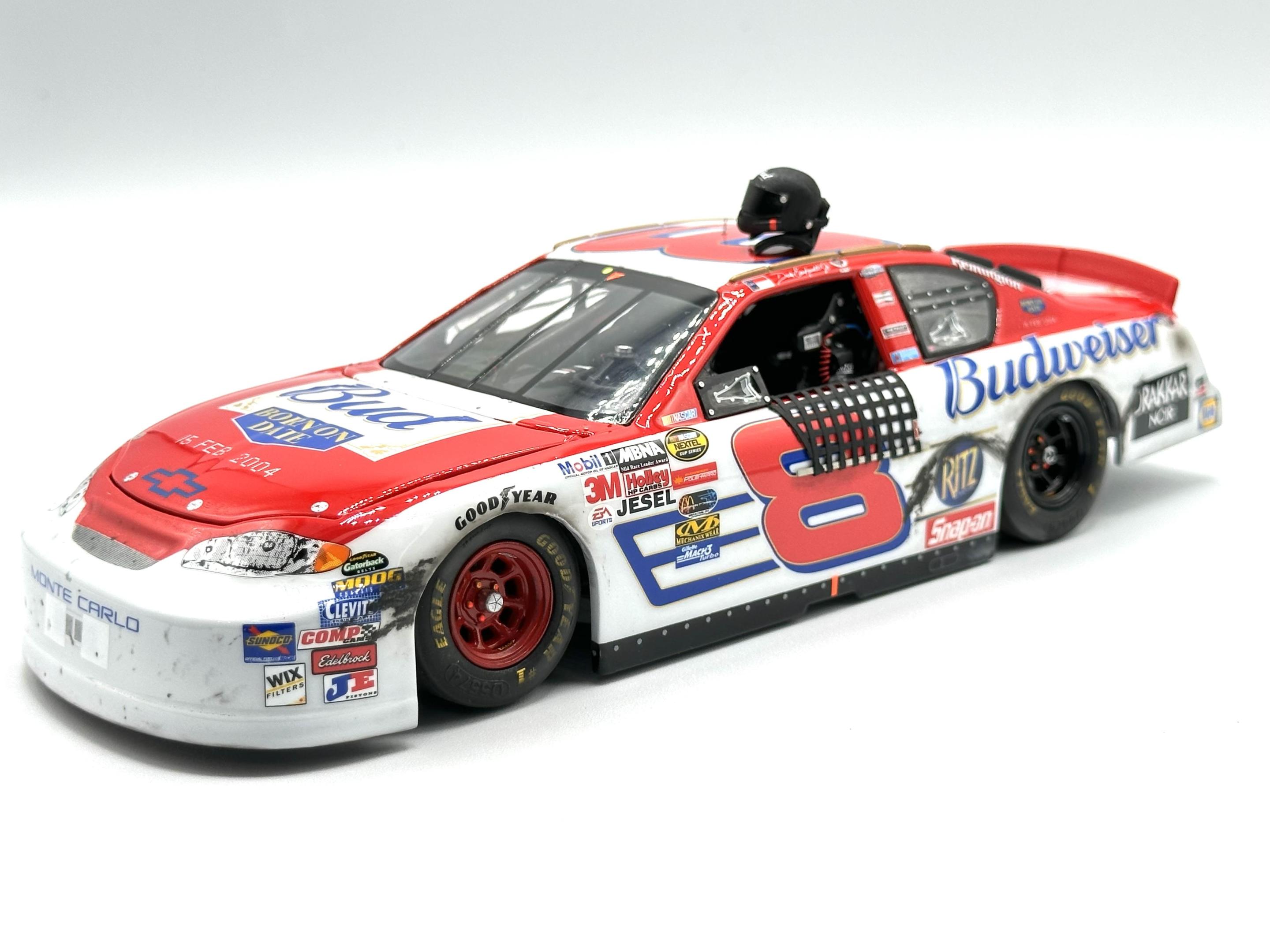 Just finished up the 2004 Dale Earnhardt Jr Daytona 500 winner, this is a Revell Kit with a resin nose from Henrik Ludwig. This build is part of a special project and I can’t wait to show everyone next week the final project details. This build also has many many parts from Jaye’s Model Garage, if you haven’t bought any parts from him please go and do that, they are designed beautifully and really add a lot of detail to a build. The paint is from splash paints, along with their 2k gloss clear. There are plenty of things I wish I could’ve done better on this build but this is my first completed build since my surgeries in January and March, my hands are slowly getting better and hope to continue to elevate each build.