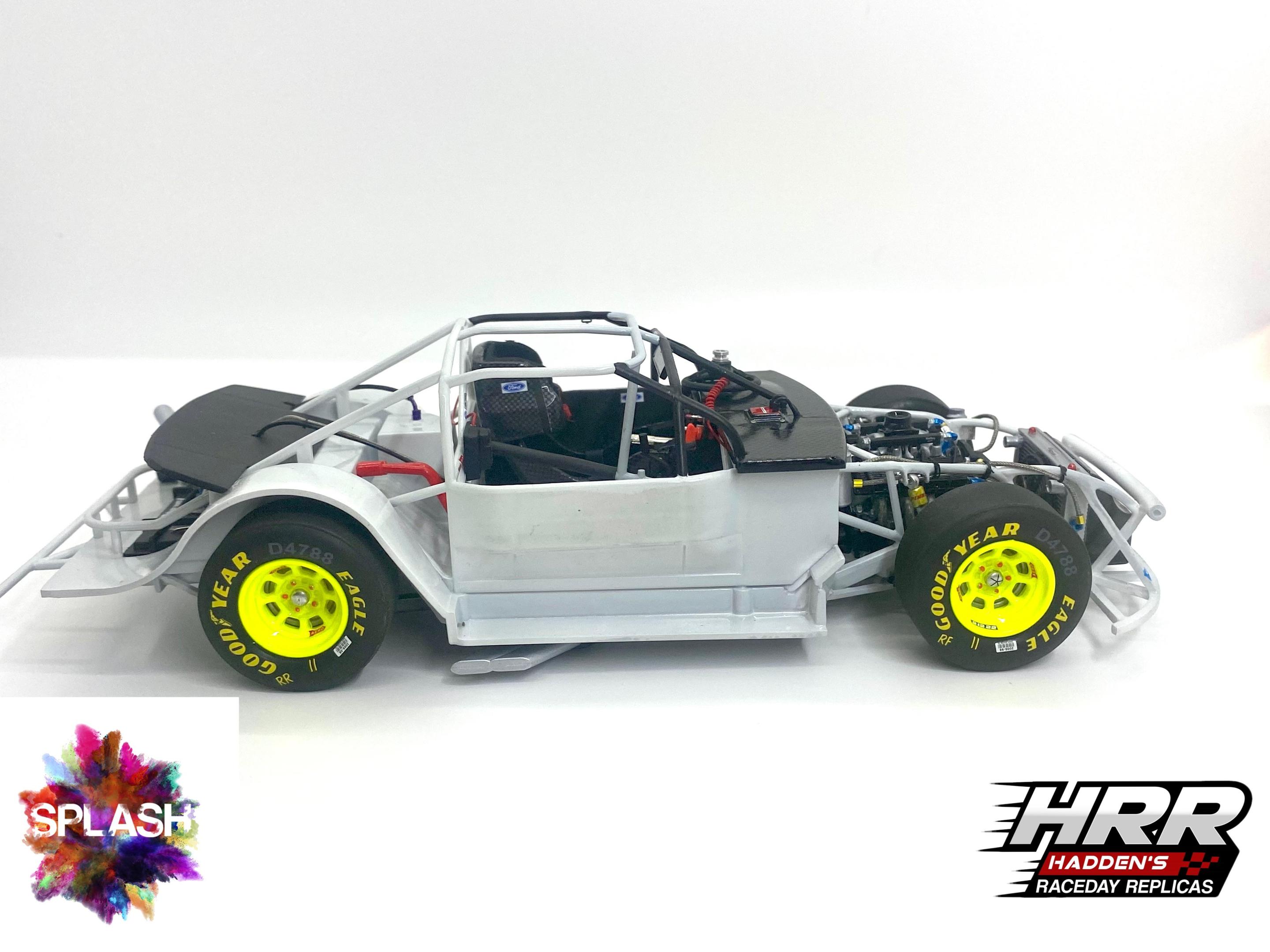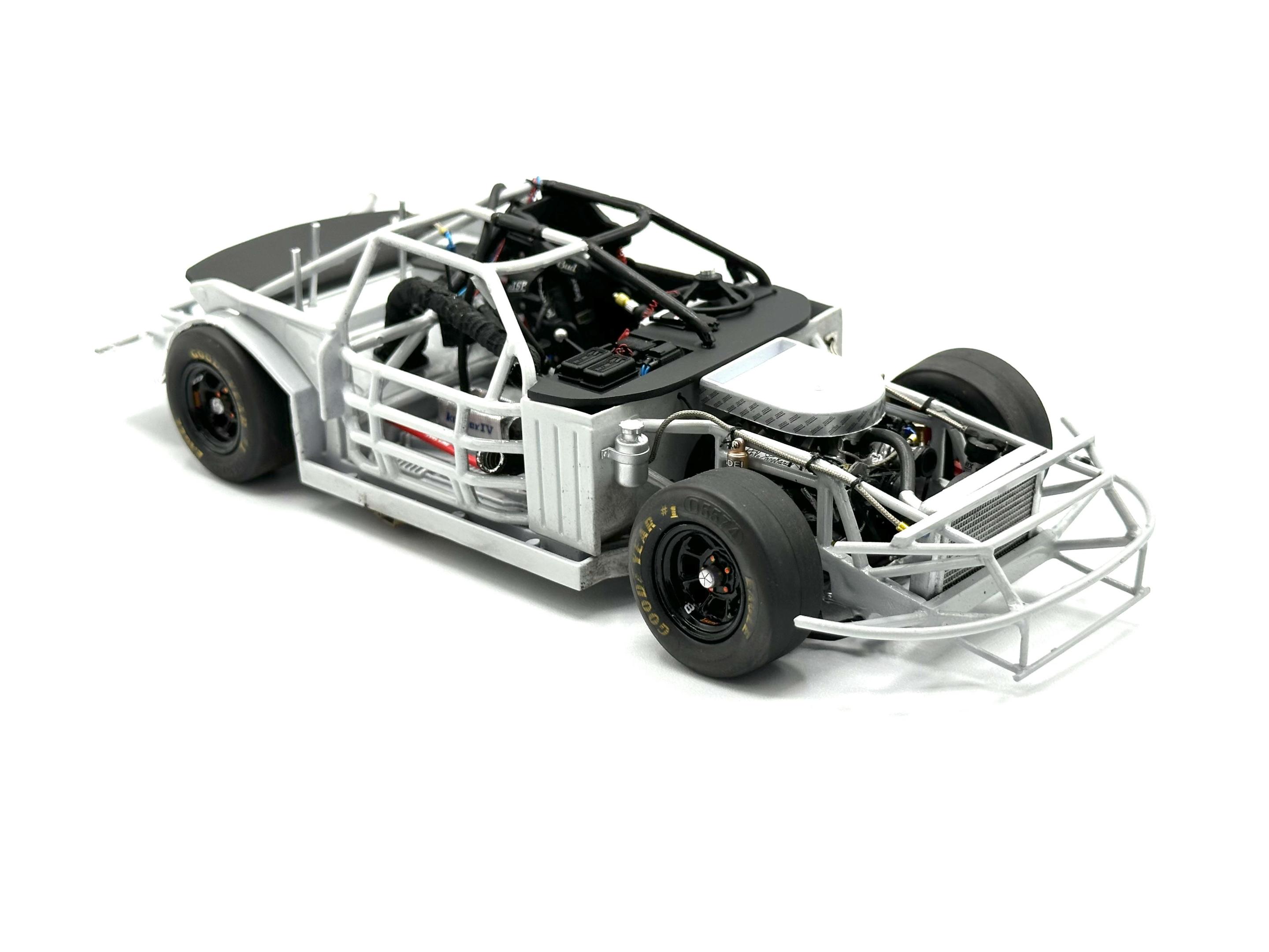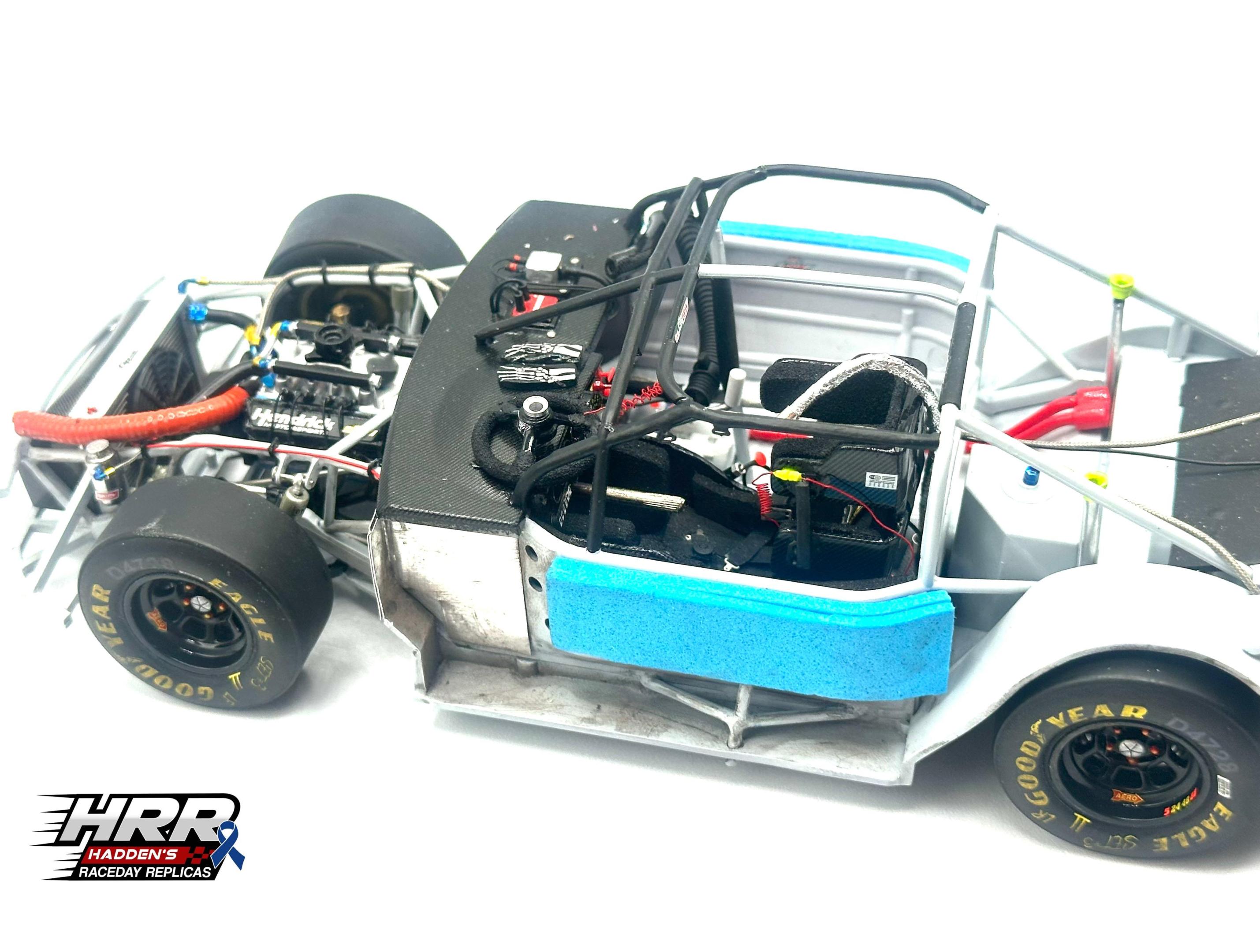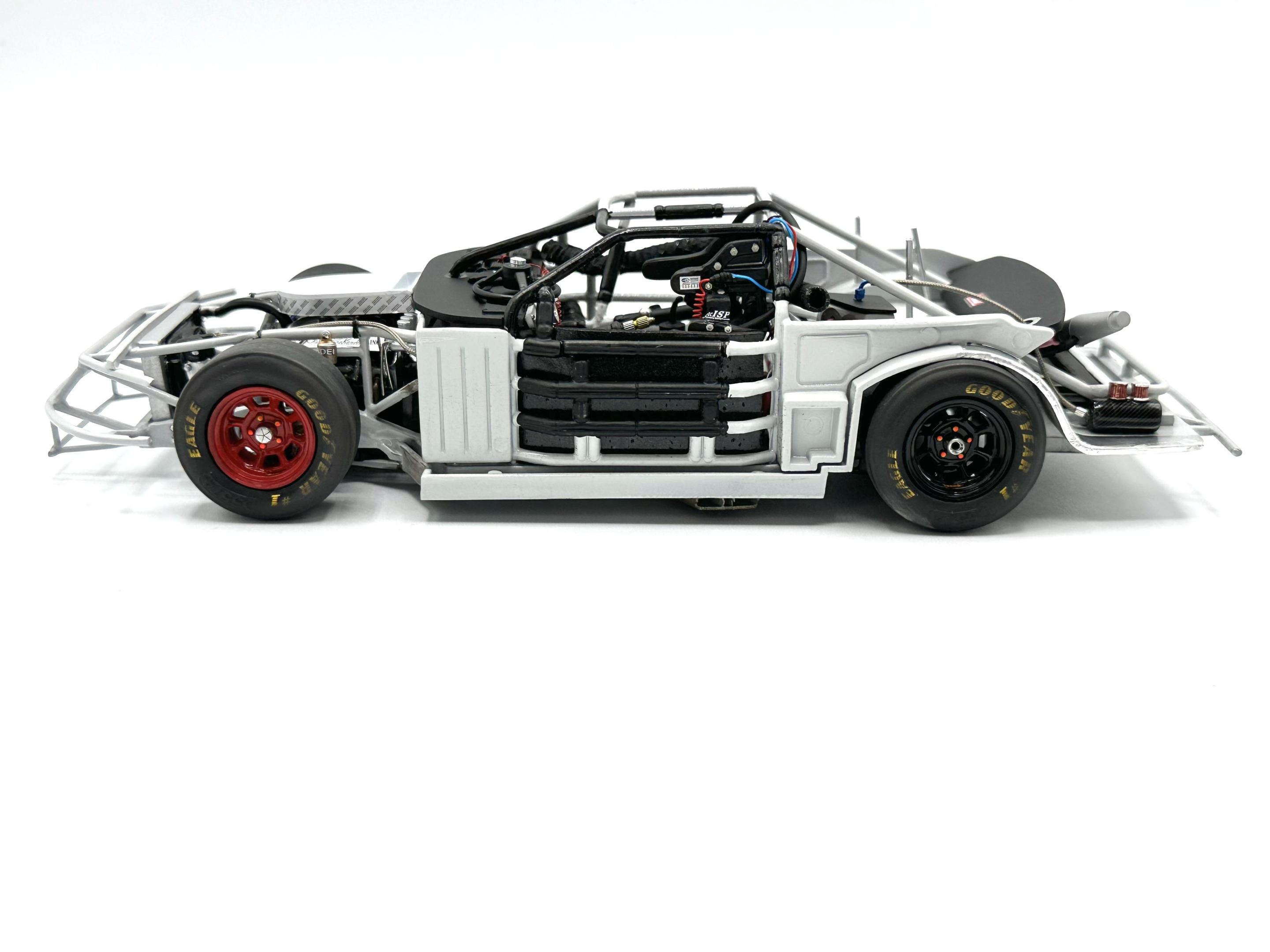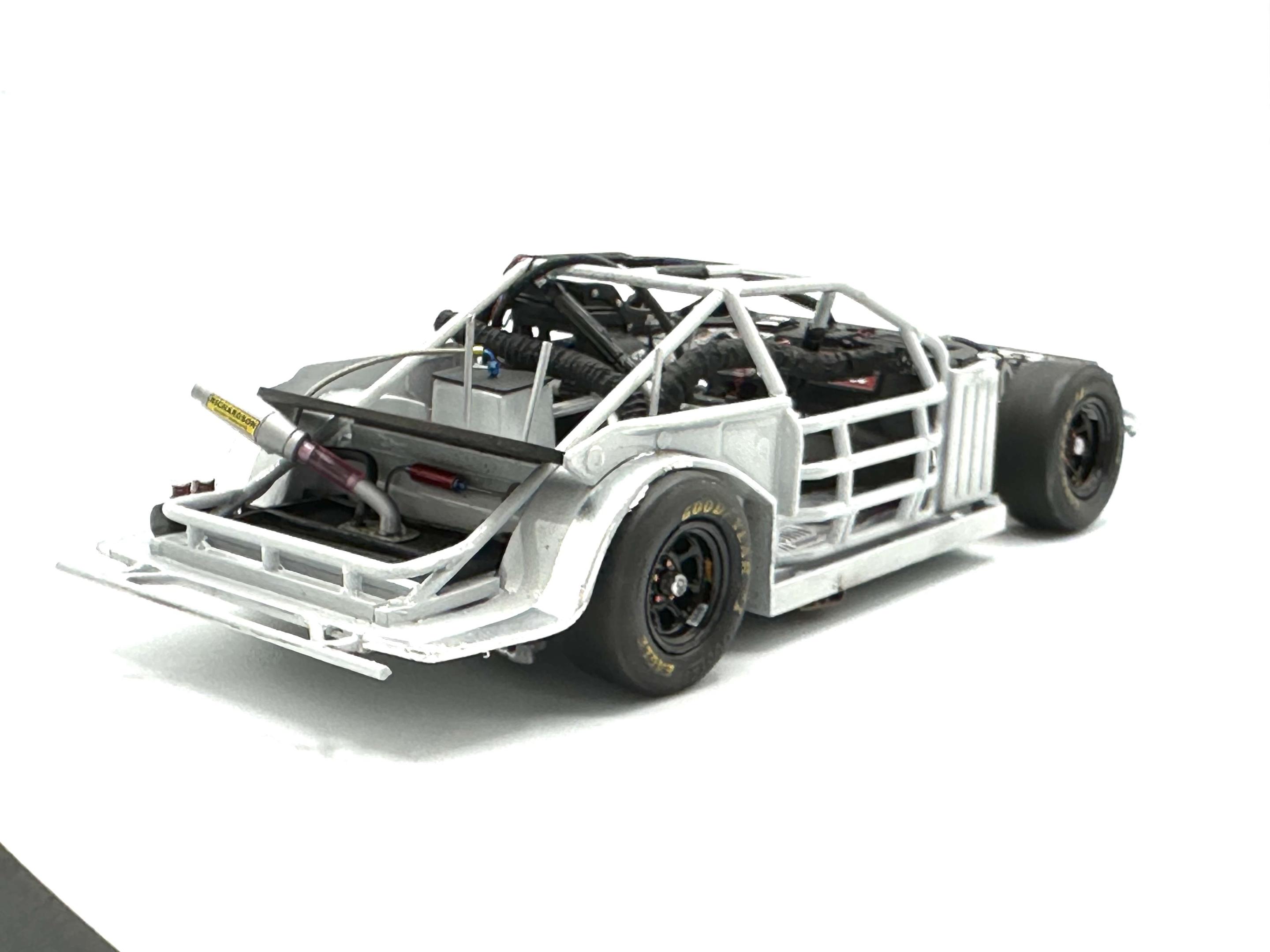 This is Dale Jr’s 2017 Grey Ghost from Martinsville, this was a Revell SS Kit. Paint was from Gravity Colors USA, first time using 2k clear, which was from Splash Paints, decals are from Powerslide, and Ace Decals. I lowered and tucked the wheels, engines was wired and plumbed with Pro Tech fittings and braided lines. I used the kit seat as a base and tried to get it as close as possible to Jr’s seat. This was a fun build and really learned a lot and think I have found my go to clear from here out, also the gravity colors paint went on really well.