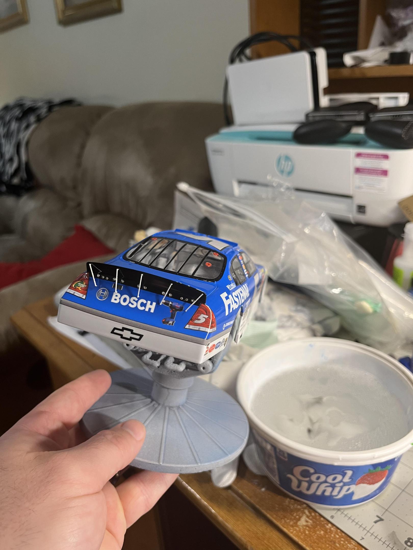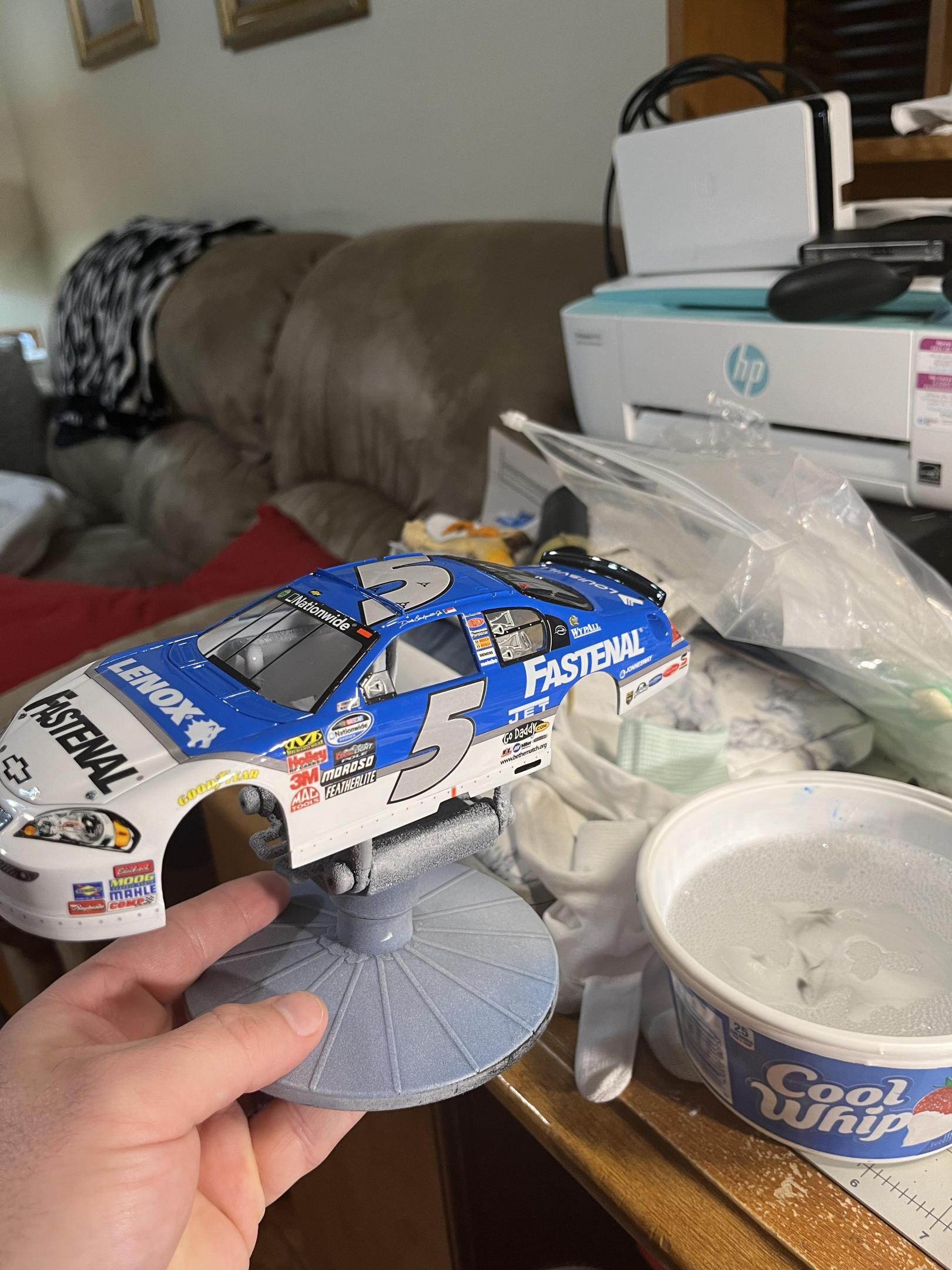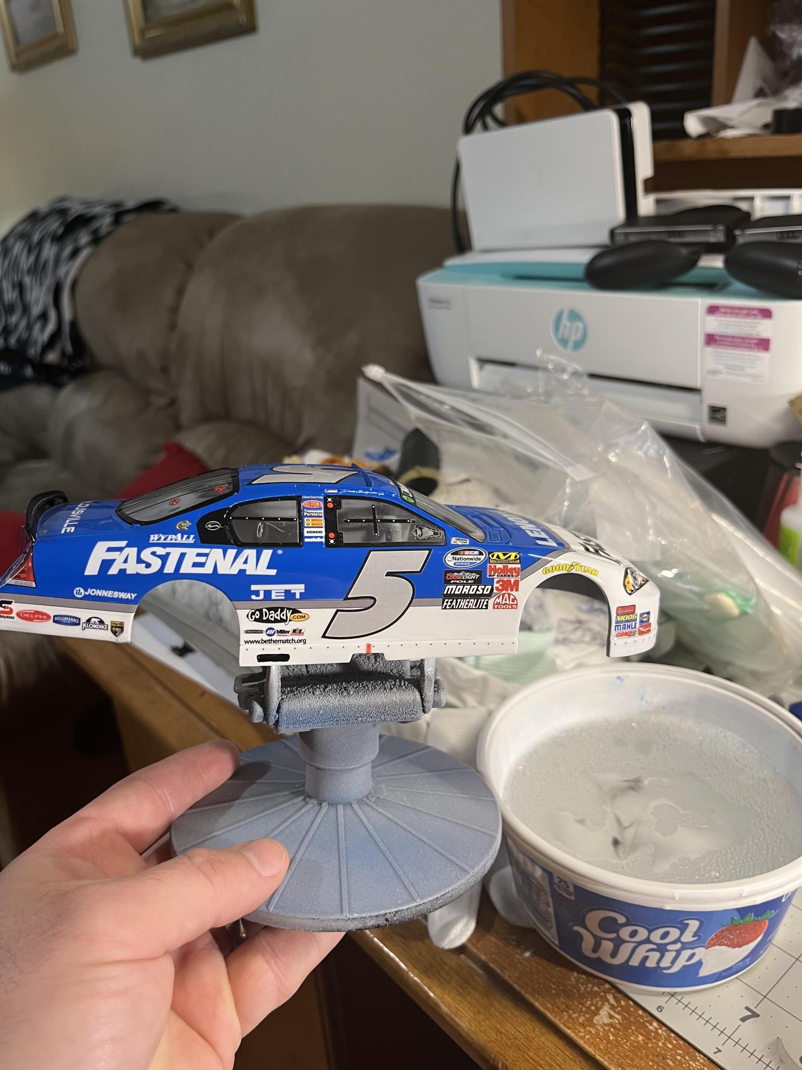 This is my last completed build before my surgery, this is a very deeply personal favorite for me because of my oldest son. This is my 2014 Dale Earnhardt Jr Daytona 500 winner. Revell Gen 6 kit, splash paint and 2k clear, power slide decals, also used a few from 3 Amigos, and MPR. Protech, RB Motion, and Detail Master’s lines and fittings. I also added my own resin helmet, hans, and gloves. Trophy is 3d printed. I’m not sure when I can start back building after my surgery but it was extremely important to me to get this one finished.