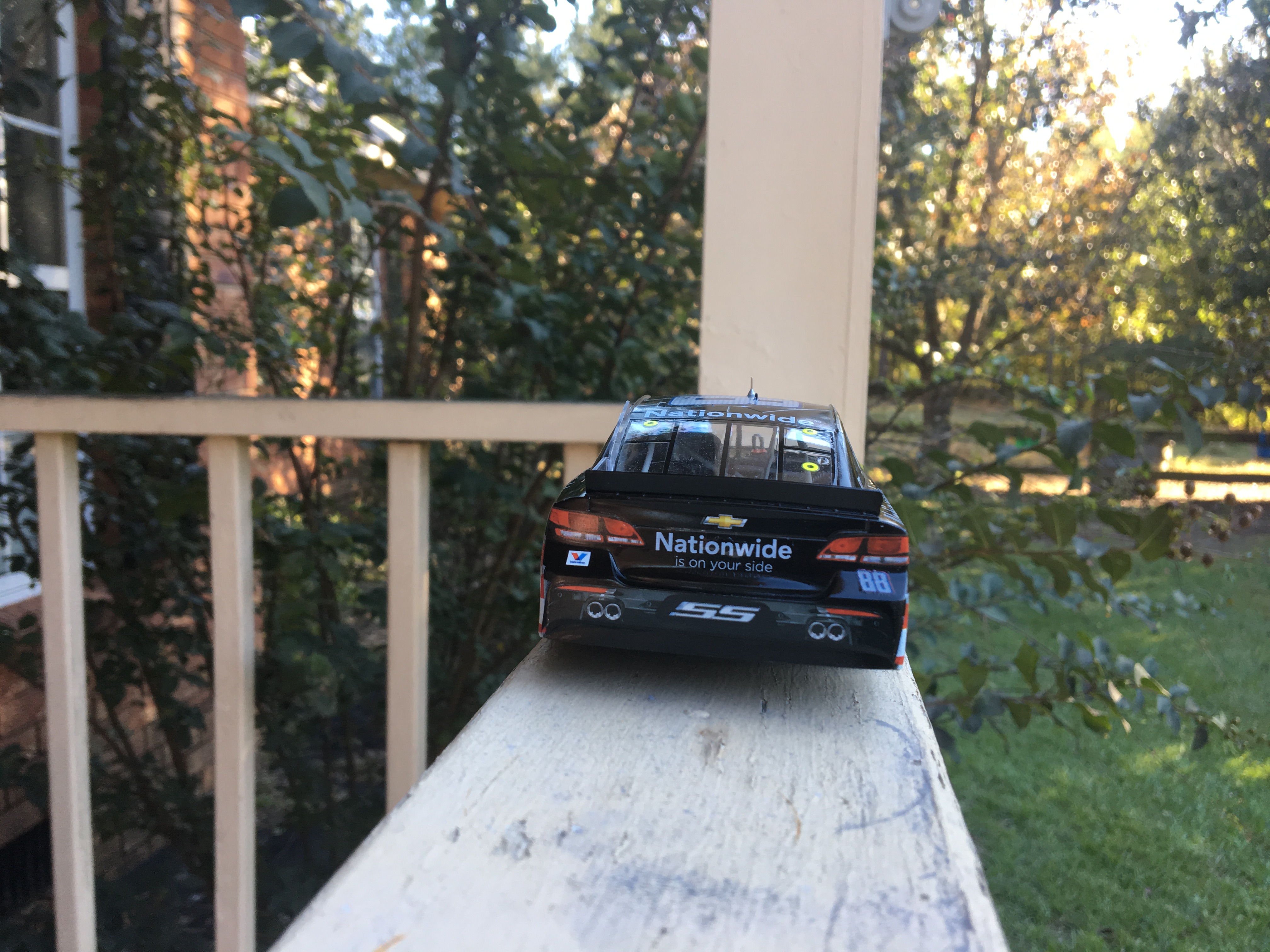 This is my 2015 Dale Jr Talladega win car, it’s a Revell glue kit, Tamiya paint, Powerslide decal sheet. I lowered the ride height and tucked the wheels into the fenders, I made a Superspeedway splitter, added the radio antenna, and split the shark fins into two separate pieces. Updated with better pics.