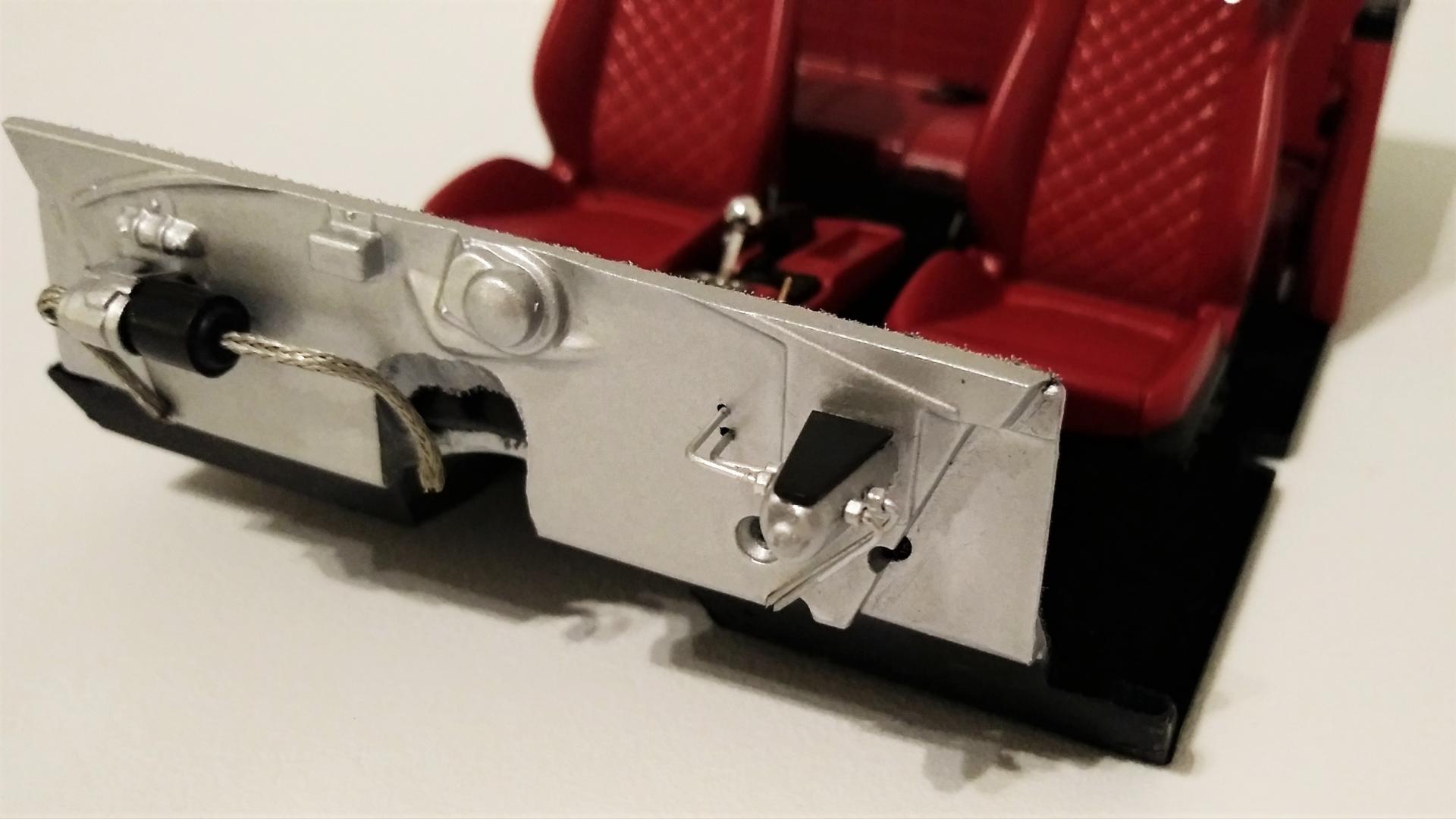 So slowly the project is coming to an end. I thought until the end, which color the interior should get. Actually I wanted to keep it in a shade of brown but brown does not fit with this type of vehicle ... but he is a bit too bad for that. Since the external appearance is very restrained, I have decided to red. More precisely, a ruby red ... that goes a bit dark red. The Roadrunner should look quite European and therefore the seats come from an Audi R8, as well as the steering wheel. The center console has a Ferrari 360 donated. The fit of the form perfectly pure and especially the 6-speed manual gear I wanted. The dashboard has also been redesigned. Air vents are photo etched parts of Tremonia. The seats in front and in the back have still received straps and the interior is finished. -