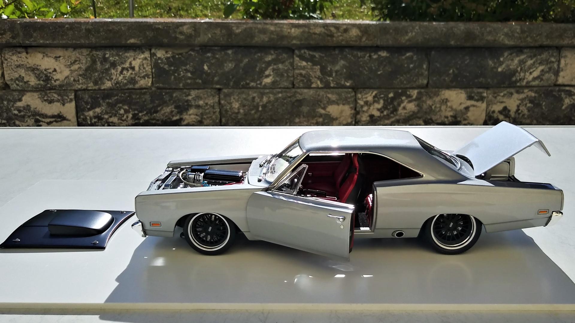 After almost 3 months of building, this project is finally finished The model was the 1969 Plymouth Roadrunner from AutoWorld. All in all, this conversion was really fun for me, even if the quality of the original vehicle leaves a lot to be desired. You can find the complete conversion report here: I start with a picture that shows the original condition and then some pictures of the reconstruction.