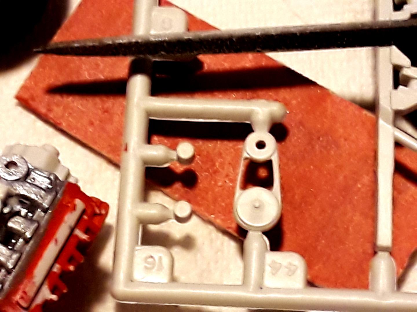 Hi all So, I've been getting more into detailing my engines to look more realistic. Obviously, the injected mold parts in most kits leave a lot to be desired. I'm working on thinning the fan belts in order to make them look better in relation to the pulleys and such. Also, the fans that come with kits are always way too thick in scale. I've been having decent luck with just using a triangle needle file to thin the belts out, although it dawned on me tonight that I should also be thinning them down from the outside of the belt as well, to show a little bit of inset in the pulley groove. Thoughts, ideas on better/faster ways? Also, thinning down the cove area between the belt and the pulley gets tricky. I've been just using a sharp #11 blade to 'notch' out a sharp triangle after thinning the majority of the flat, but that gets really dicey. Here's an example of one that I'm working on, still attached to the sprue (the left side of the belt is thinned, the right is still stock). I haven't cut it away yet, and I always get a little sketchy about which part to nip through first so I don't compress the thinned belt to the point of breakage, but that's easy enough to figure out after a couple of "OOPS!" tries. lol Any helpful input would be much appreciated, thanks!