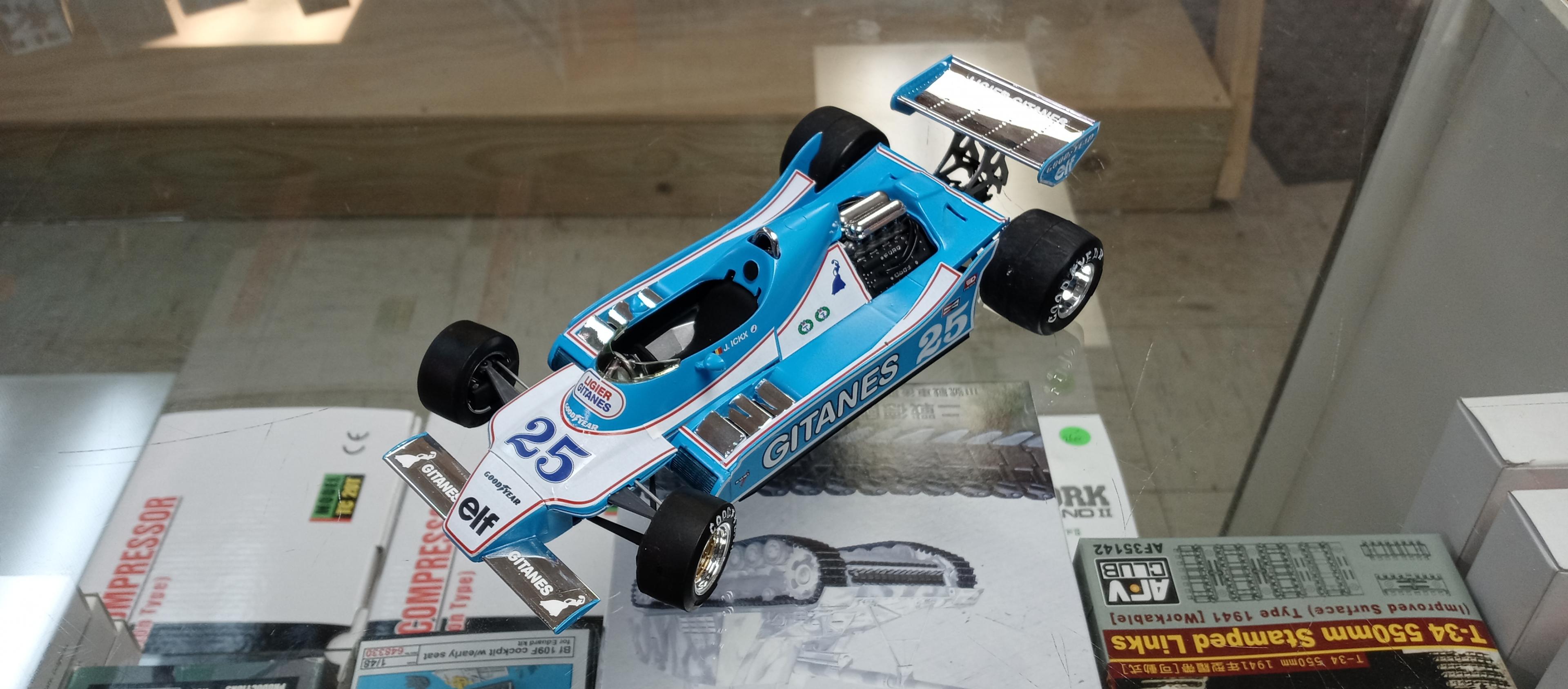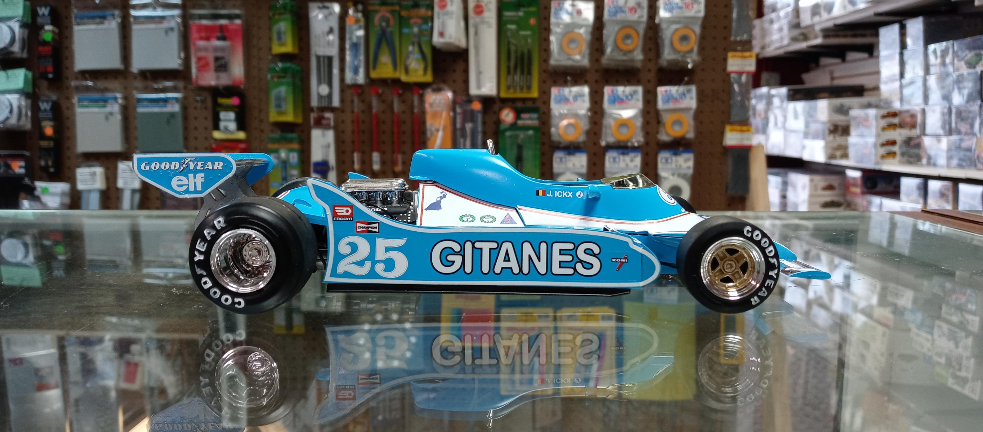 A brief box-stock project that I'm enjoying. This is the Tamiya 1/20th scale 1979 Ligier JS11. The kit decals were toast on account of the age of the kit, so I'm using a set from Indycals which will allow me to build the car numbered and lettered for Jacky Ickx's brief time as a stand-in for the injured Patrick Depallier. Color is Mr Color C-34 Sky Blue under Tamiya TS-13 Clear.