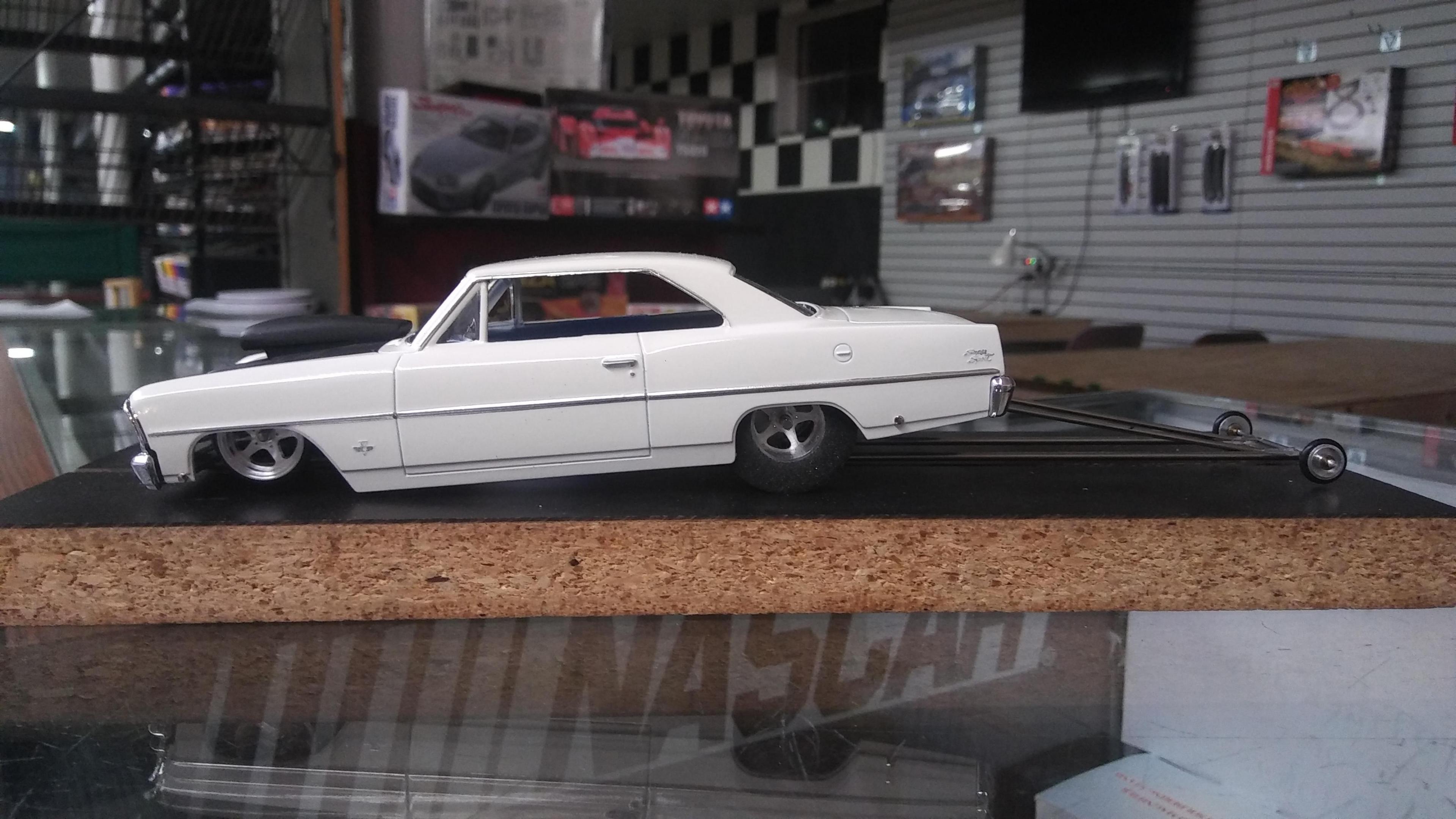 Not one of my favorites to work with. I did this Nova as a commissioned body for a local slot car drag racer and all it seemed to be was misery eliminating mold lines and block sanding to try and get some semblance of smoothness out of the panels. No amount of sanding seemed to get the grille to line up in a satisfactory way, and every pass with the flexifiles meant that much less surface for glue, meaning that to make the front end sturdy enough for drag racing duty I ended up with a puddle of epoxy in each front fender. It's a nicely proportionate body, and the detail is quite solid, but I wouldn't build one for myself. -