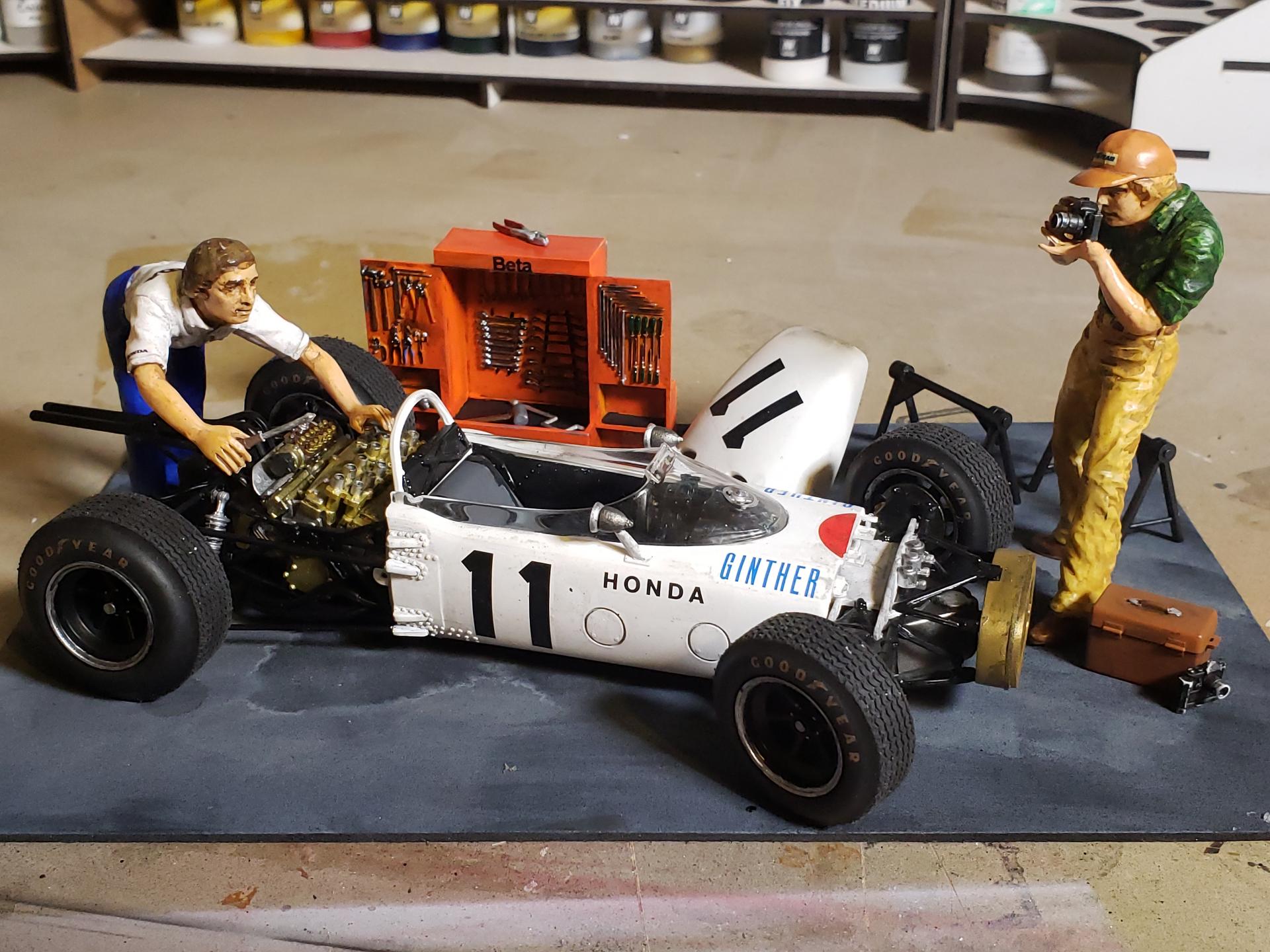 My latest completed build at TandemCTelevision on YT. The idea was a pit scene of a race used Honda RA272, maybe after it's Mexico GP win.
