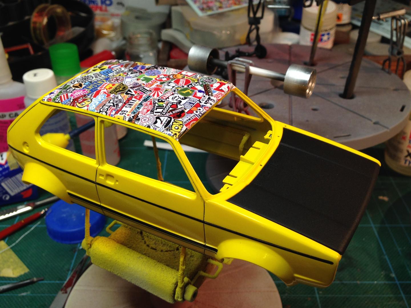 Thanks chaps! I'm glad you approve, especially those of you who have inside knowledge of the scene. I saved the paint disaster on the roof, with a stickerbomb decal. I'm pleased with the way it looks. It went down well, too. Got it from a geezer in Germany. The kit stripe decals were very good and a lot stronger than some I've used.