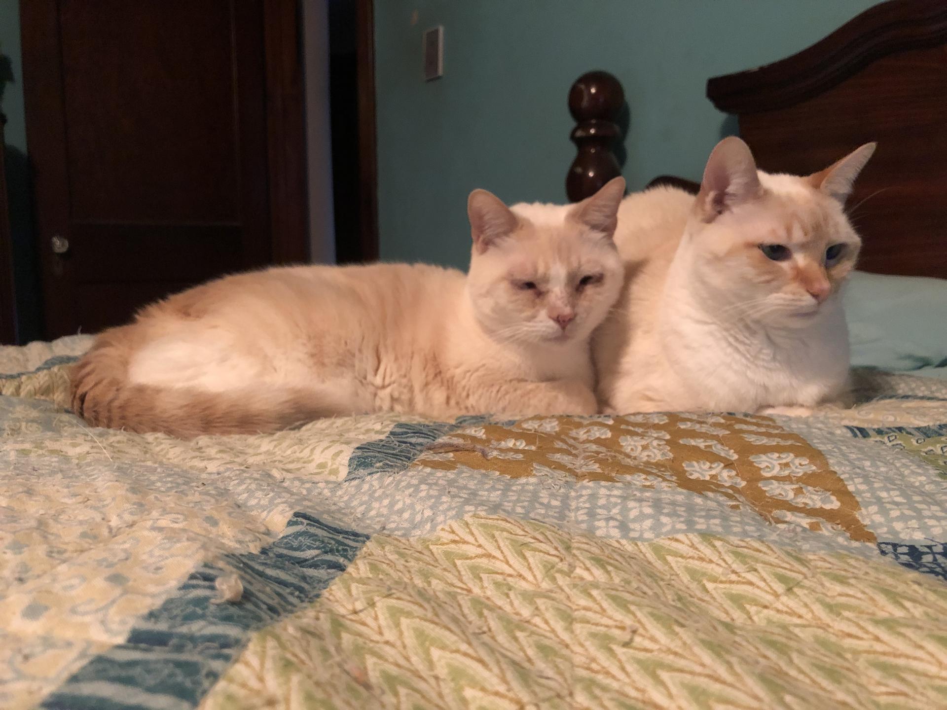 Our Babies, the white ones are Buddy and Holly the other 2 are Benji (black and gray) and Josie (calico). They are 2 sets of sibling rescues....