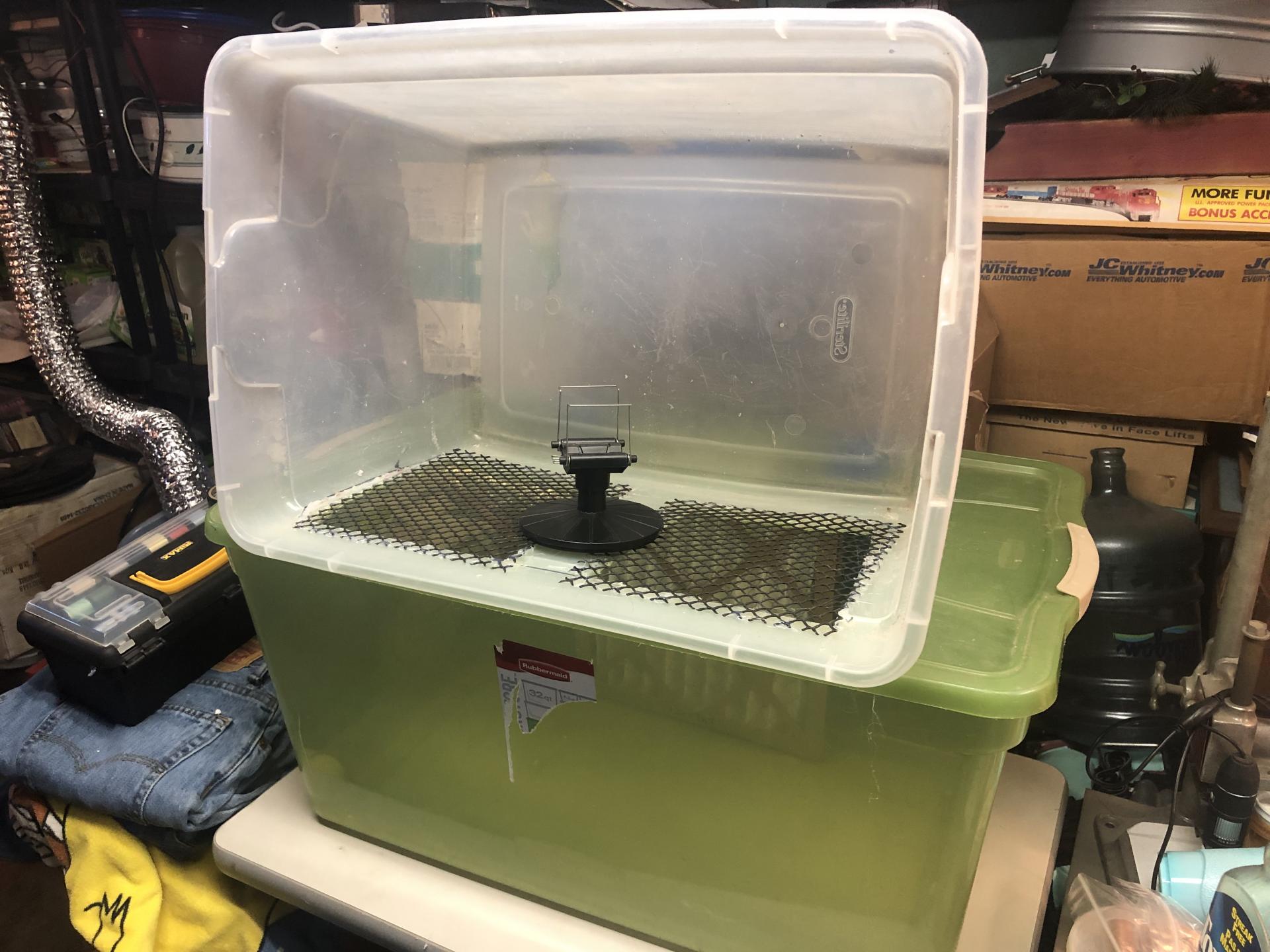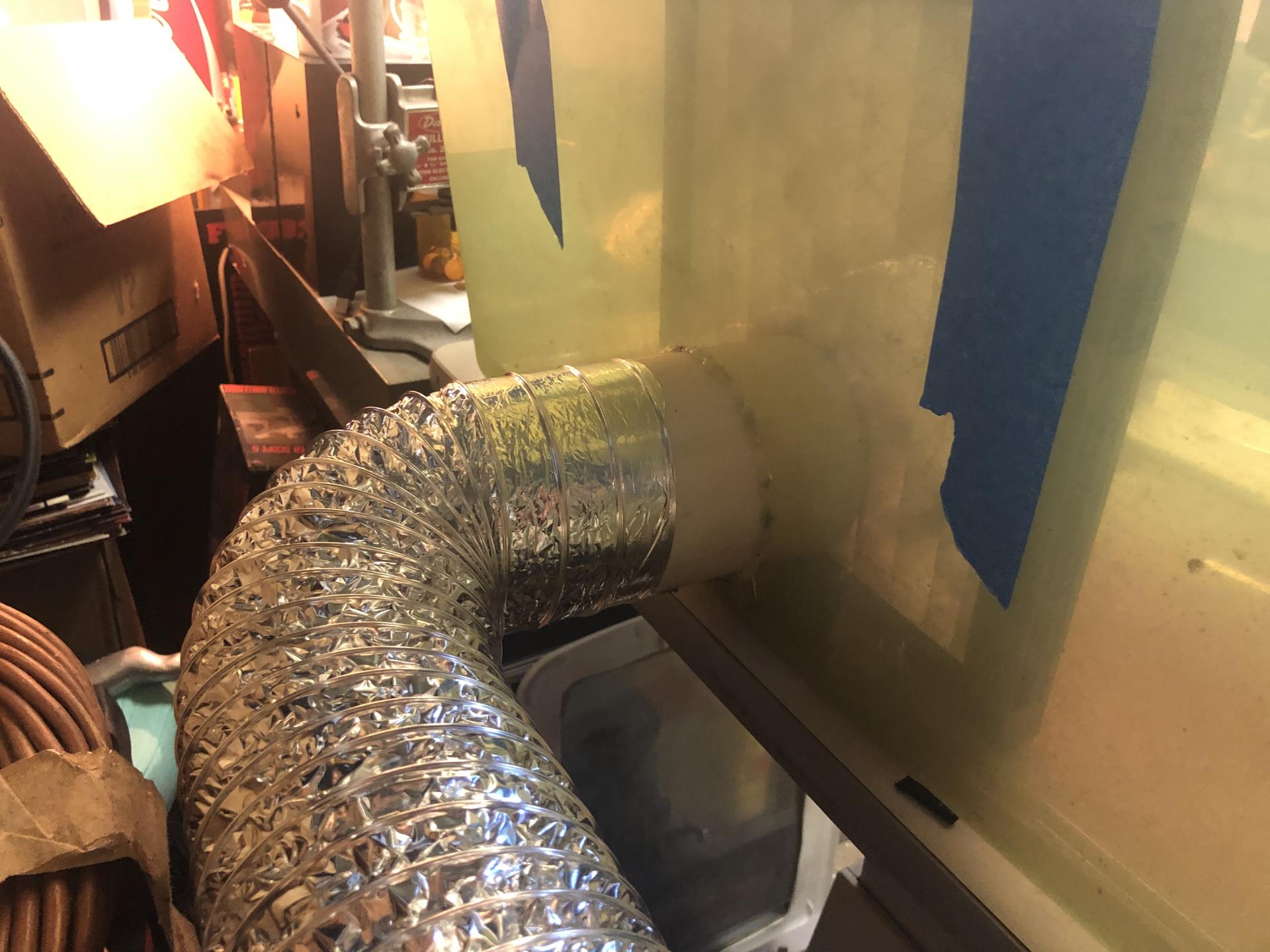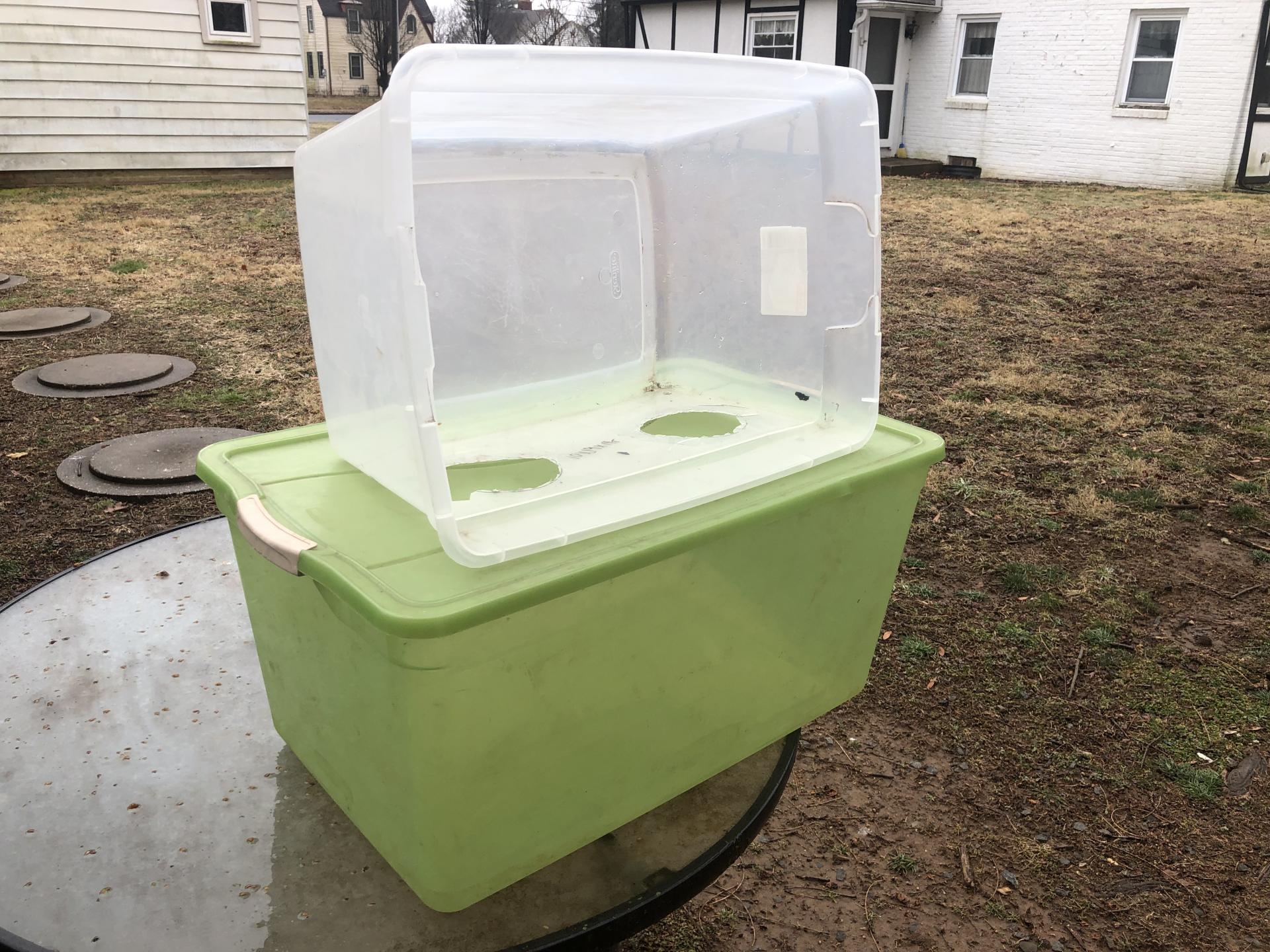 I started my booth, I'm going to attach these 2 totes, use the lower one to put the filter in and the fan in the side and mount the power supply on the outside of it and use a 4" dryer vent to go out the window. I'm looking at bilge fans now to decide which one to get, I'm leaning to a 4" 240 cfm one I saw....