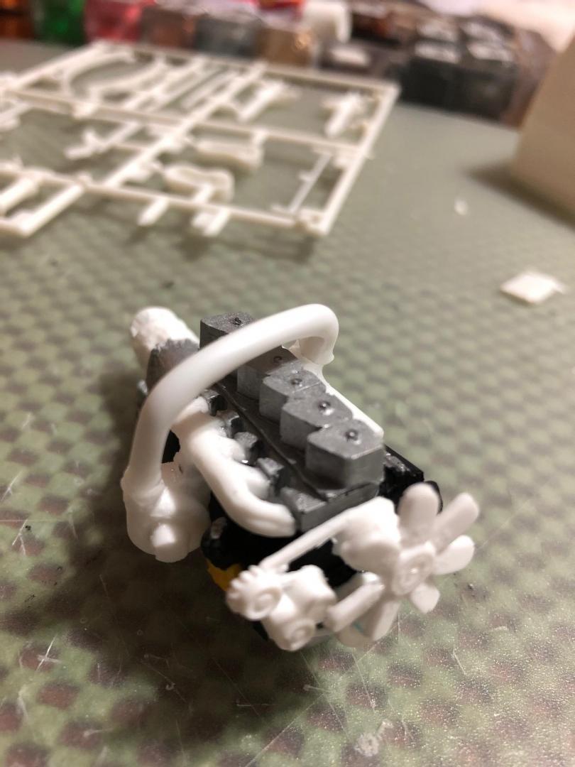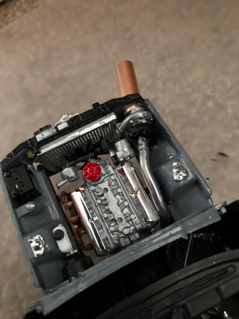Turbo, rear centerline wheels, NOS and seat are from Ted's. The turbo downpipe is solder and I will build the rest of the exhaust from styrene rod.
