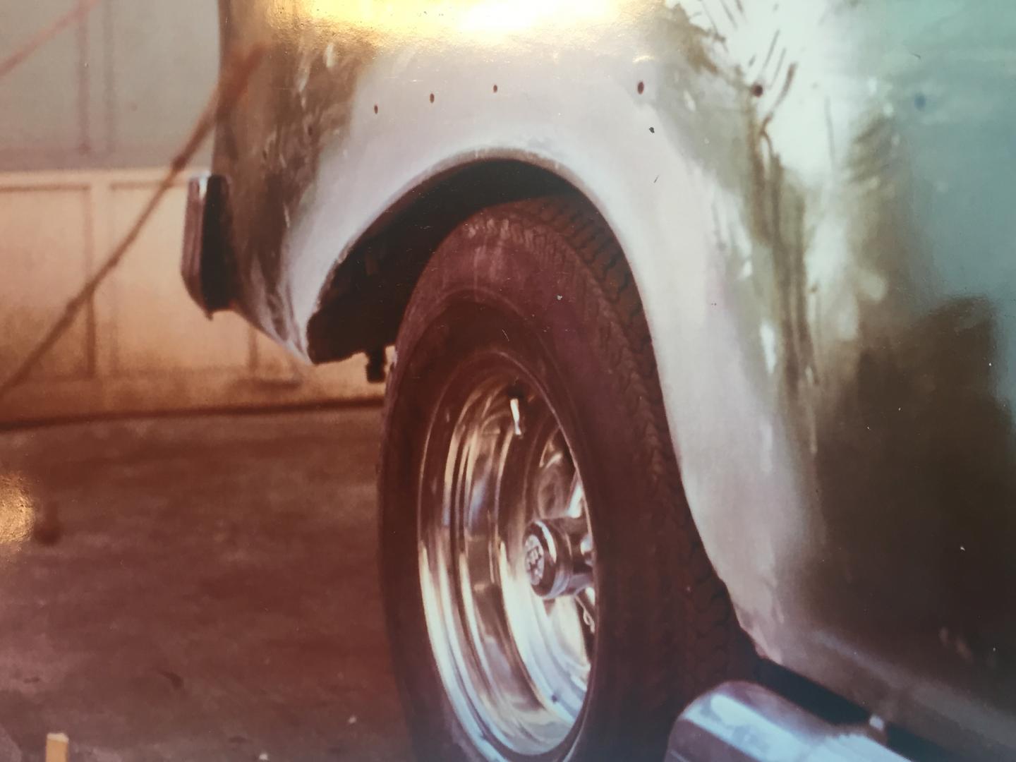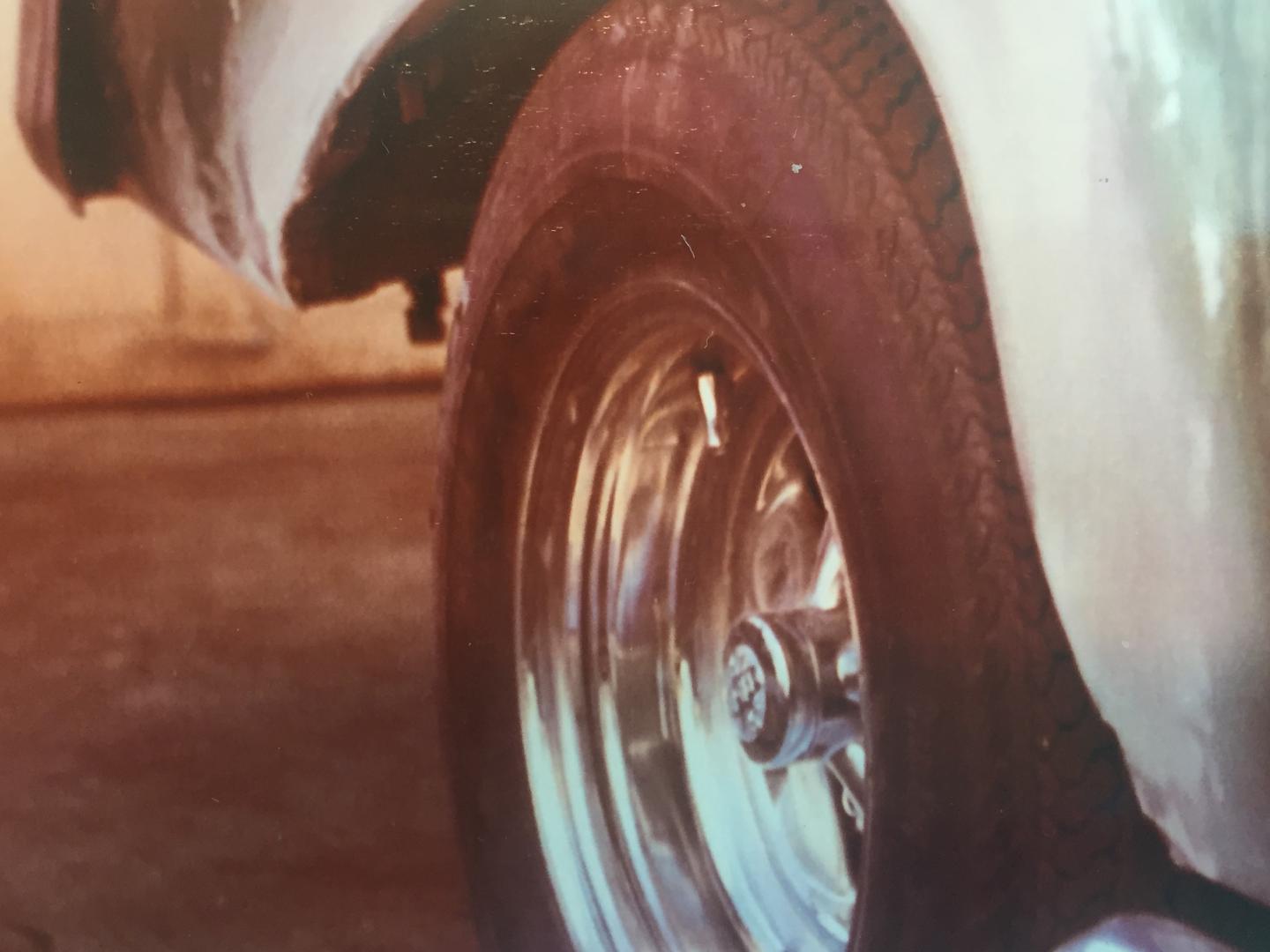 Continuing my research on my brother's Chevy 1956 210 Wagon racing machine, I received another set of photos from my brother, which answered some questions, but raised others. I'll limit this topic to questions on the tires he used, and what would be a good source for these in 1/ 25th scale. My brother radialized the rear wheel well fender area to allow installation of wider street tires and slicks. After showing the photos to some car modeling buddies, they appear to be similar to the Protrac Street-racing tires tires, such as a 275-60-15 with a 9.7 inch tread width, or could be 9.5 inch. My brother he's pretty sure that they were less than 10" wide - anything more than 9.7" would have been too wide for the car. You'll note that he has deep dish Cragar mags on these rear tires. My Google search did not turn up any likely after-market selections. Any kits out there with these tires?