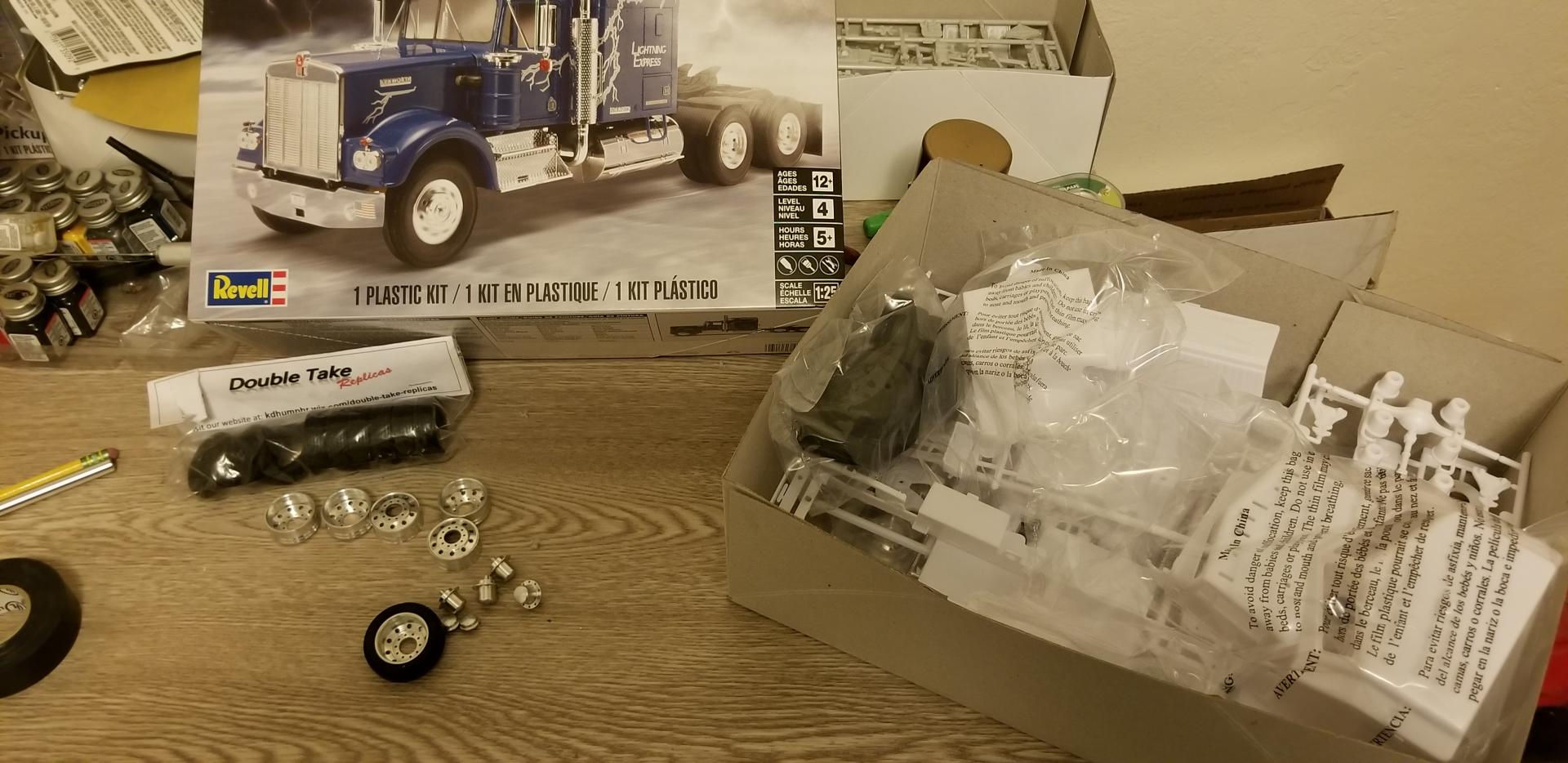 BRBO KenworthChris541 replied to Chris541's topic in WIP: Model Trucks: Big Rigs and Heavy Equipment Not really progress.... but parts are rolling in.... and email notification that the cab kit shipped today. Donor kit, keystone wheels/caps, double take lo pro 22.5 tires