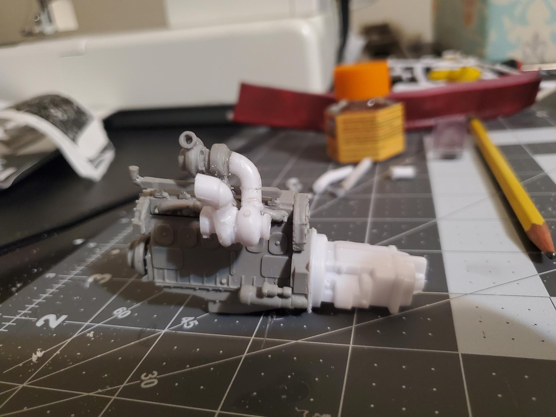 BRBO KenworthChris541 replied to Chris541's topic in WIP: Model Trucks: Big Rigs and Heavy Equipment I got started on the 6-71 assembly, compound turbo set up roughed in. The valve cover options that came with the engine are both later style, and I want to reshape it to match the very early one the real truck has. I'm trying to decide on color scheme for the truck.... I'm not 100% sure I want to go Detroit green on the motor since the rest of the truck will be over the top "street rod style" detailed and typically that would entail a color matched/detailed engine.