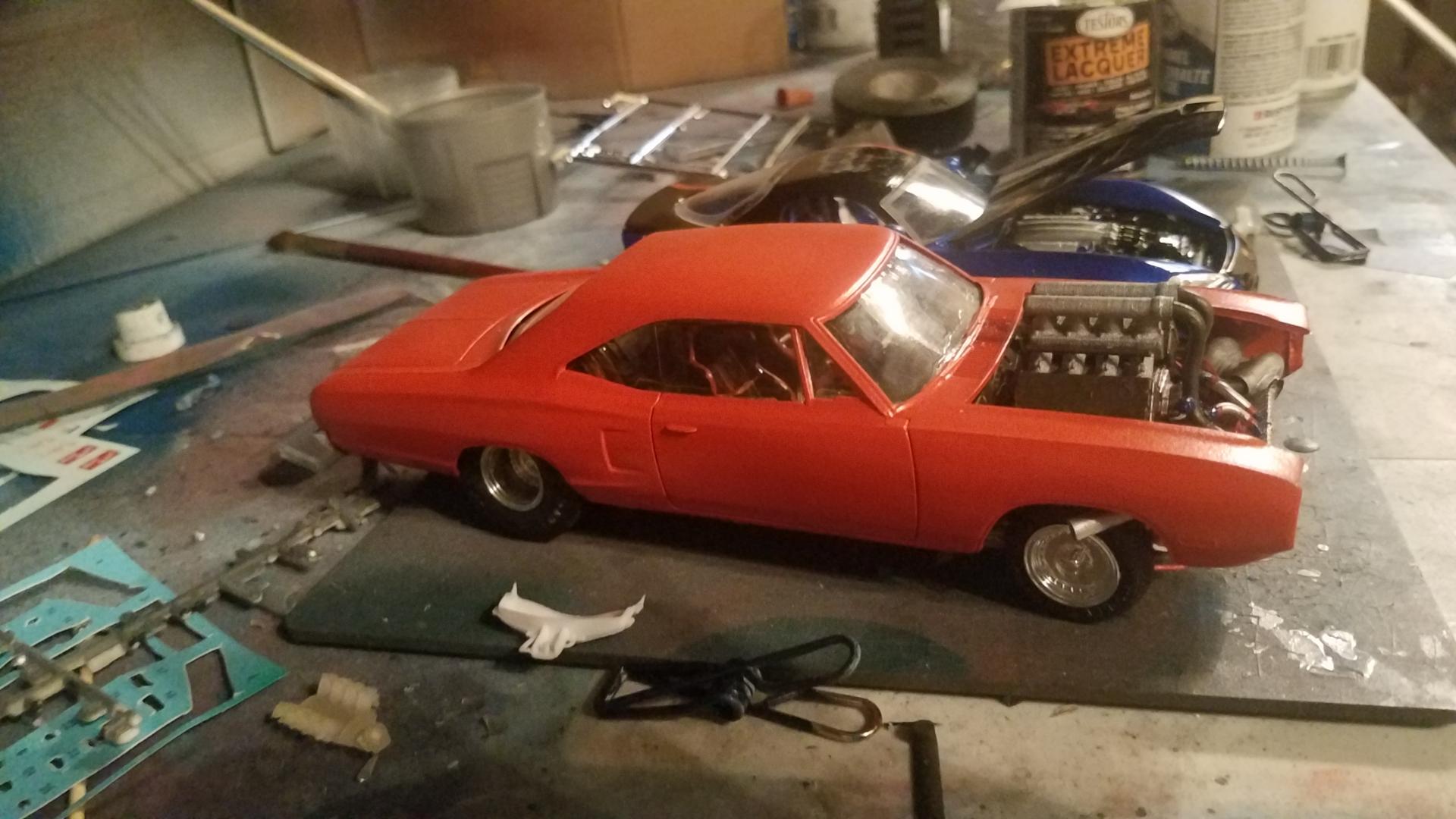 Hey guys, first time posting but i find i come to visit the site frequently for tips and inspiration. Heres my most recent build im working on. Its a '70 coronet pro street that i tried to do some modification on. Found ron olsons shop on shapeways and picked up a mountain motor and some turbos. Didnt realize how big the thing was until it arrived! Its not quite finished n my camera sucks but im open to any type of feedback!