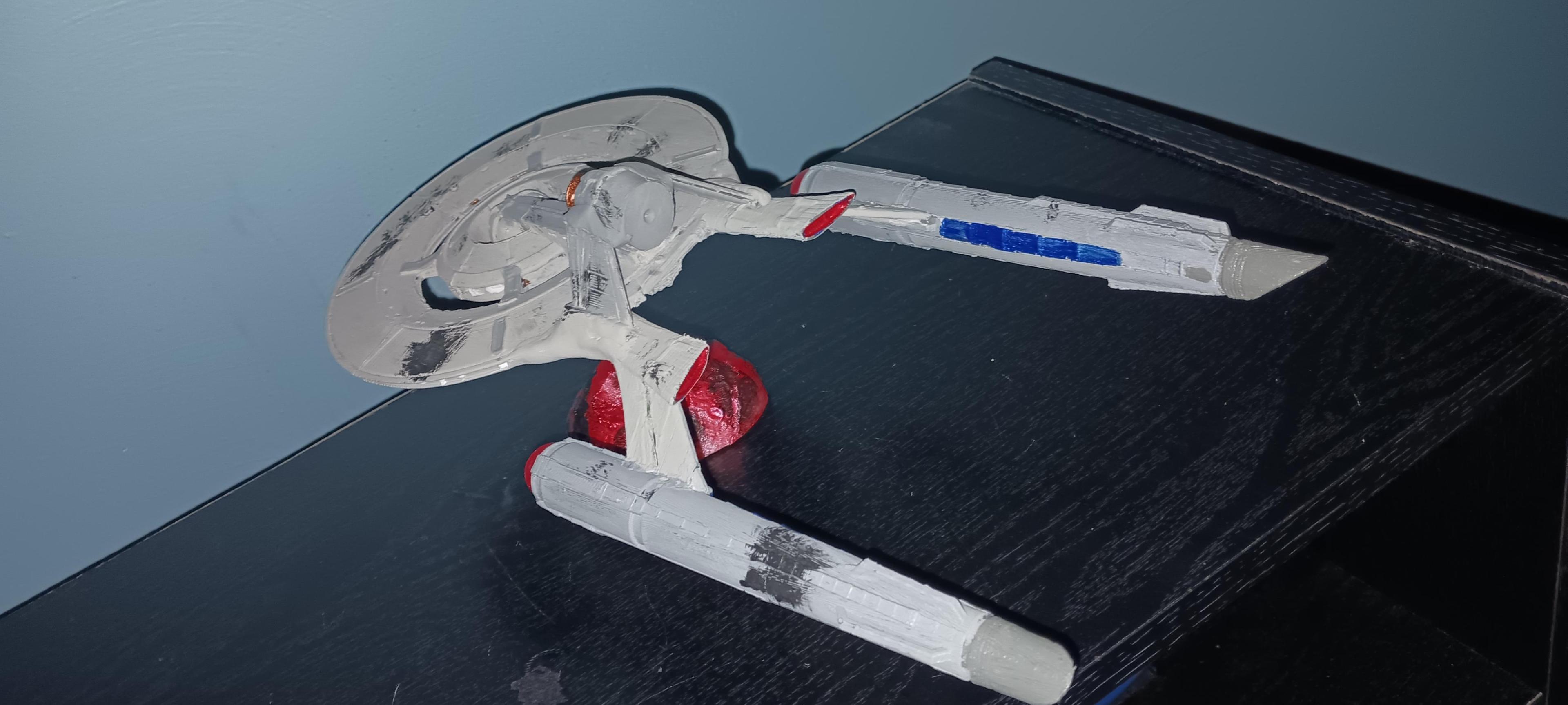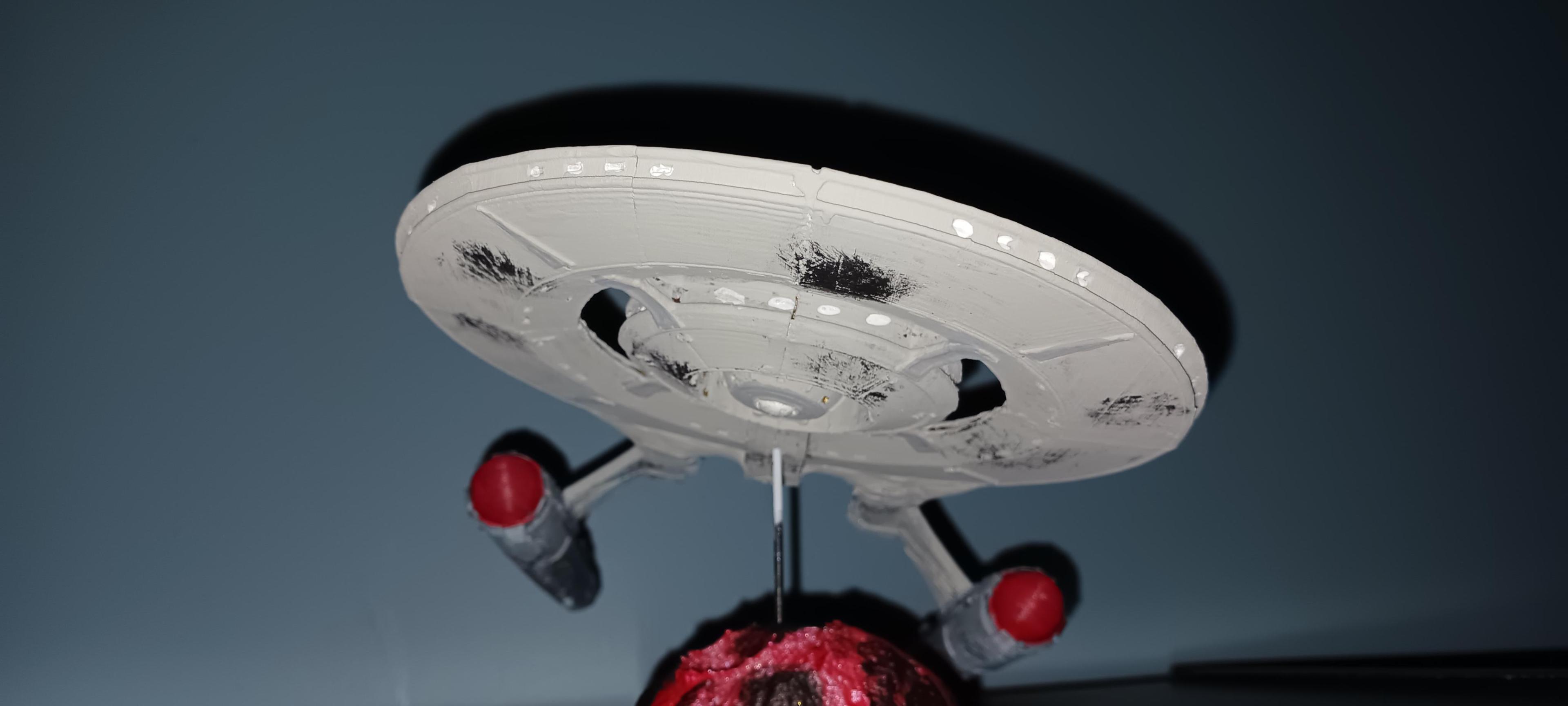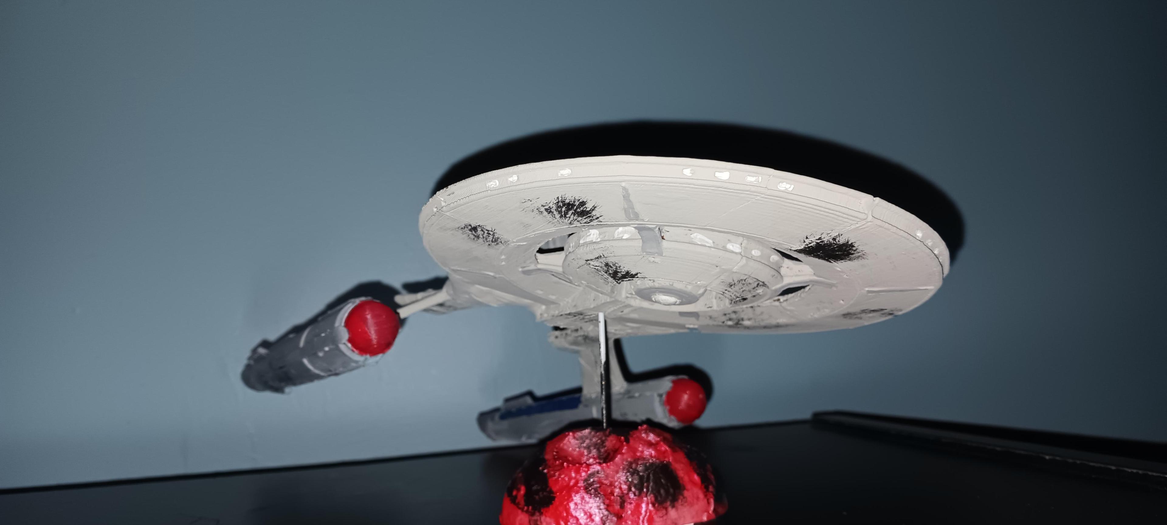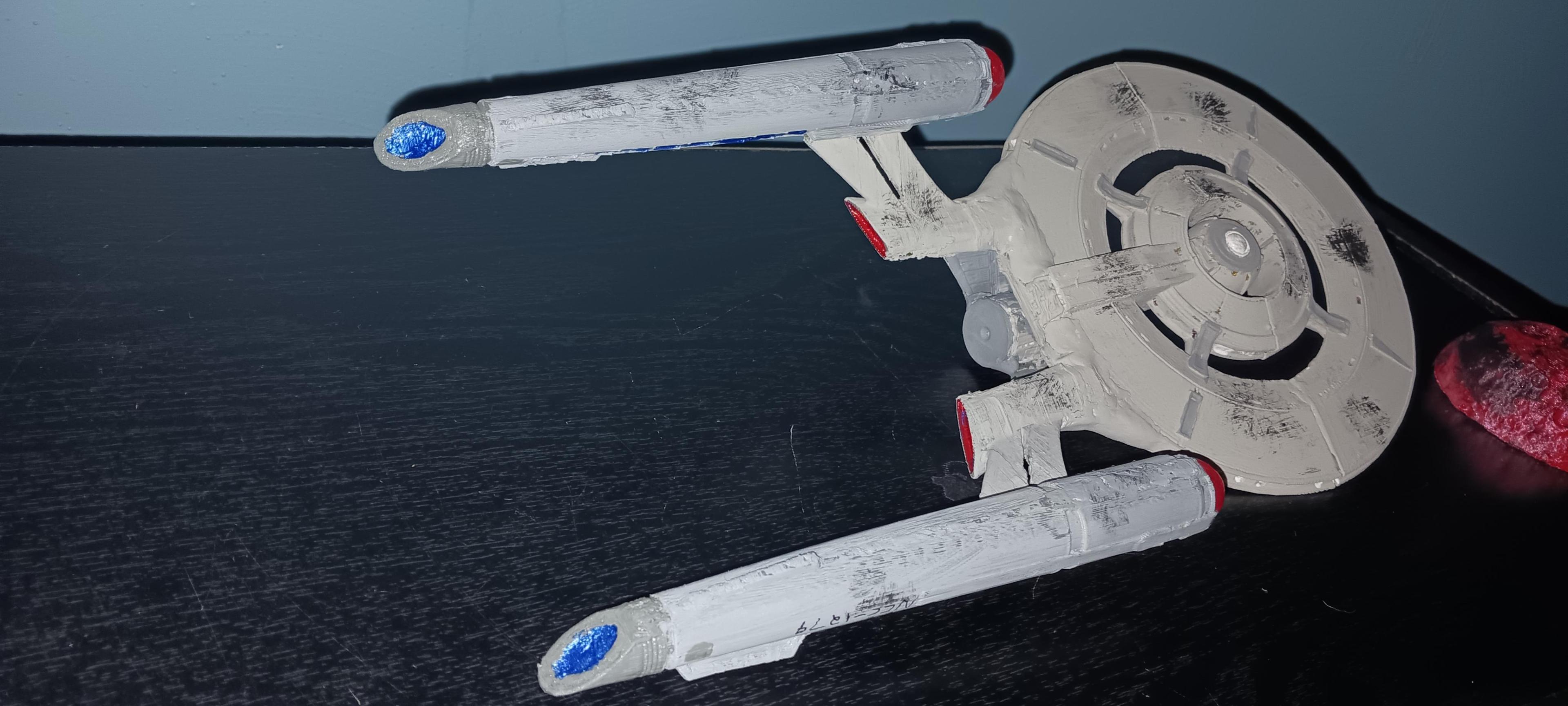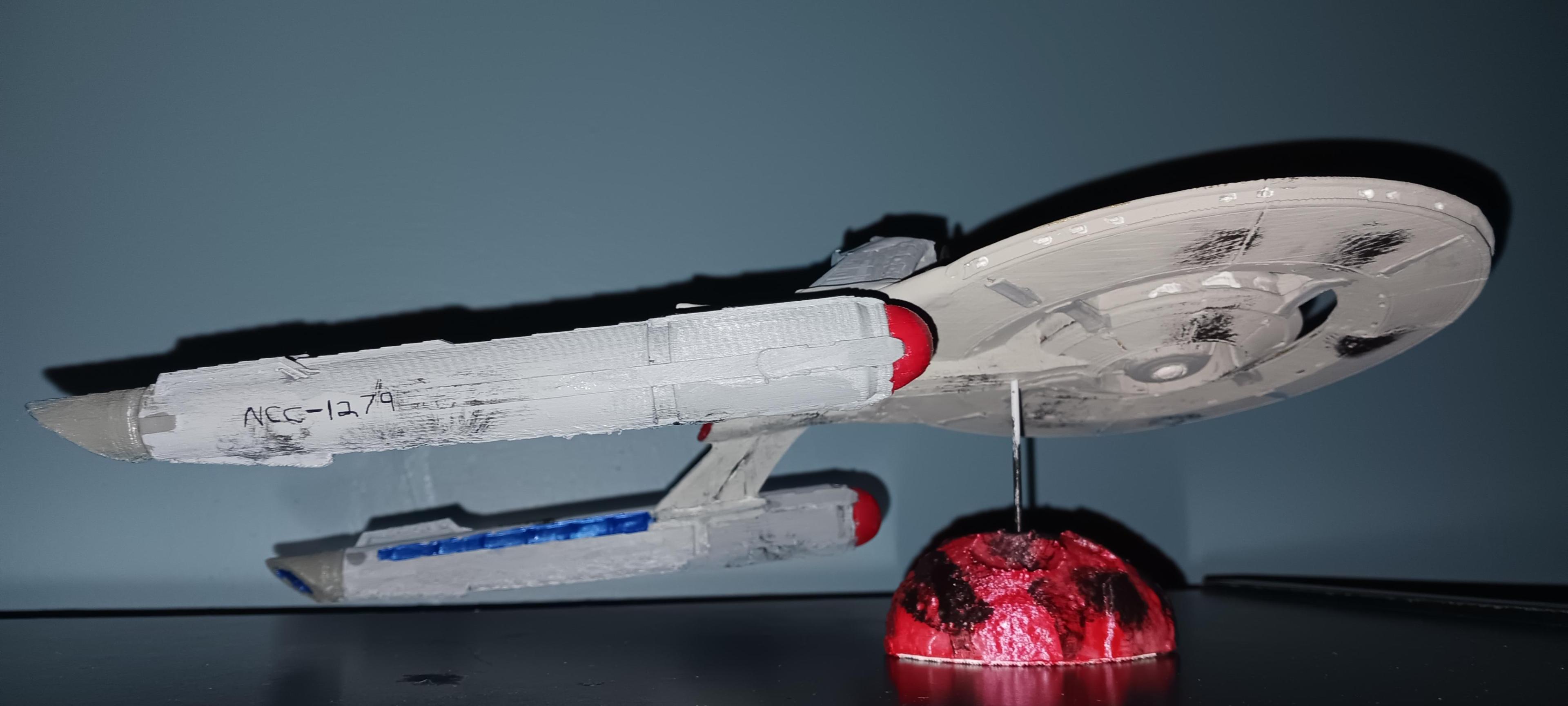3. identified as a crossfield class cause of the saucer the ncc-1279 is a klingon federation mercenary built starship designed as false flag to restart the klingon and federation war of 2256-2257 in 2260 spock and several other crew members steal the enterprise to go rescue a friend and a crewmember and end up stopping this plot in the first episode of star trek strange new worlds season 2 called the broken circle I had to tear apart 3 different star trek ship models to build this ship it is 13 inches long I used putty to fill in gaps and smooth the joining seems of some of the parts i have a piano cover of the Star Trek strange new worlds theme playing in the background of the video