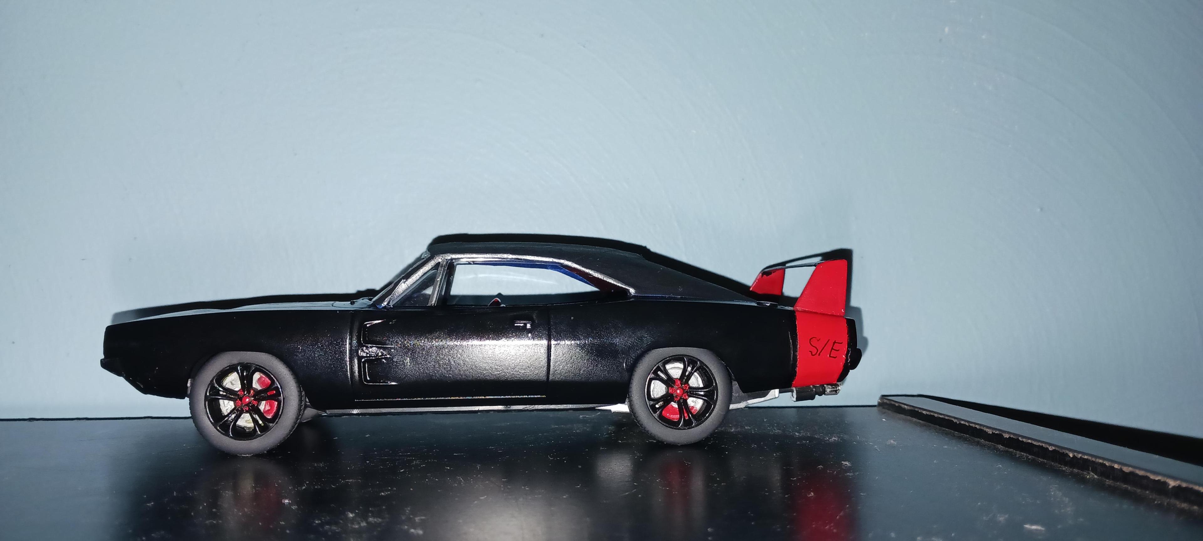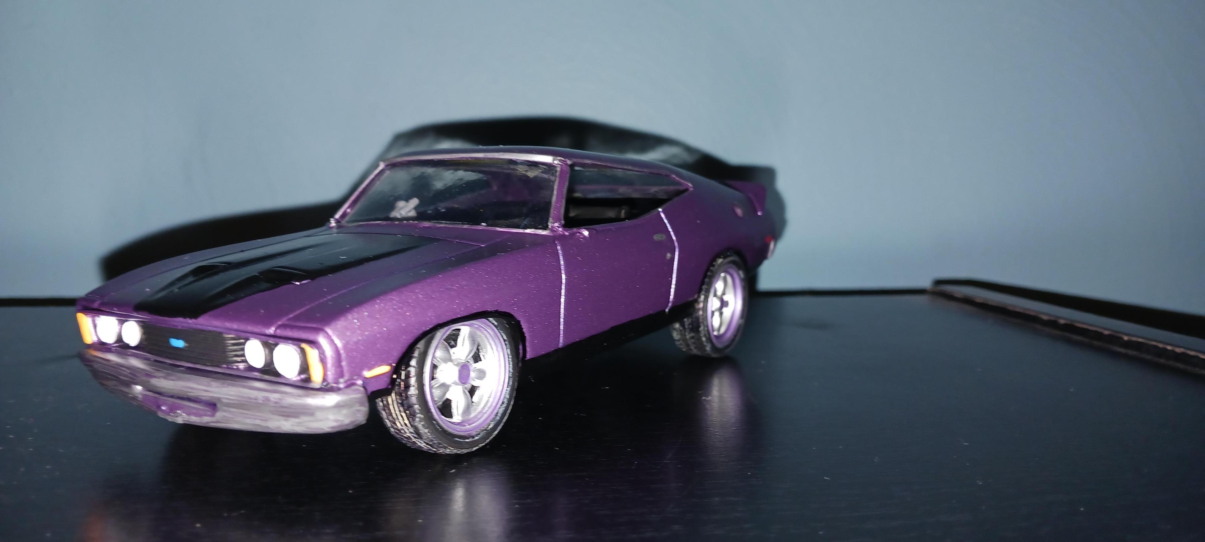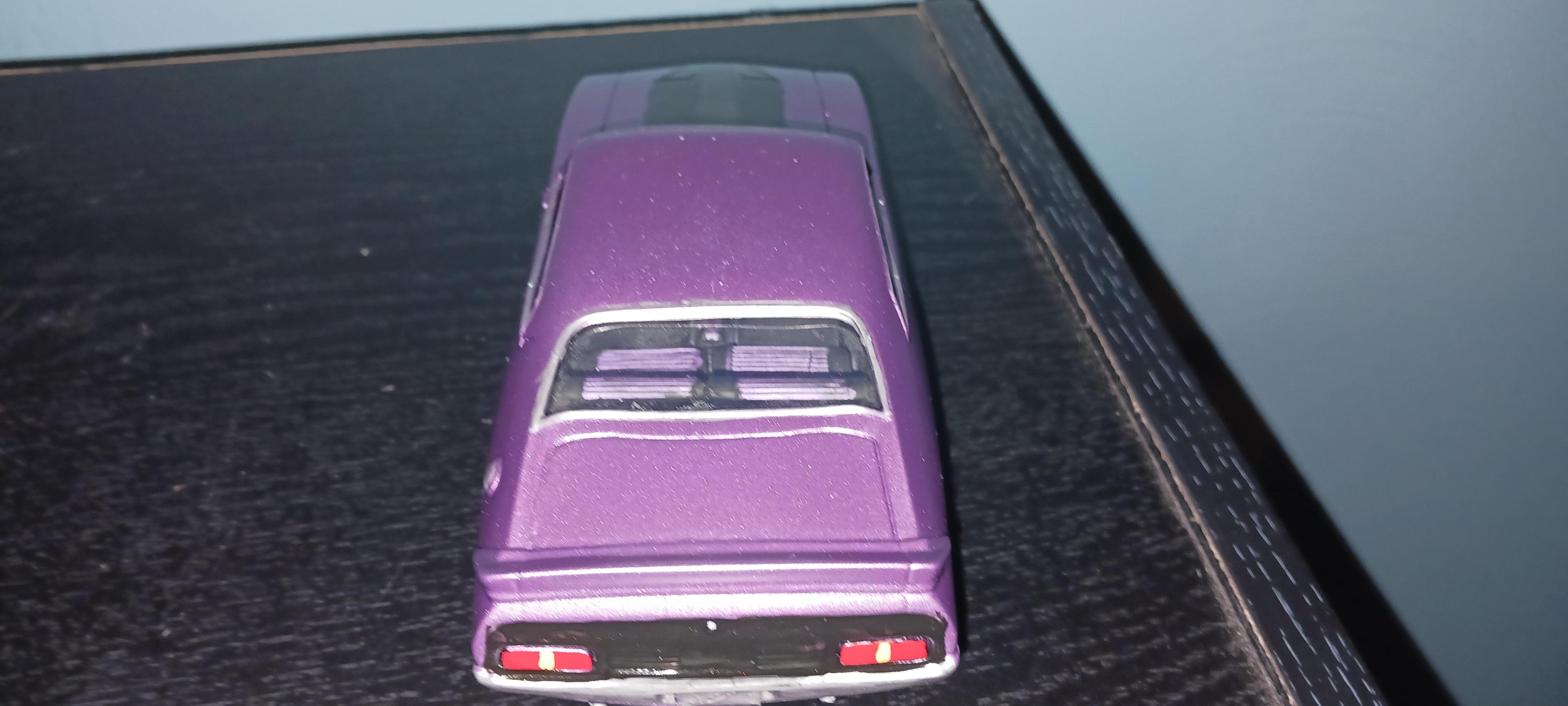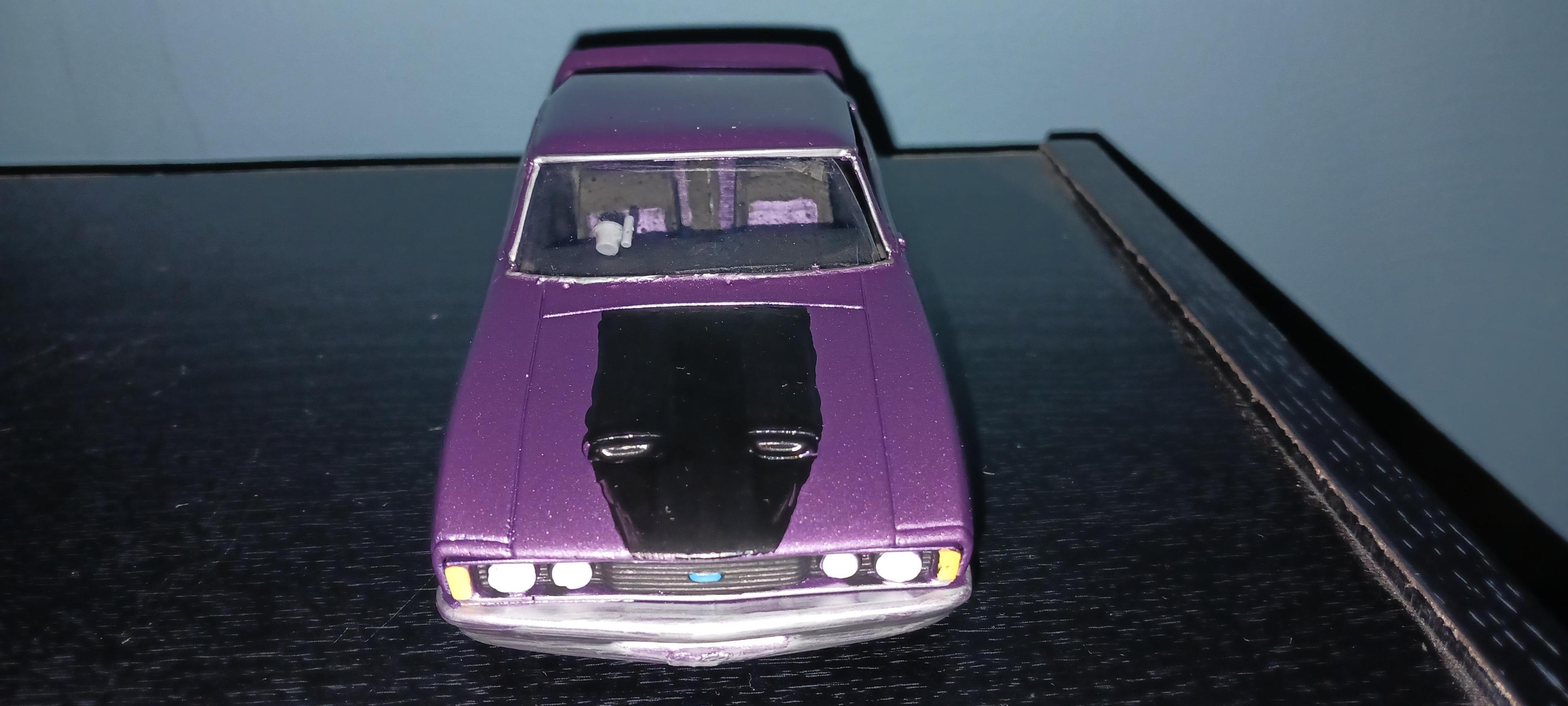 the resin casted body I got at a flea market late last year it was missing the front windshield posts I had to make the glass and come up with a chassis and interior for it from my parts boxes the dash is a 71 or 73 mustang dash which I converted over to a right hand side dash the rims and tires came from my parts boxes