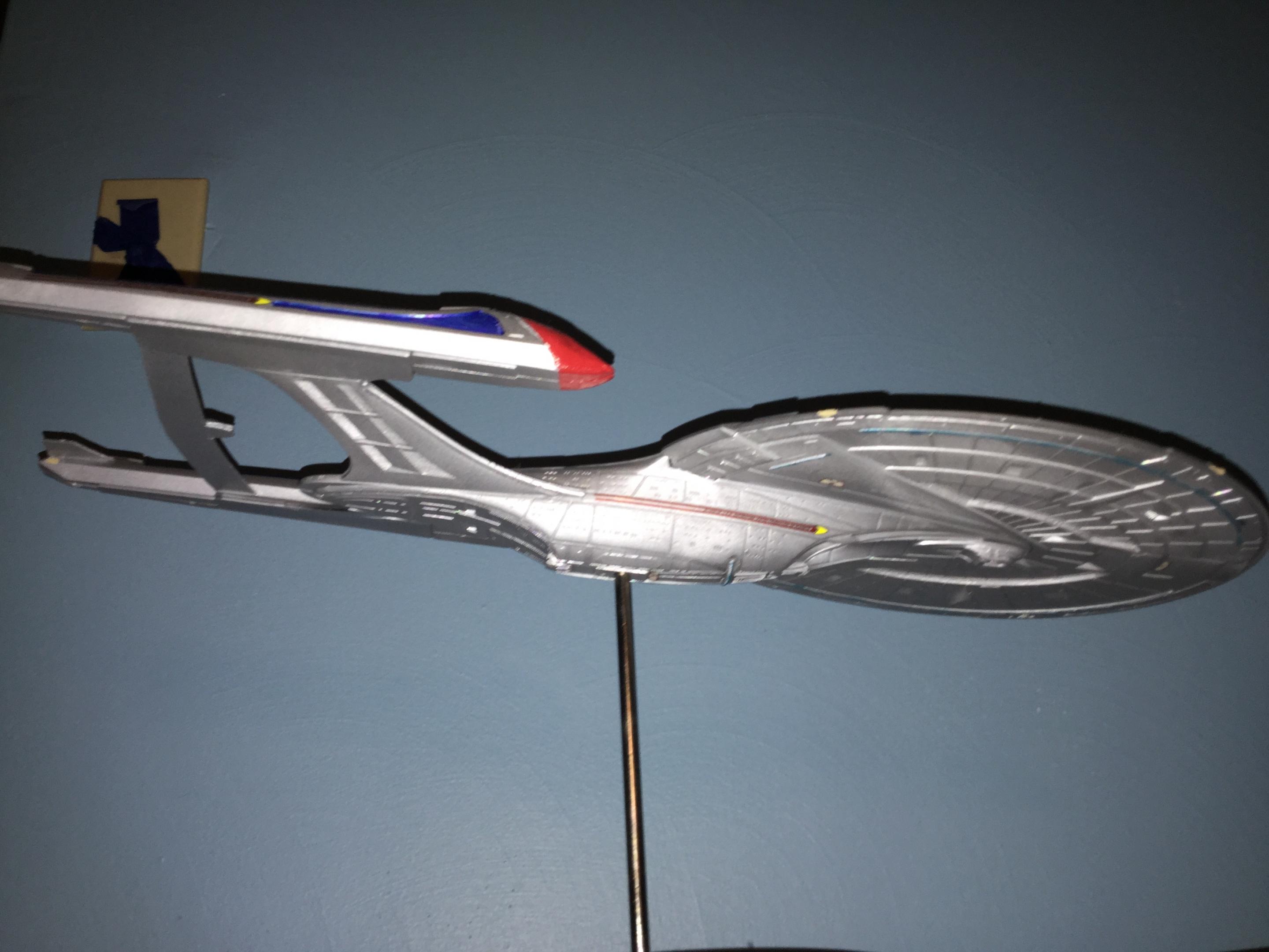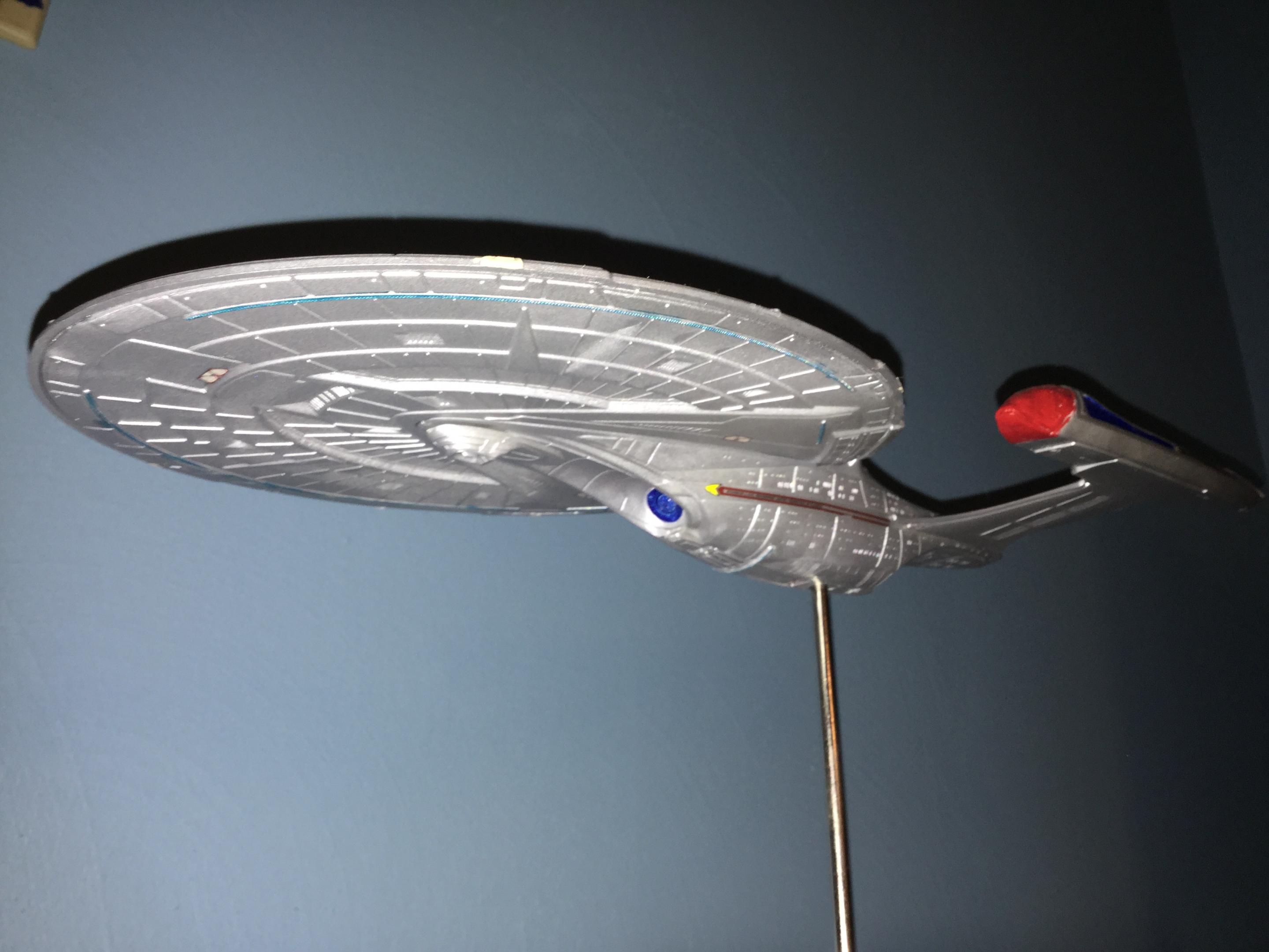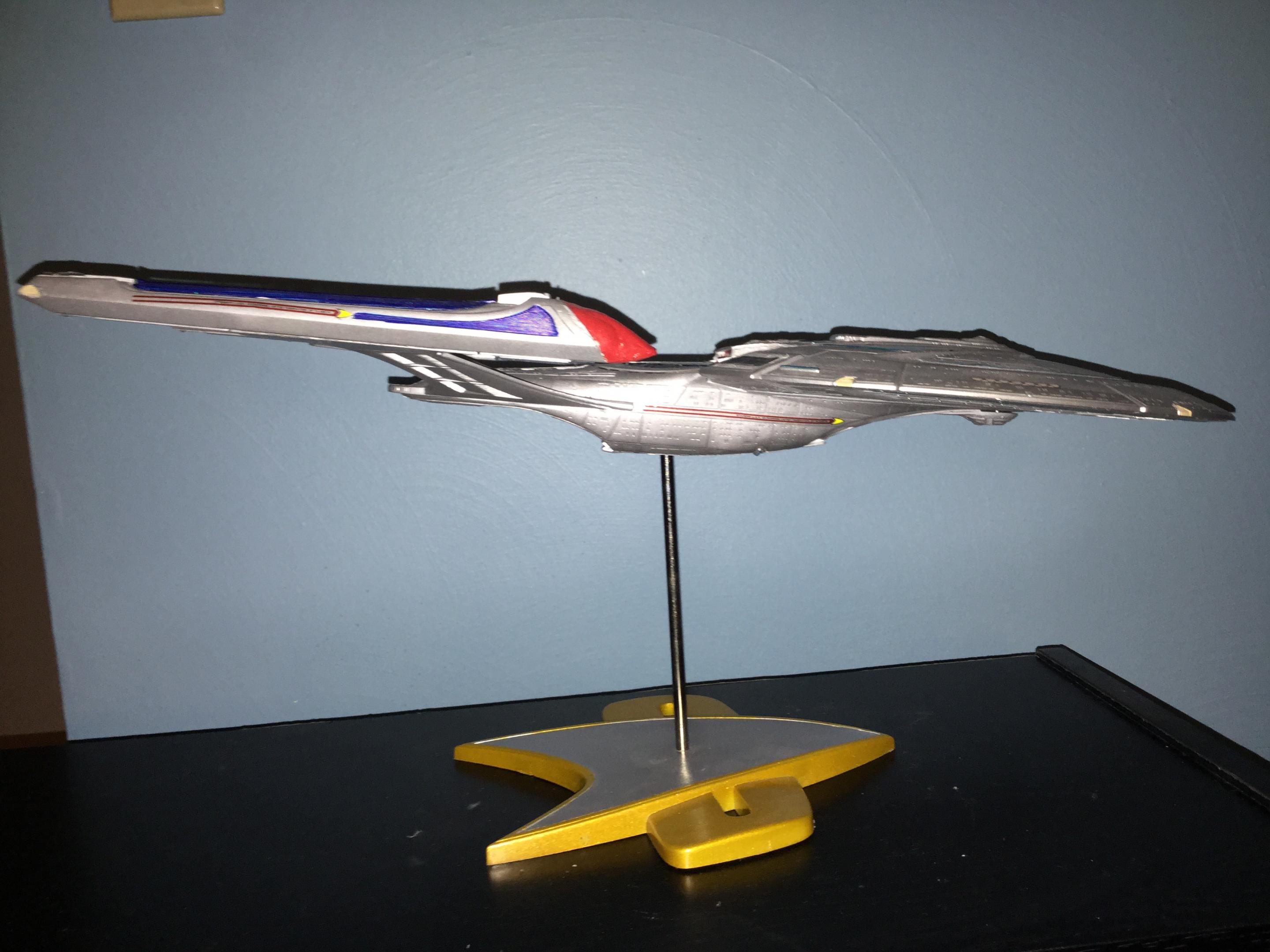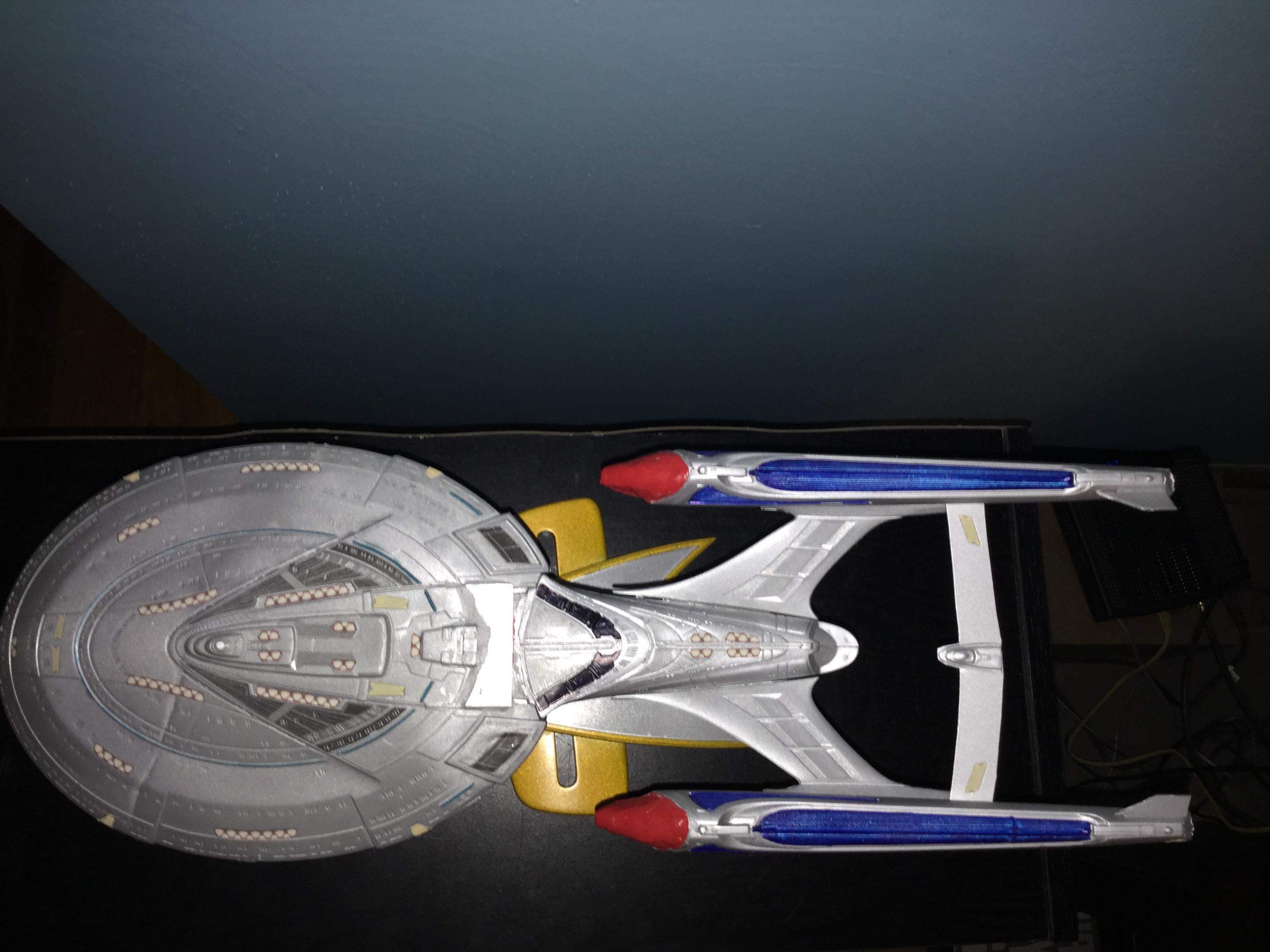 i decided to make a sovereign class variant that takes elements from the on screen design one of the production concepts and one of the star trek online sovereign class variants i did the phaser strips blue like how the uss titan's were in the season 1 finale of star trek lower decks i named it after nathan even's wellerman sea shanty which he released on 1/21/2021 and thats were the registry number came from i did not have any decals to make the name and registry numbers for it plus there are some trek ships with no visible name and registry numbers and with this being in universe a expermental variant design for a new subclass variant for the sovereign class designed for exploration not combat like the main sovereign classes were designed for no visible name and registry number is fine as once it gets commissioned it will recive that and the nx will be changed to ncc