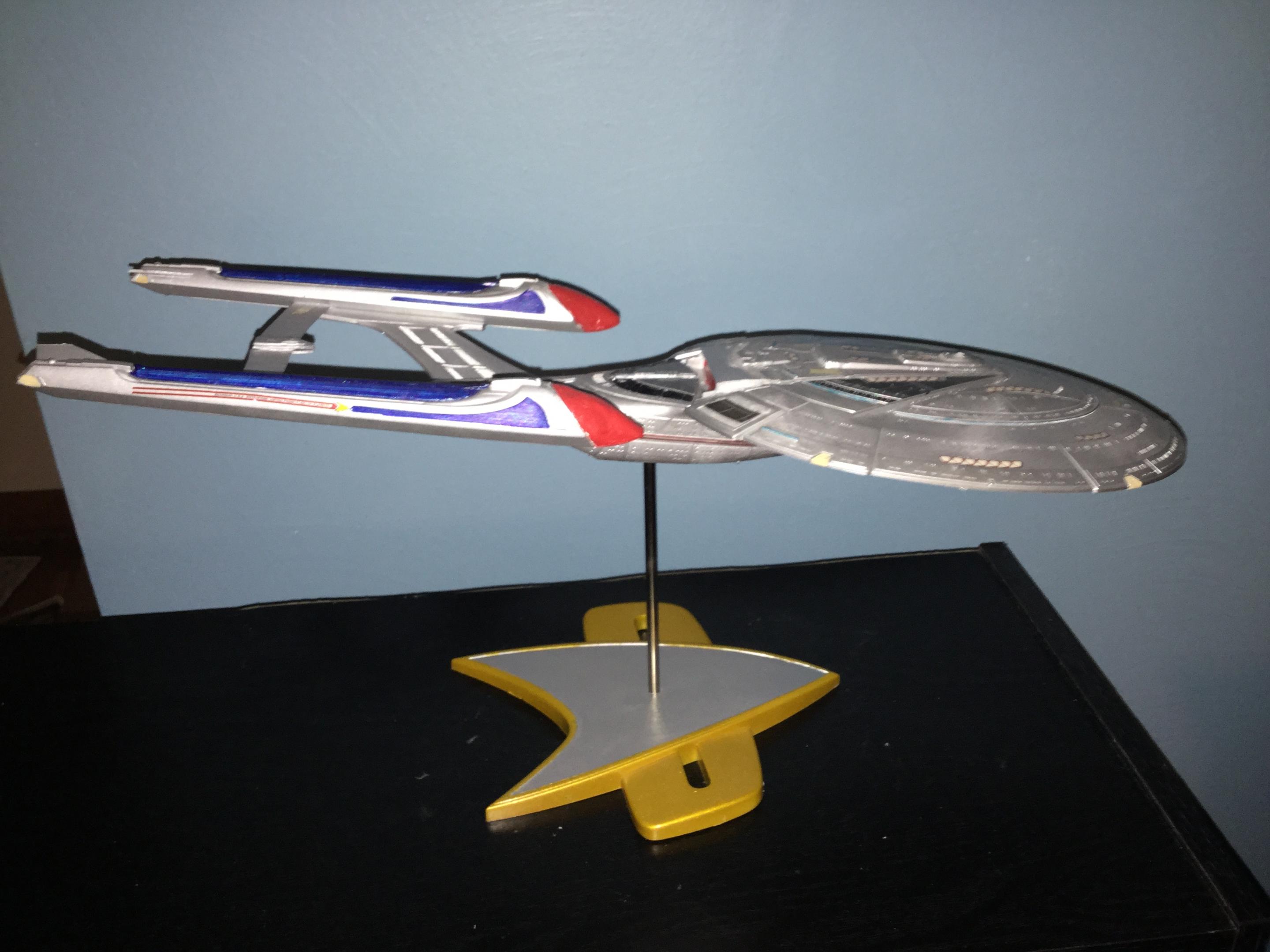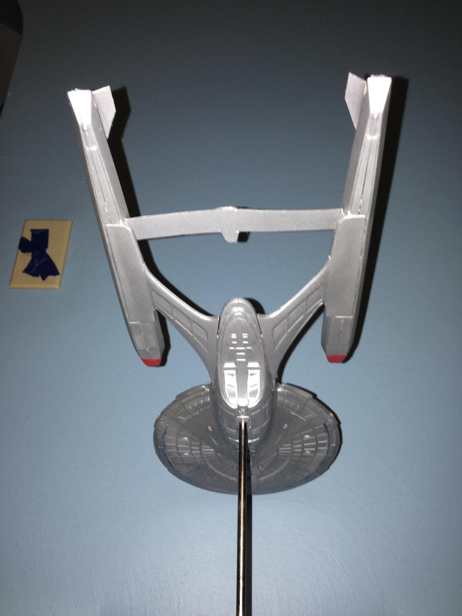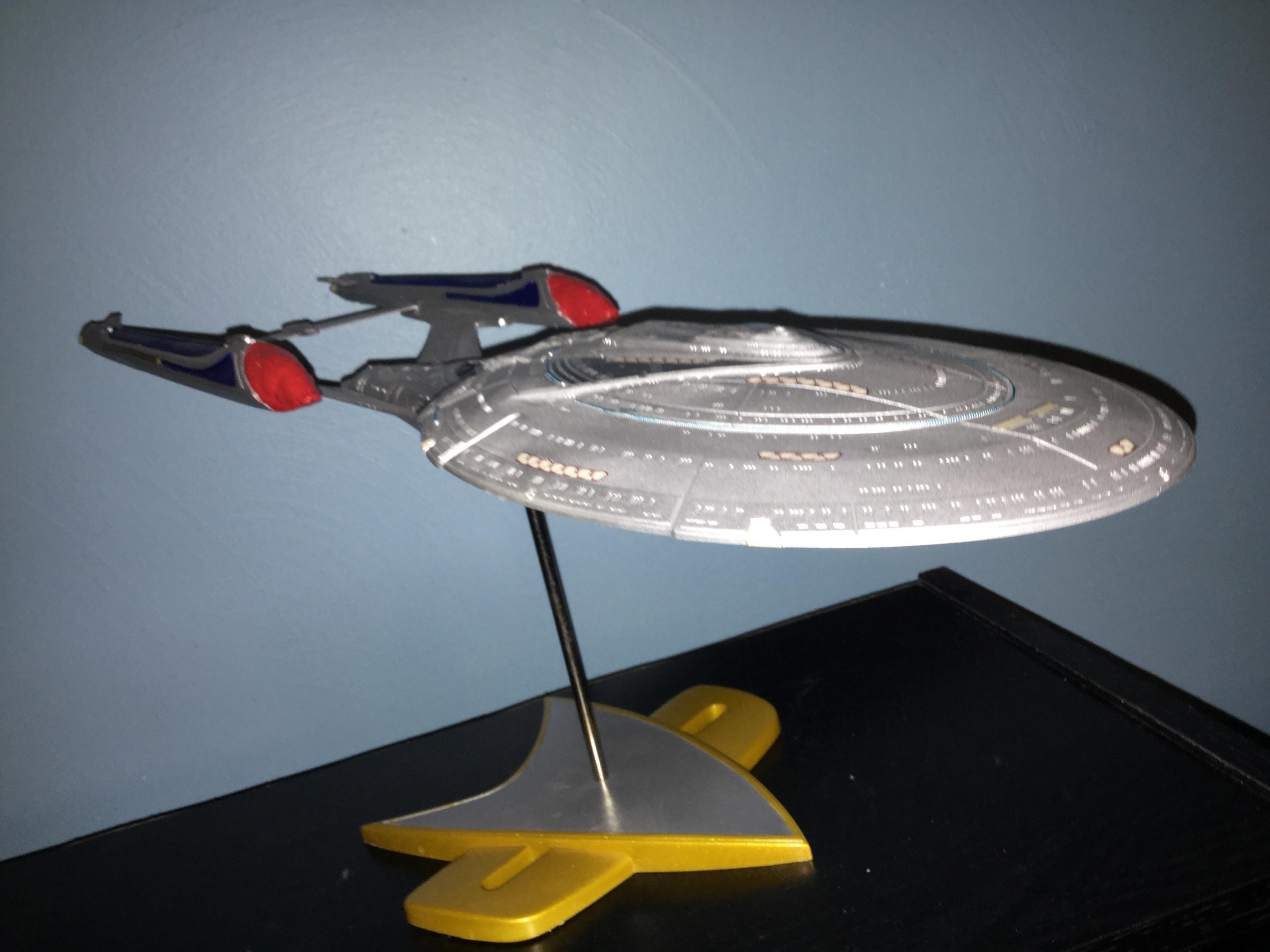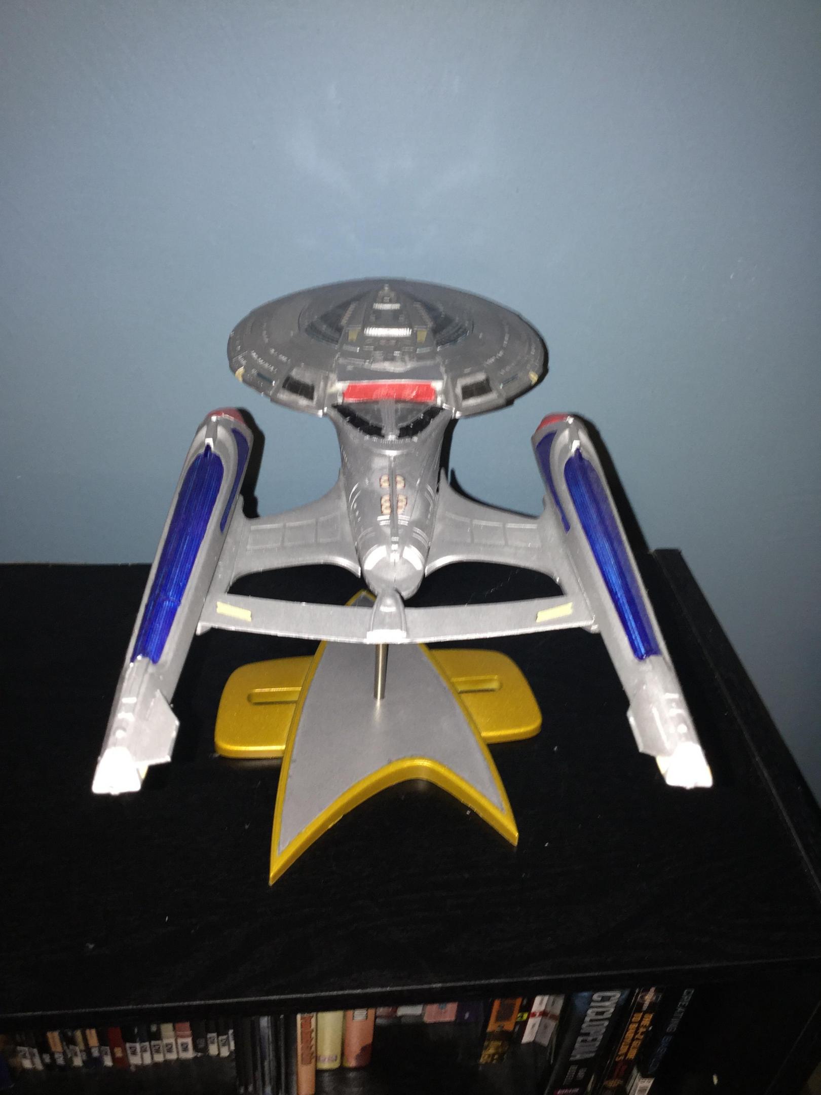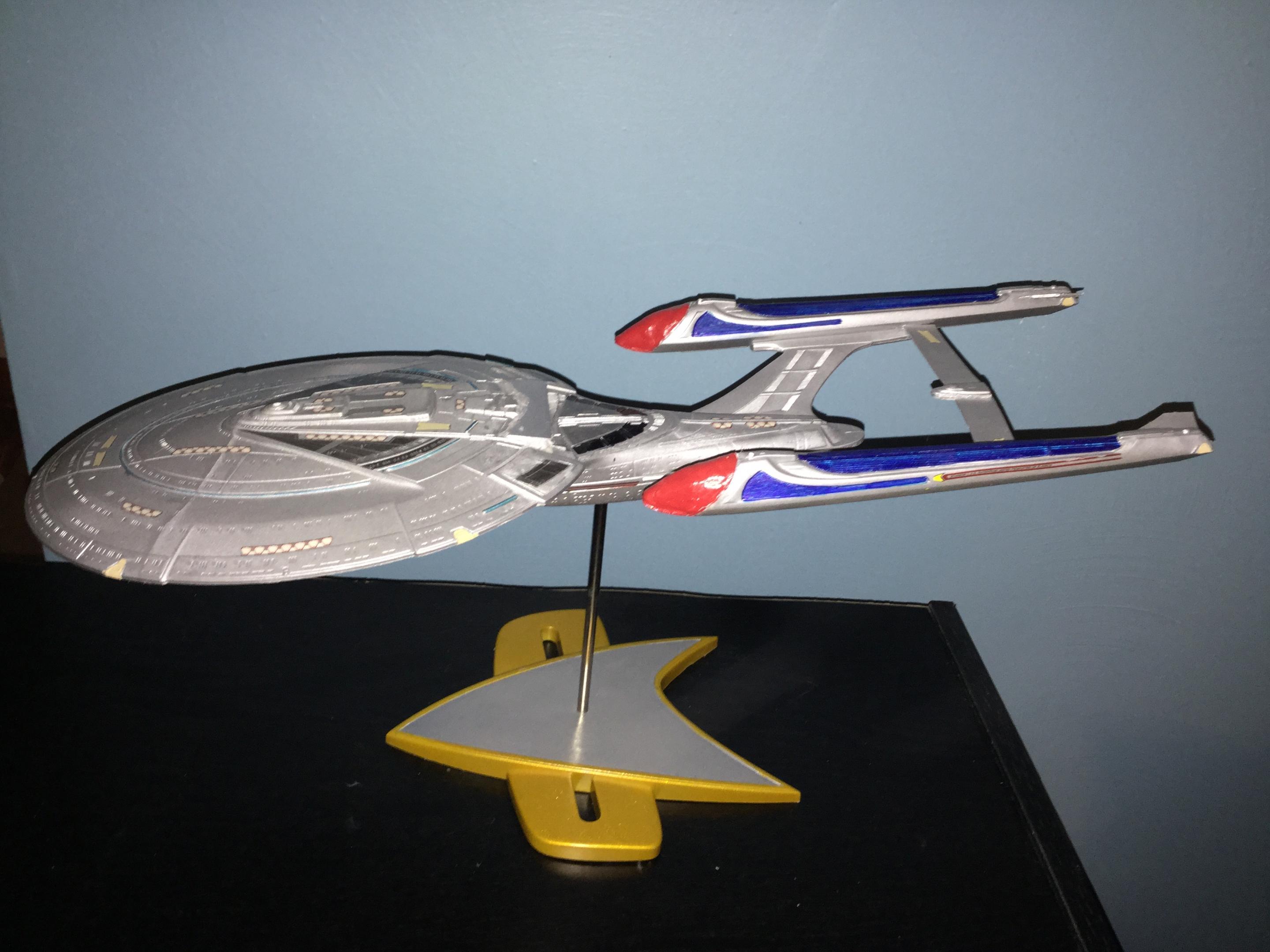 i decided to make a sovereign class variant that takes elements from the on screen design one of the production concepts and one of the star trek online sovereign class variants i did the phaser strips blue like how the uss titan's were in the season 1 finale of star trek lower decks i named it after nathan even's wellerman sea shanty which he released on 1/21/2021 and thats were the registry number came from i did not have any decals to make the name and registry numbers for it plus there are some trek ships with no visible name and registry numbers and with this being in universe a expermental variant design for a new subclass variant for the sovereign class designed for exploration not combat like the main sovereign classes were designed for no visible name and registry number is fine as once it gets commissioned it will recive that and the nx will be changed to ncc