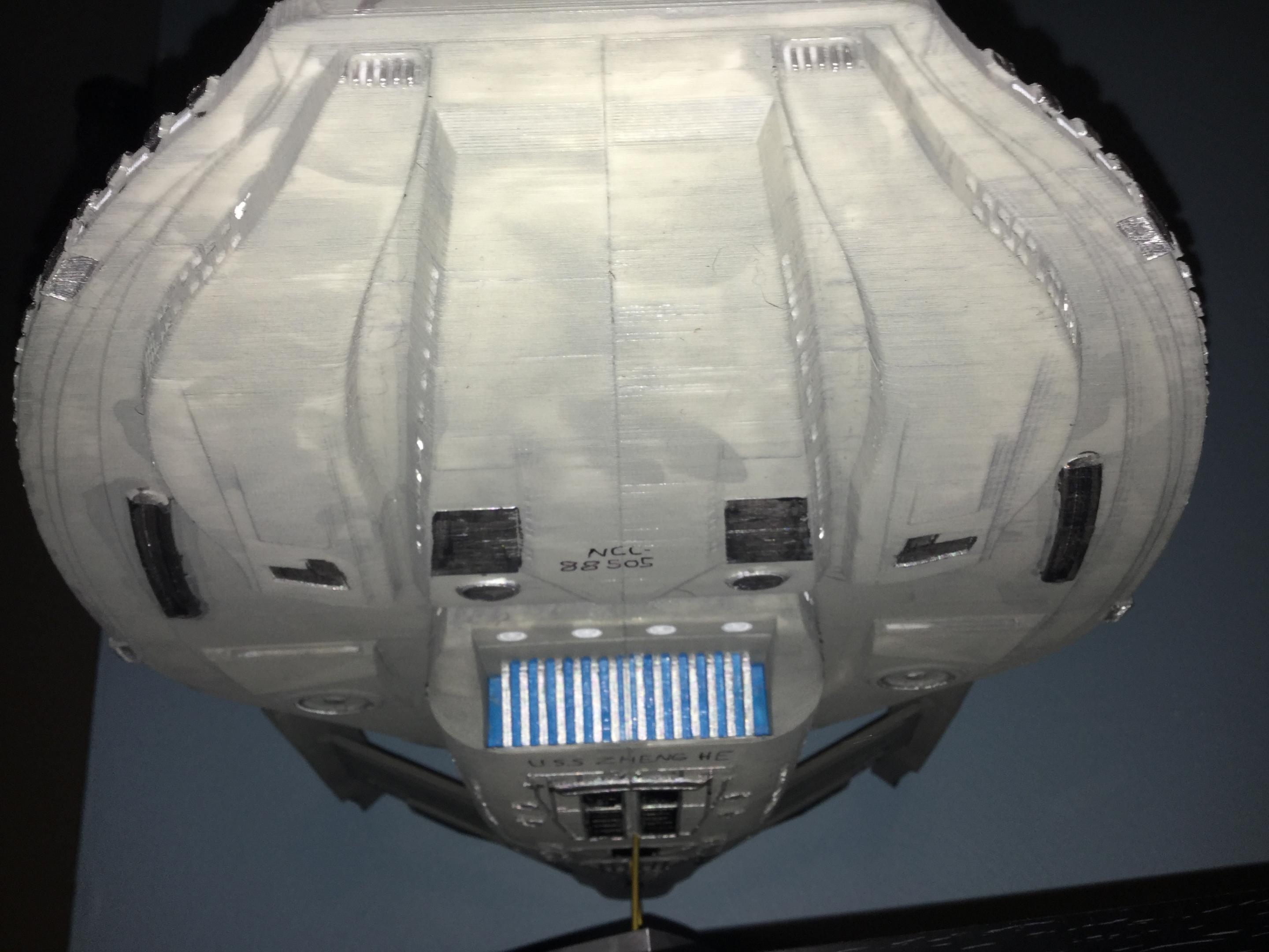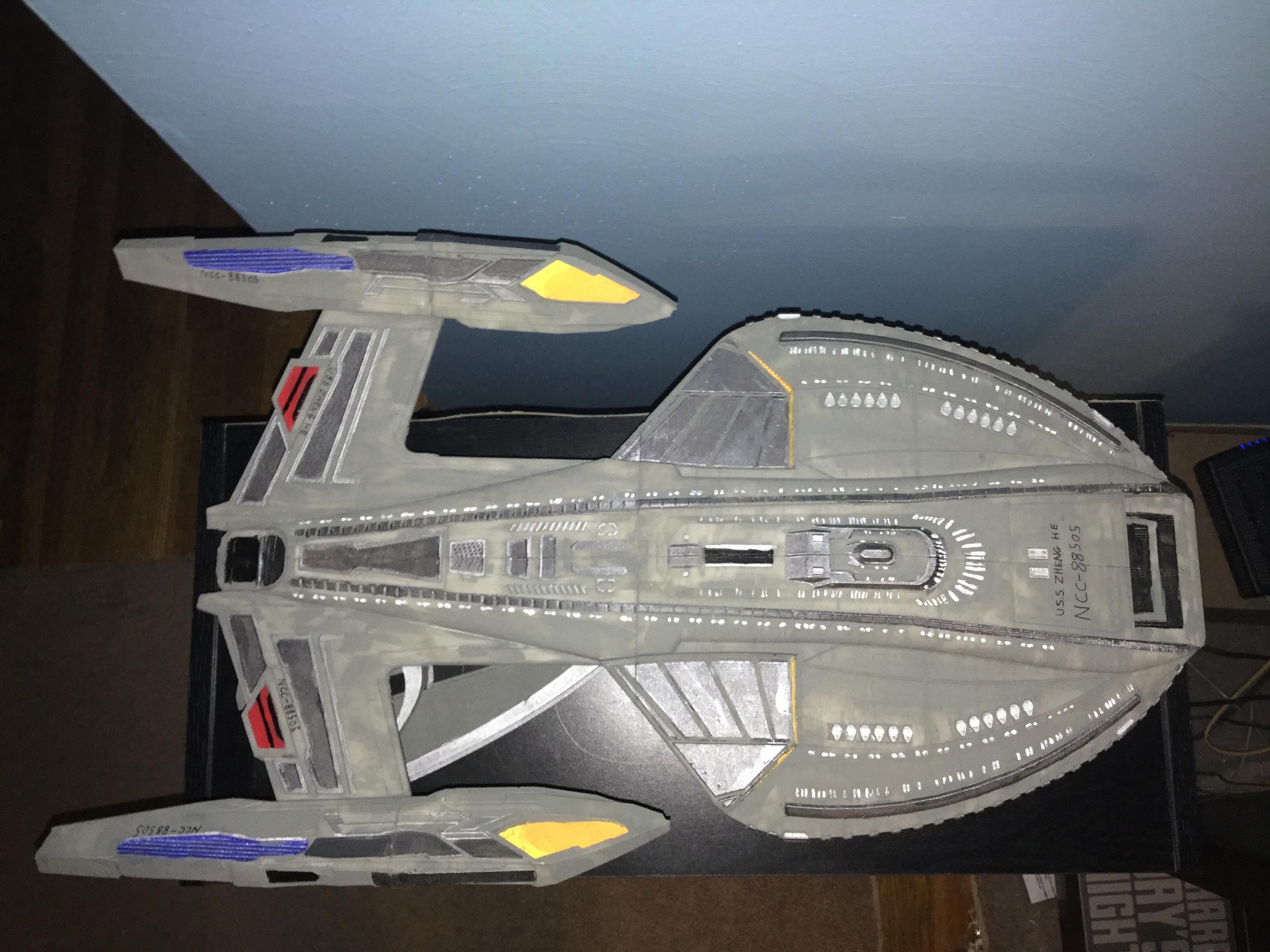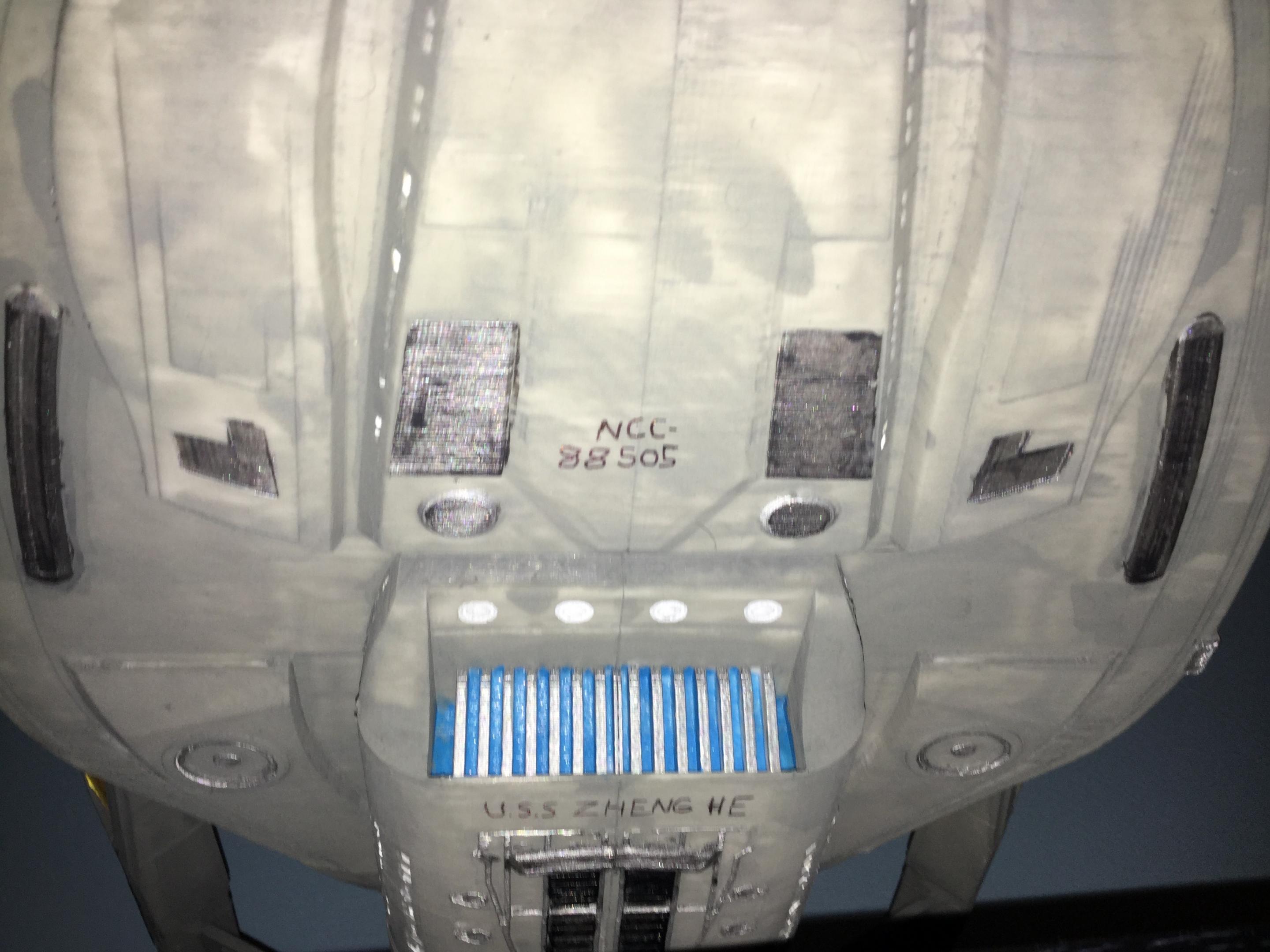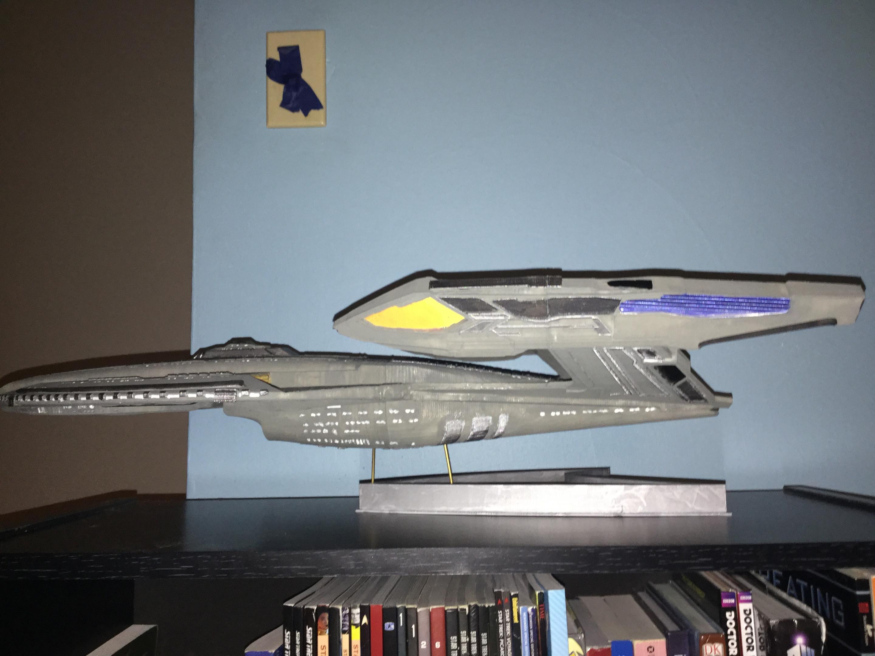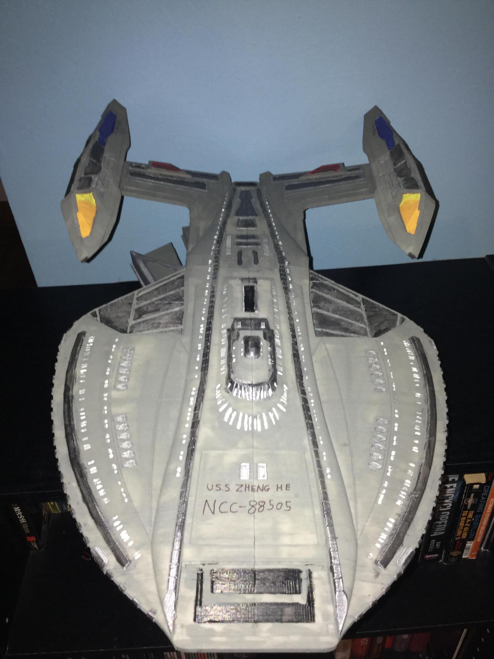 this is 24 inches long inquiry class 3d printed model kit "Right now I'm on the bridge of the toughest, fastest, most powerful ship Starfleet ever put into service." In 2399, the Zheng He was commanded by Acting Captain William T. Riker at the head of a fleet of ships tasked to help defend Coppelius from Zhat Vash forces.