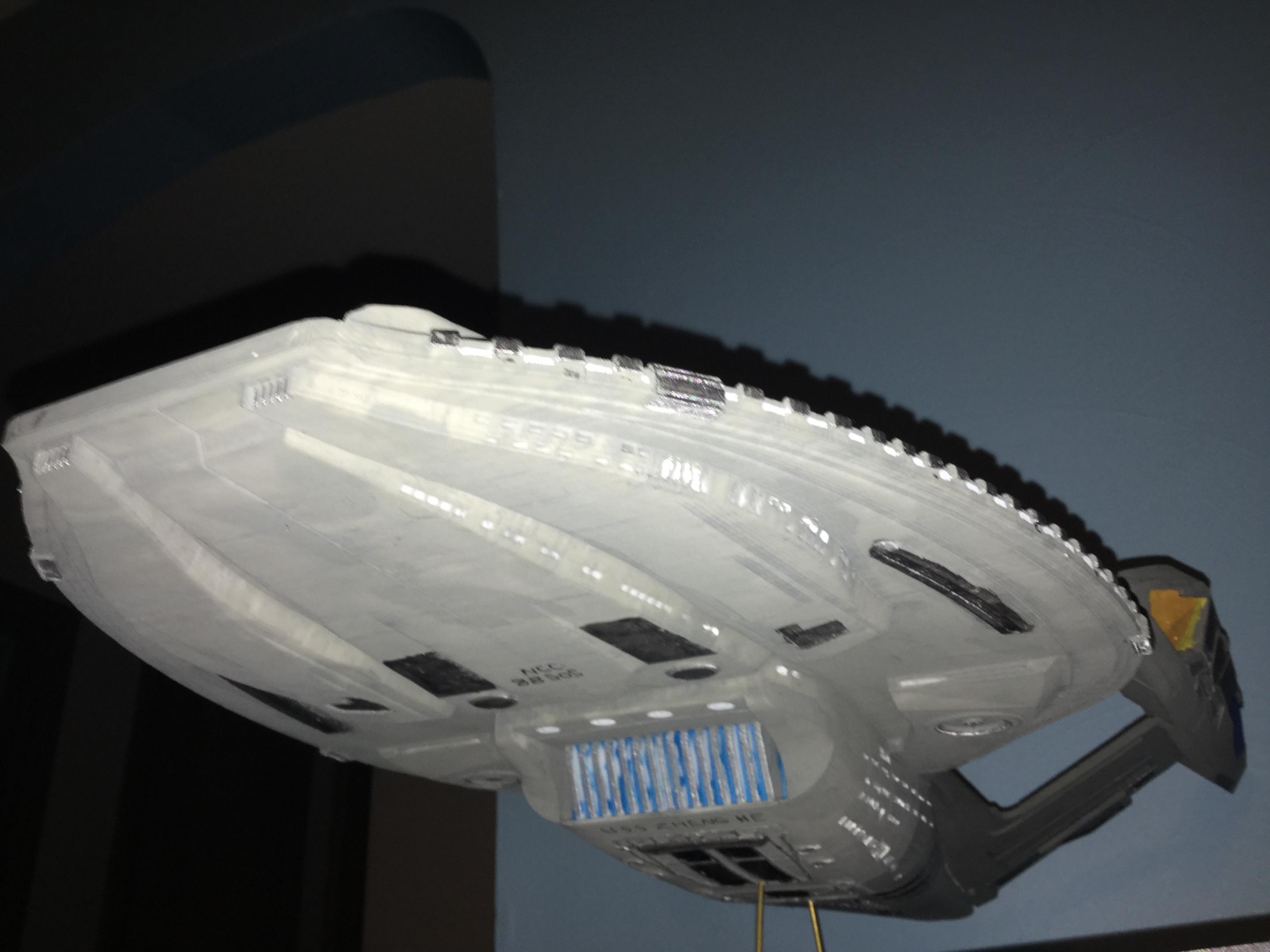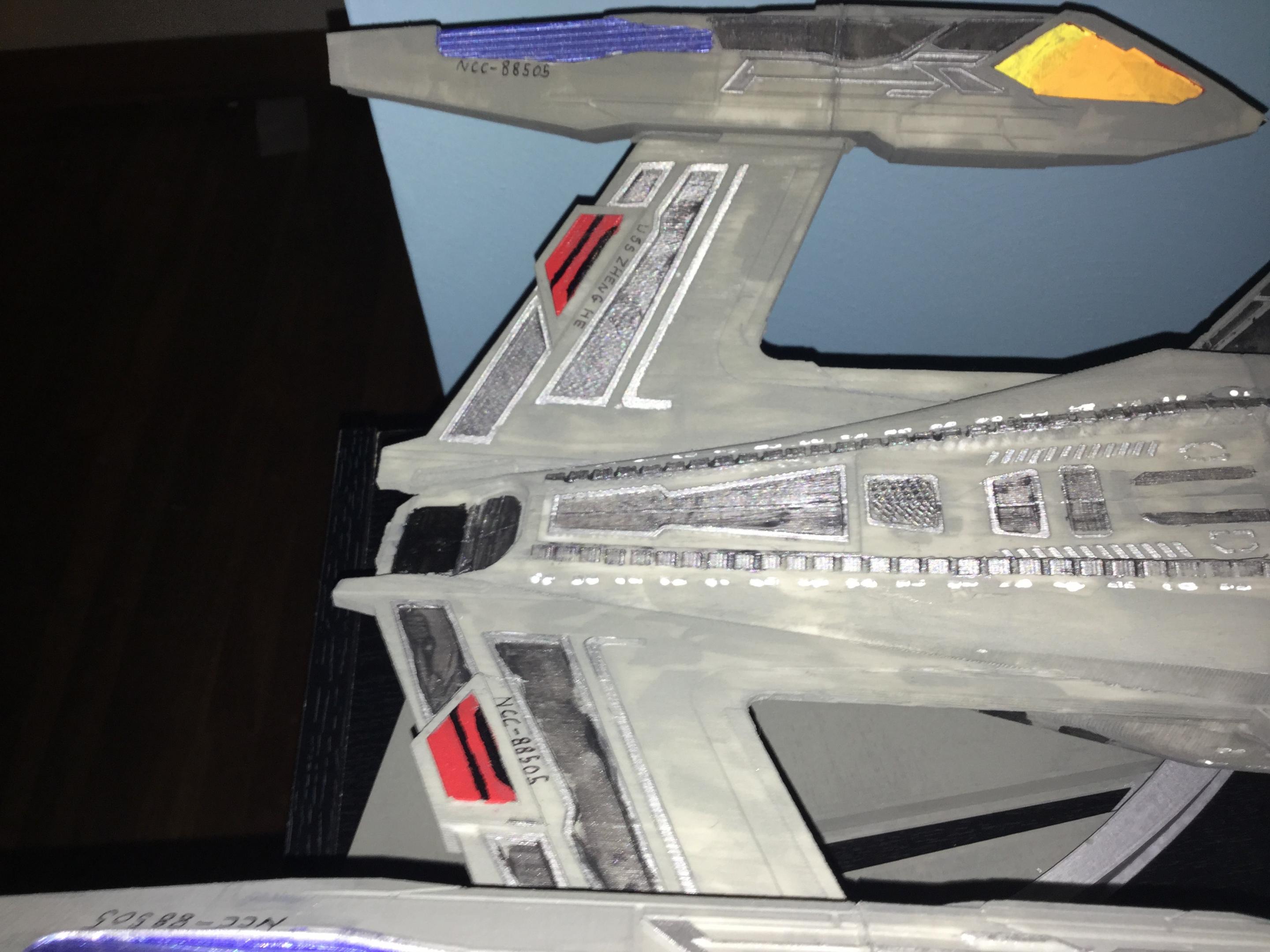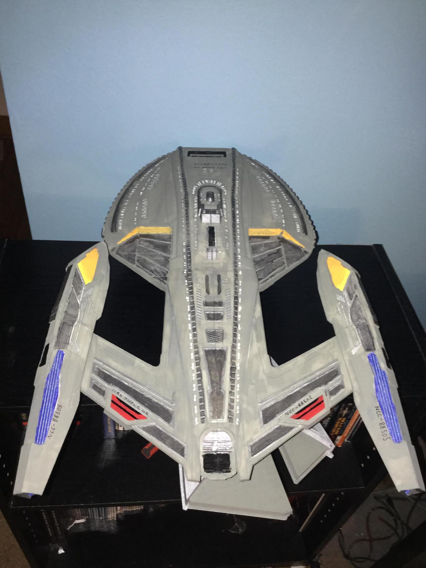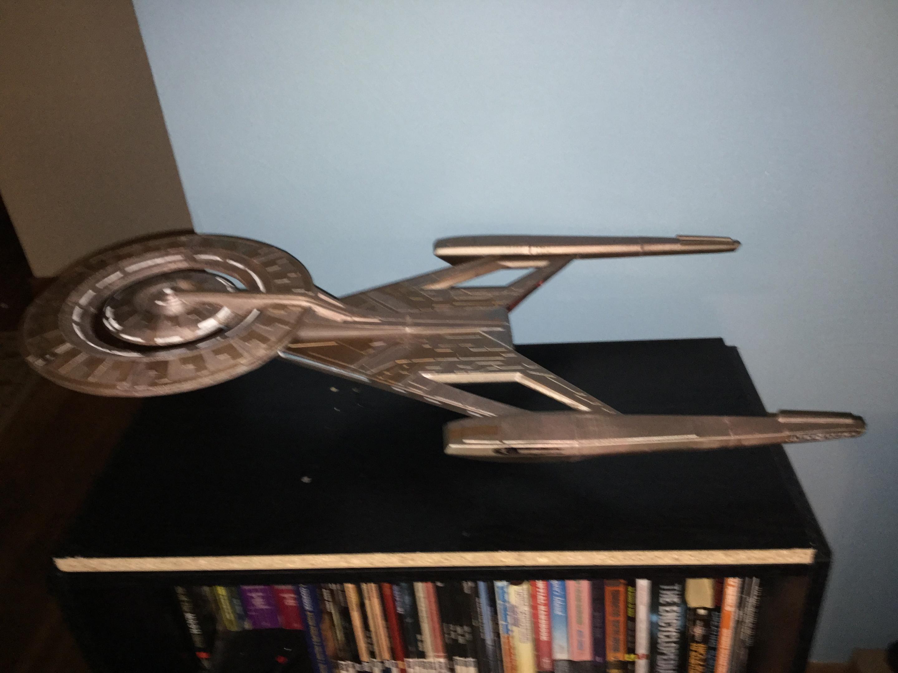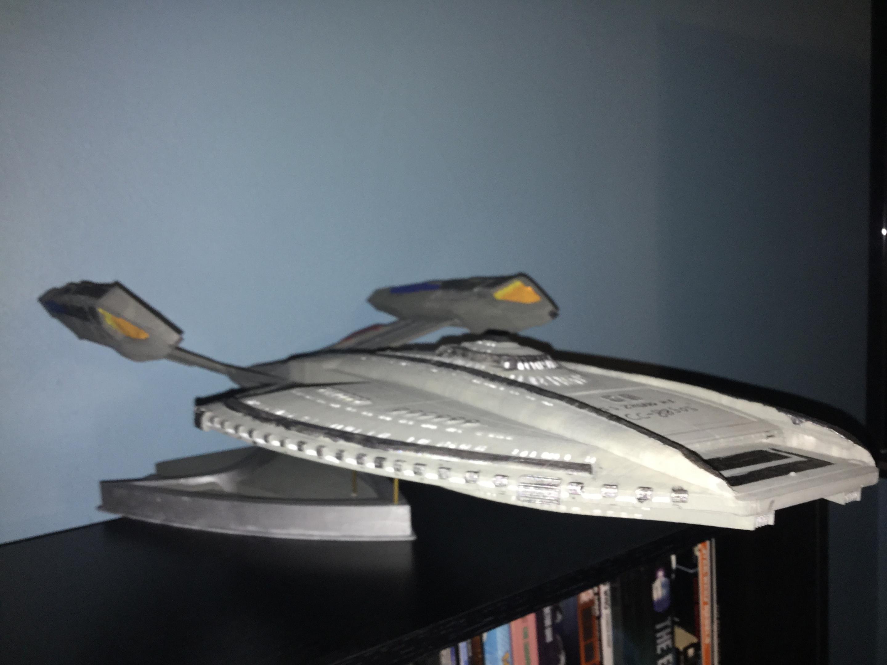 this is 24 inches long inquiry class 3d printed model kit "Right now I'm on the bridge of the toughest, fastest, most powerful ship Starfleet ever put into service." In 2399, the Zheng He was commanded by Acting Captain William T. Riker at the head of a fleet of ships tasked to help defend Coppelius from Zhat Vash forces.