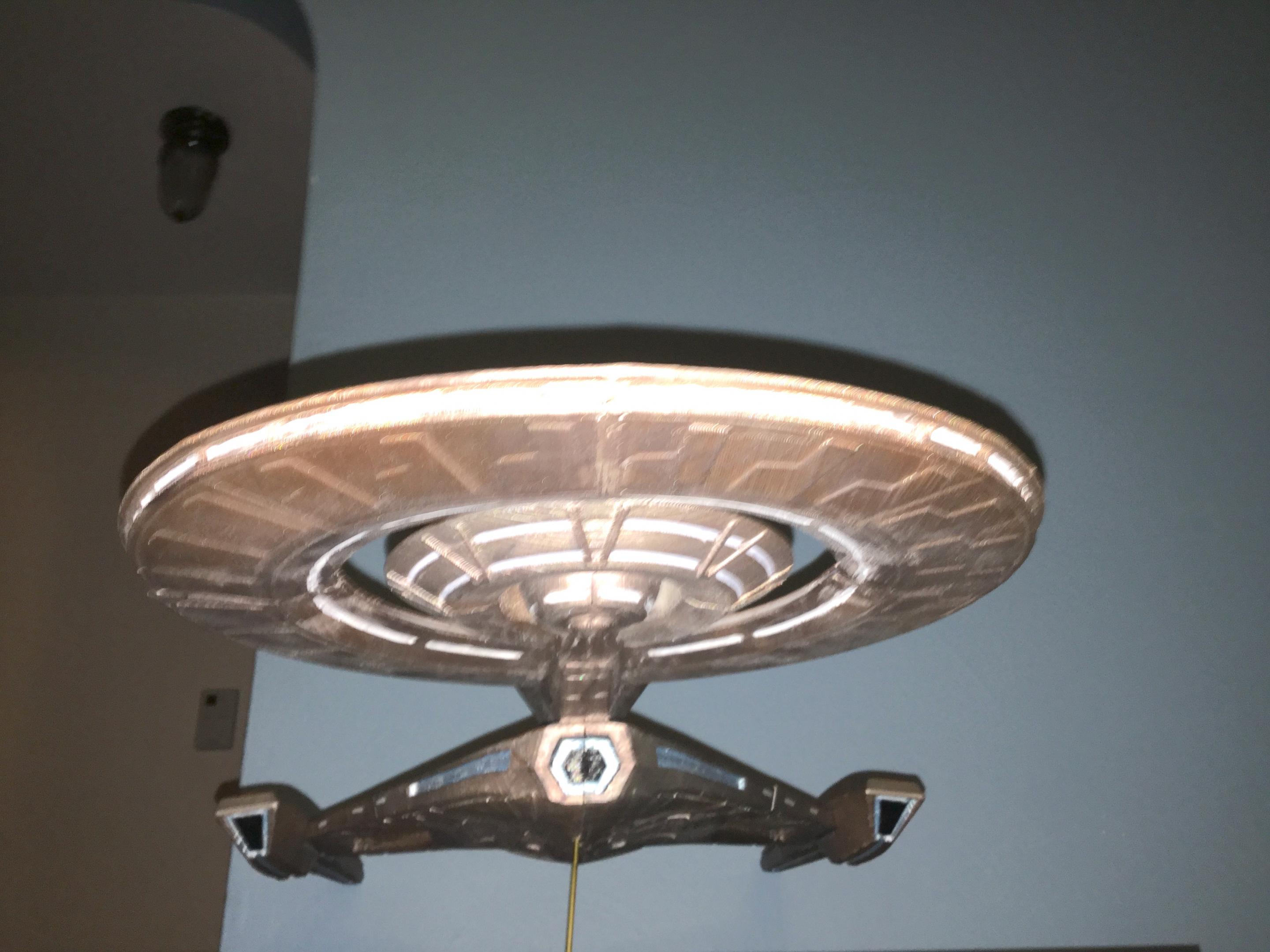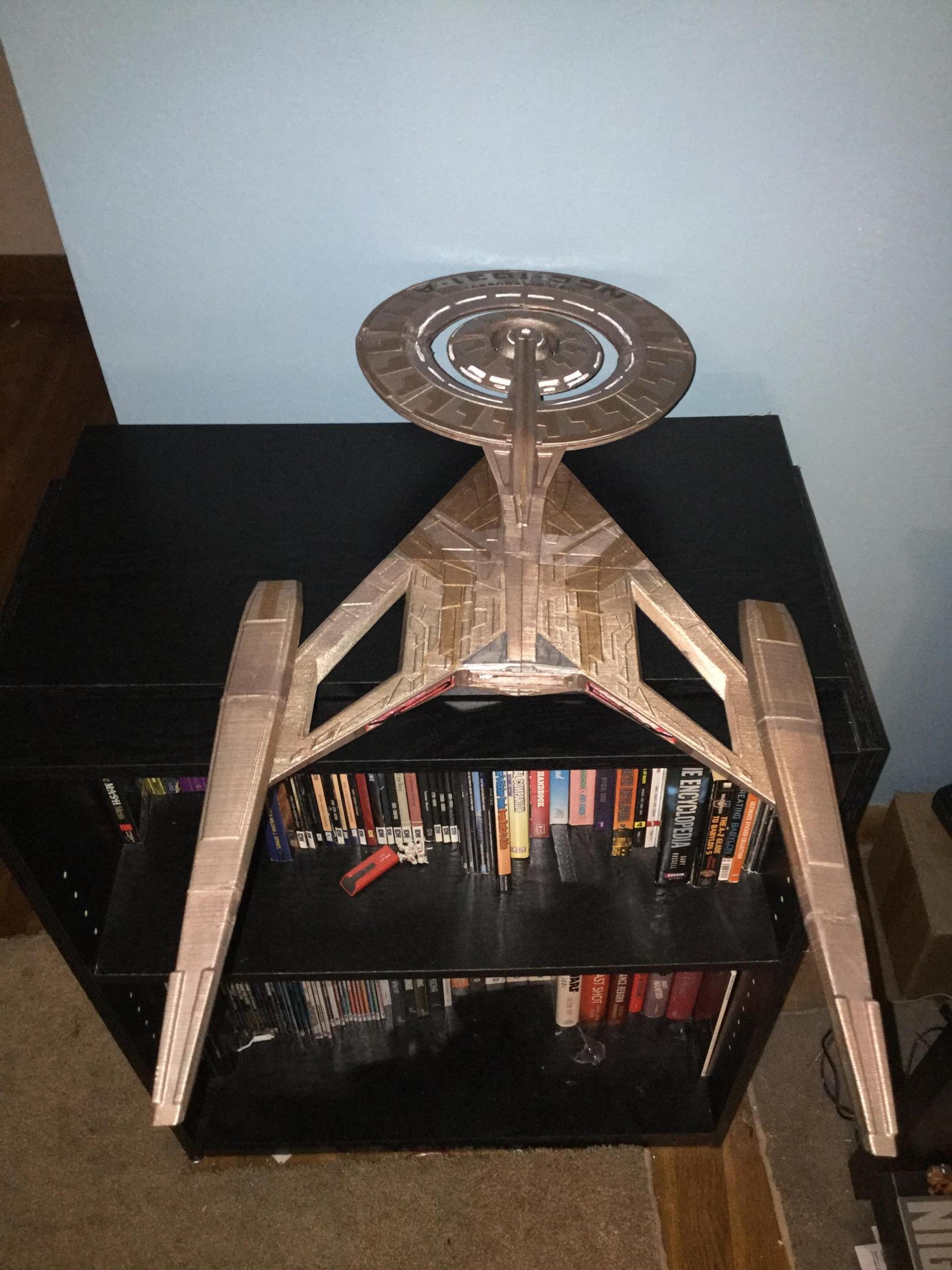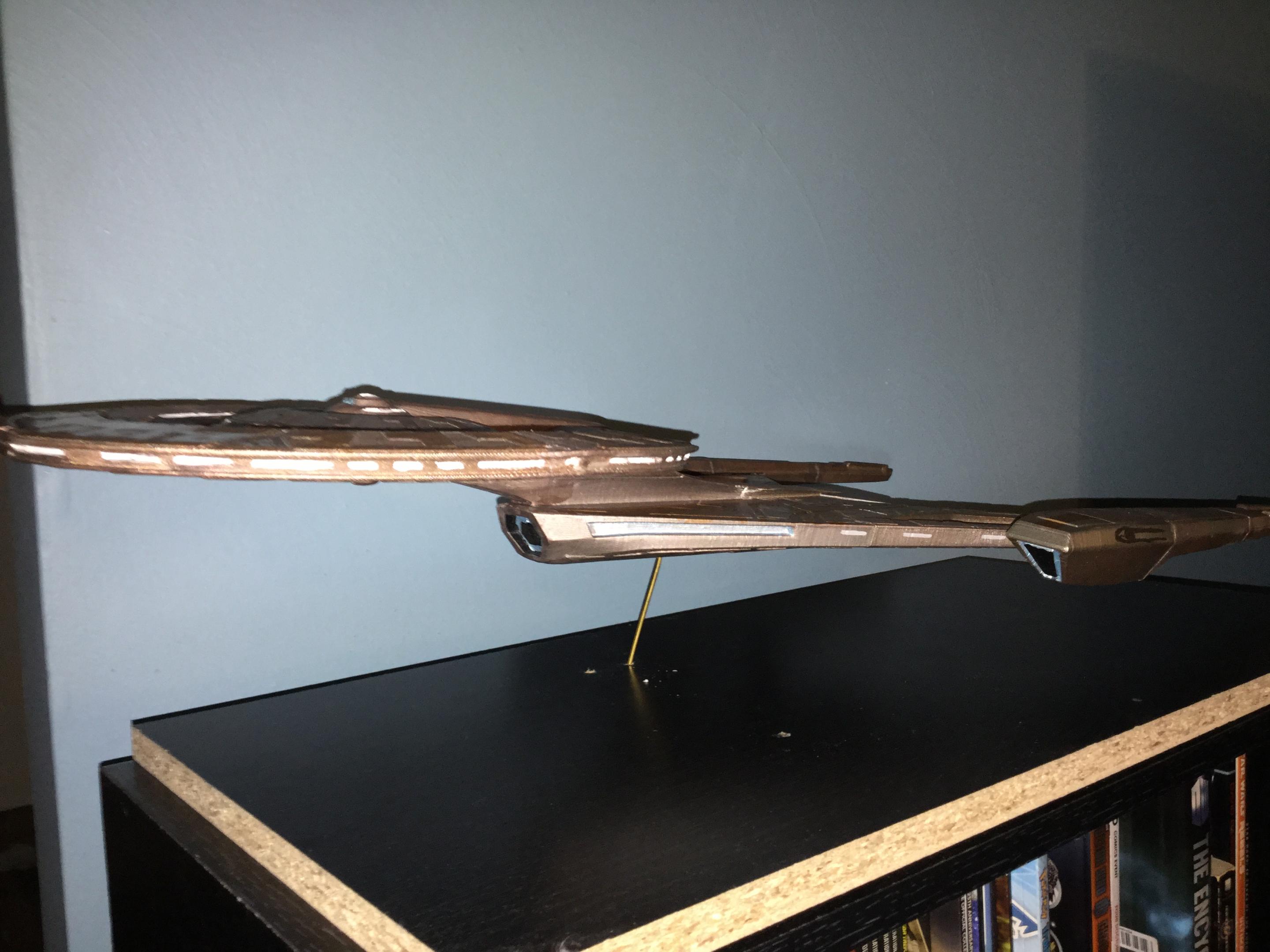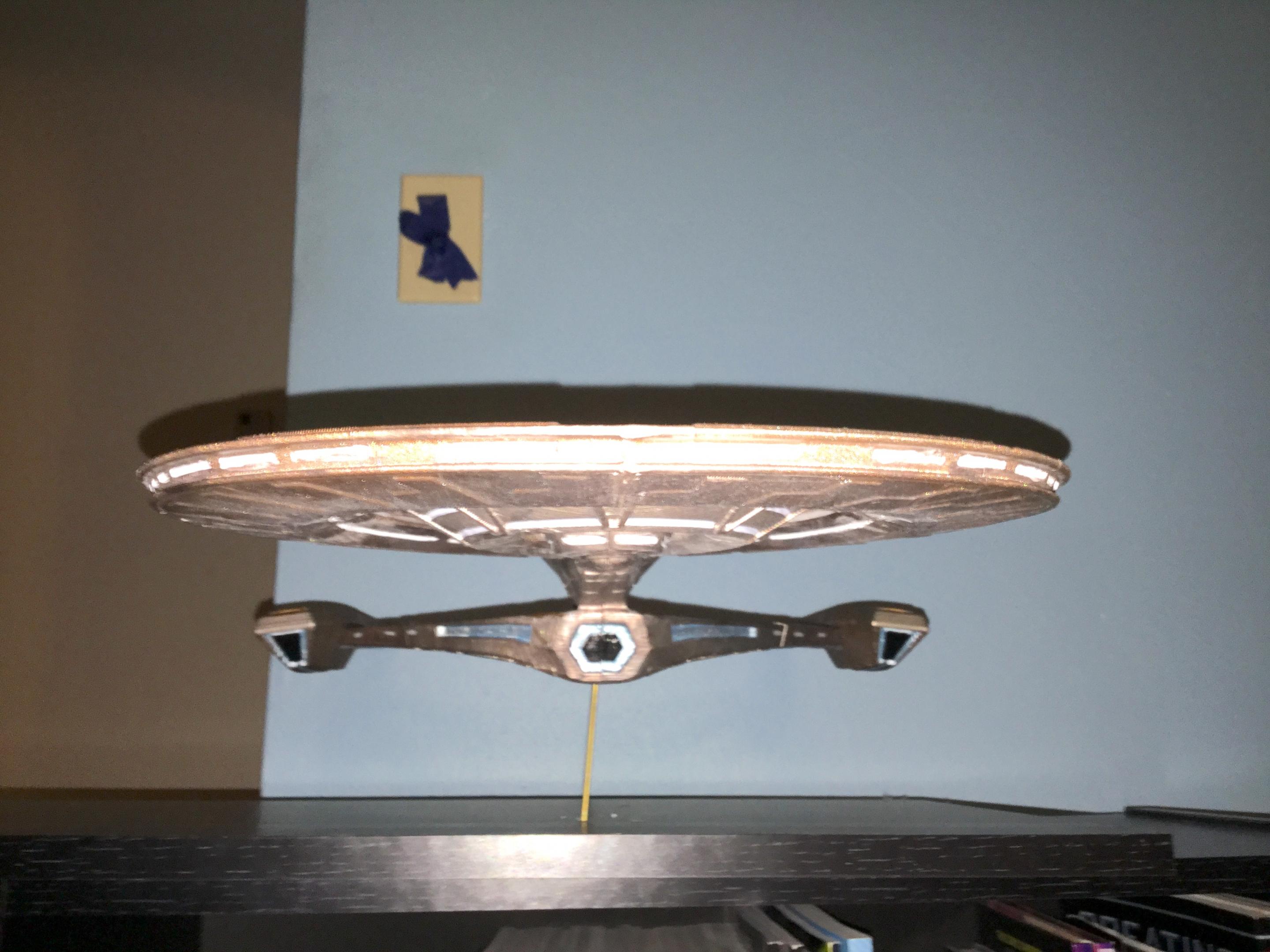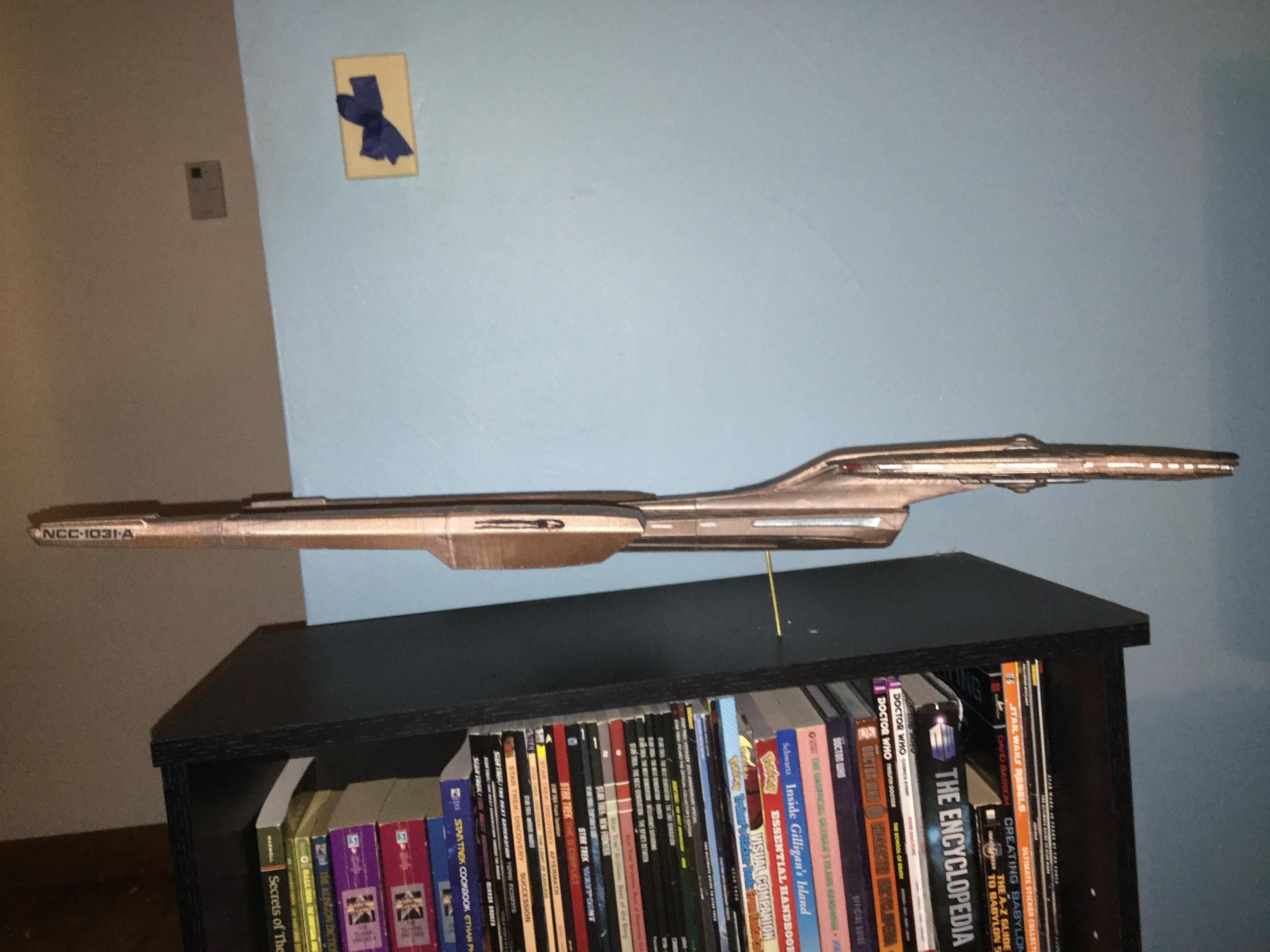 this is a 30 inch long 3d printed kit of the 32nd century refit of the uss discovery ncc-1031 in the year 3188 the ship recived a major refit to it's exterior hull with programable matter and interior systems to bring this 23rd century starship in line with the current tech of holographic and programable matter computer control interfaces instead of the 23rd century computer interface tech of tactile touch screens and buttons