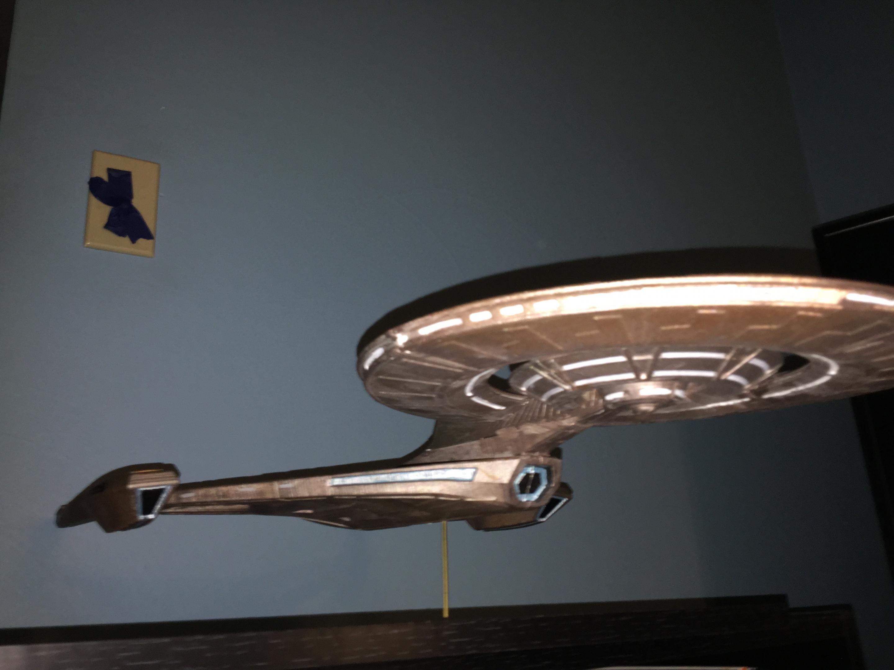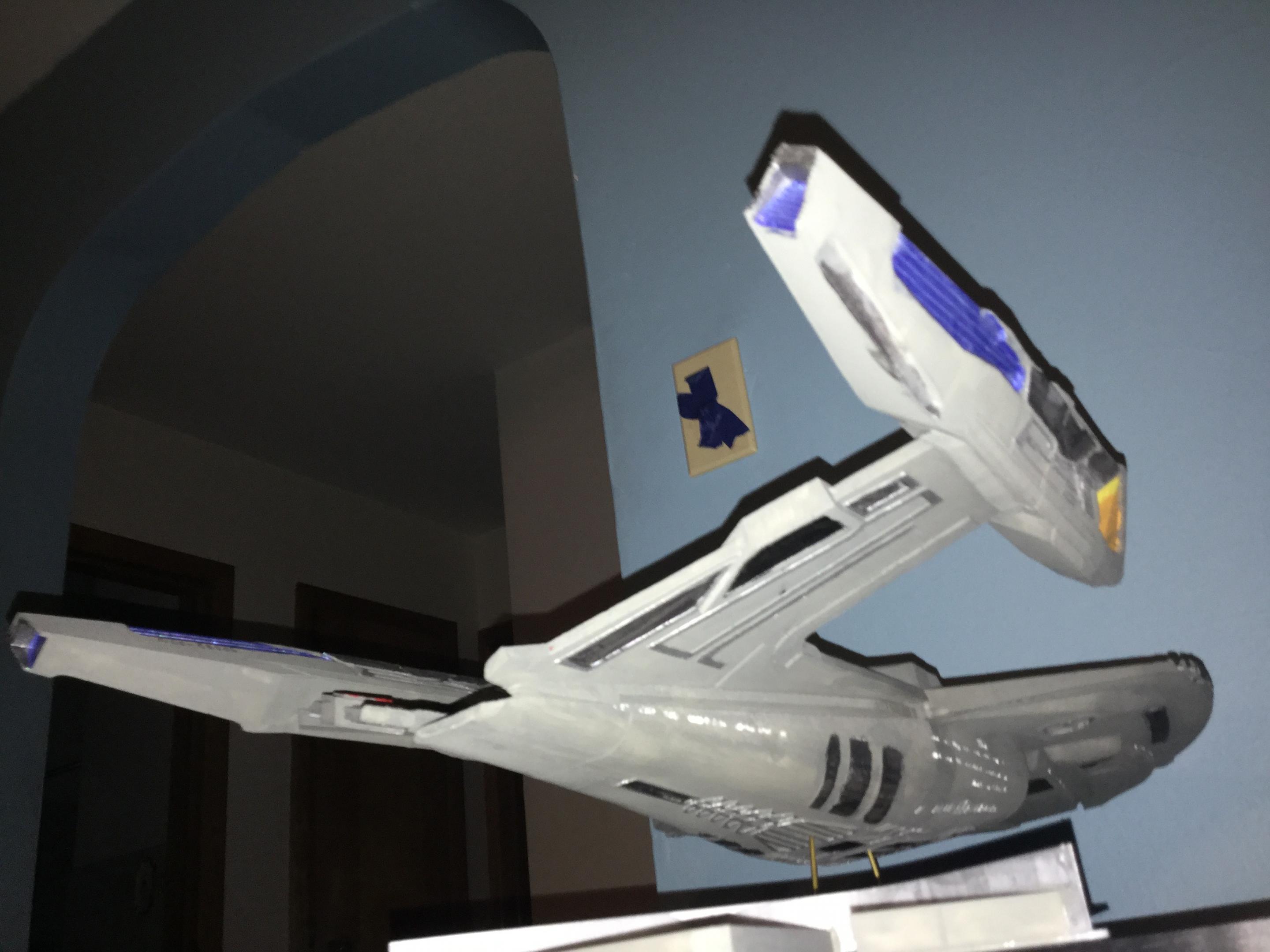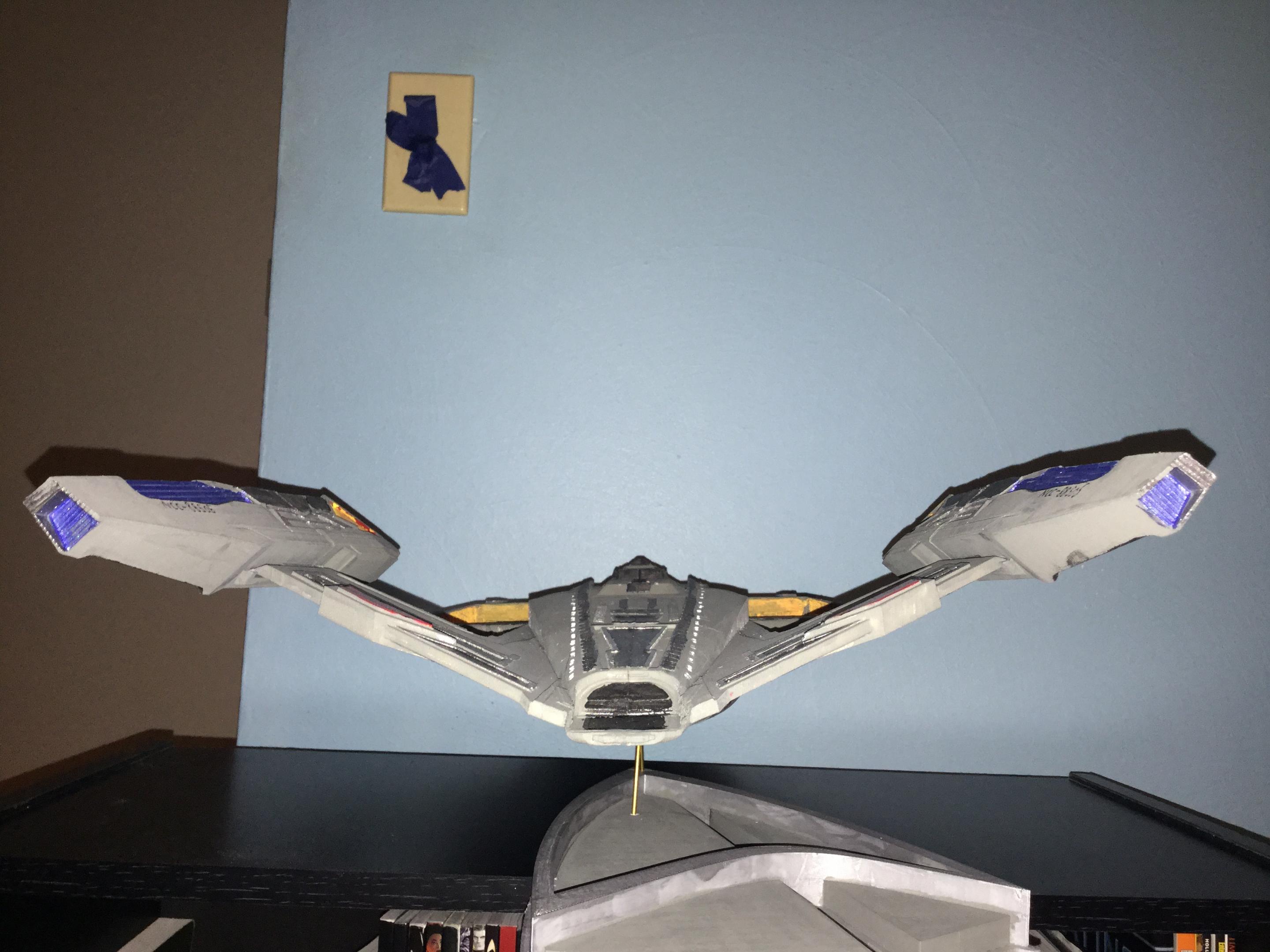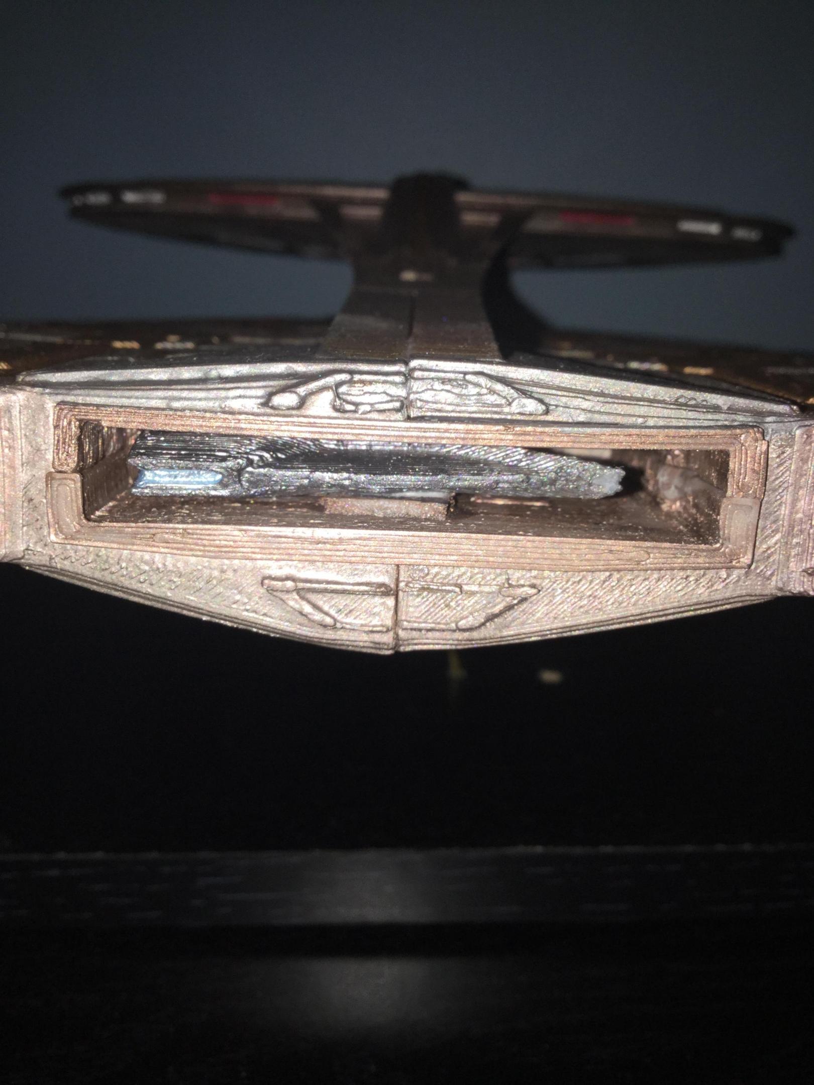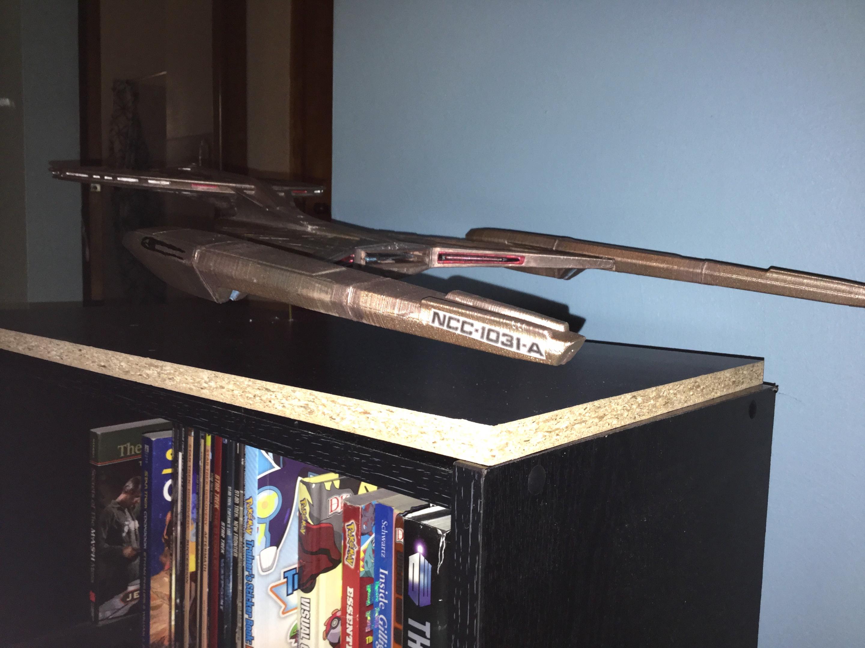 this is a 30 inch long 3d printed kit of the 32nd century refit of the uss discovery ncc-1031 in the year 3188 the ship recived a major refit to it's exterior hull with programable matter and interior systems to bring this 23rd century starship in line with the current tech of holographic and programable matter computer control interfaces instead of the 23rd century computer interface tech of tactile touch screens and buttons