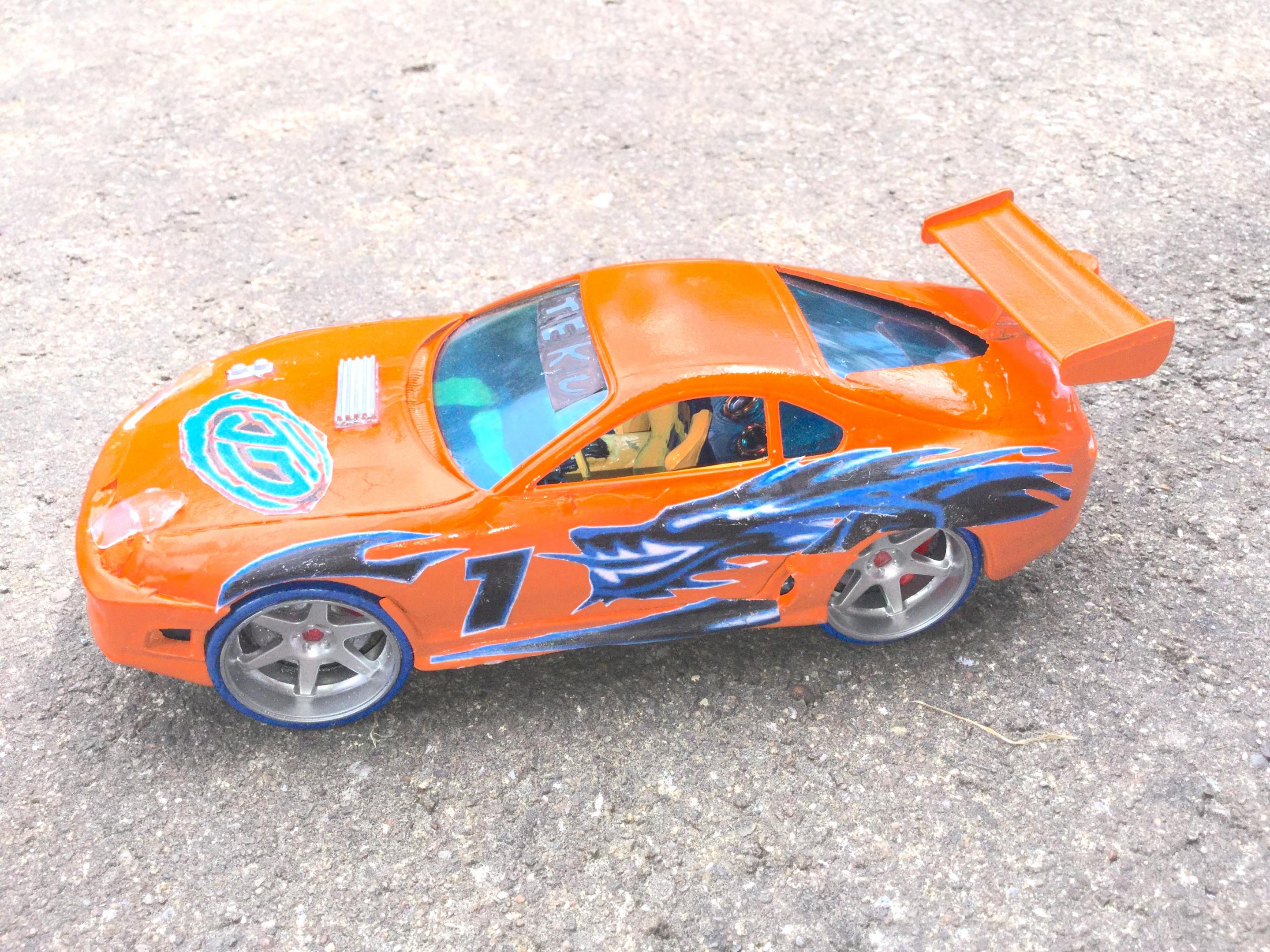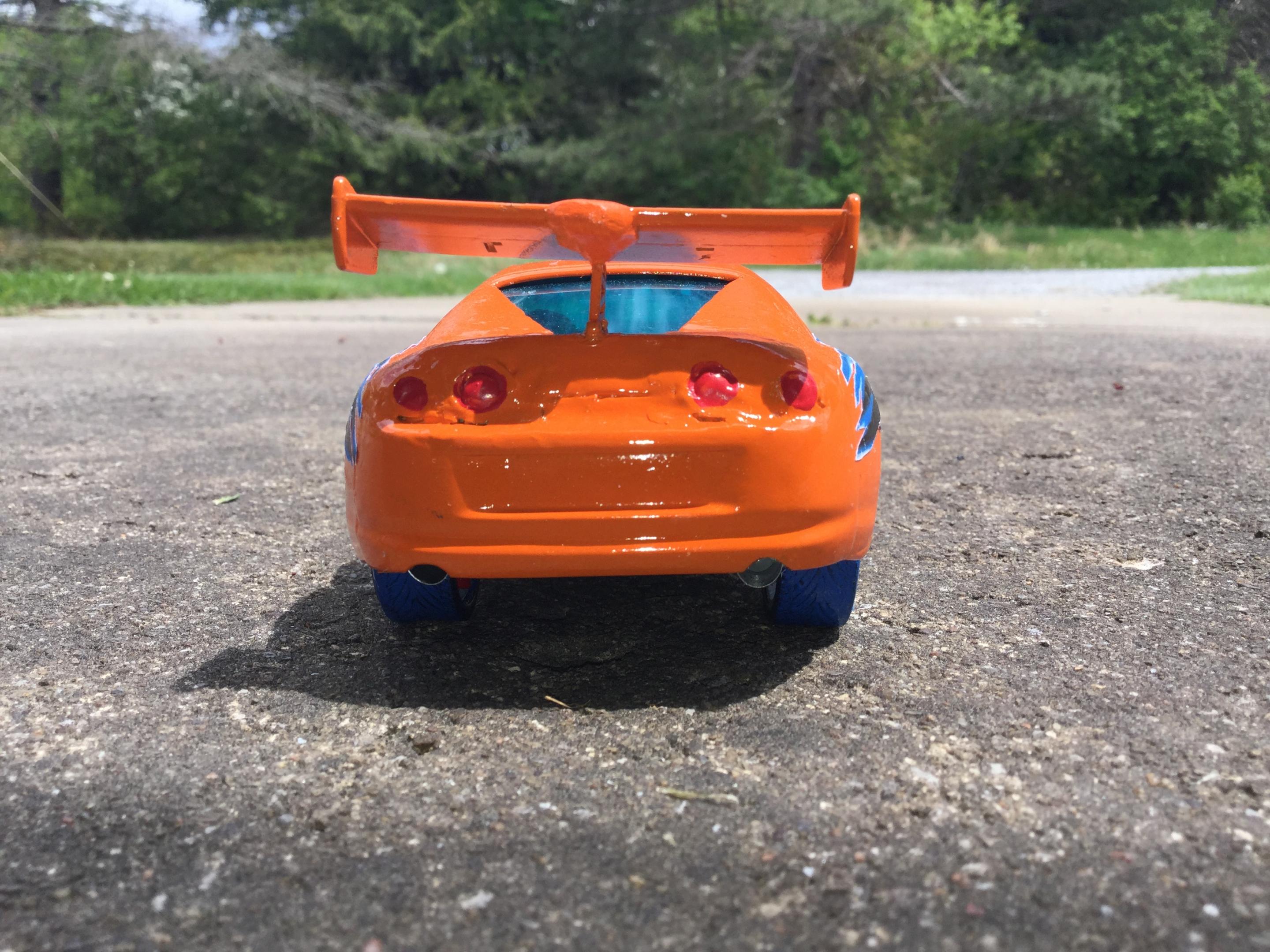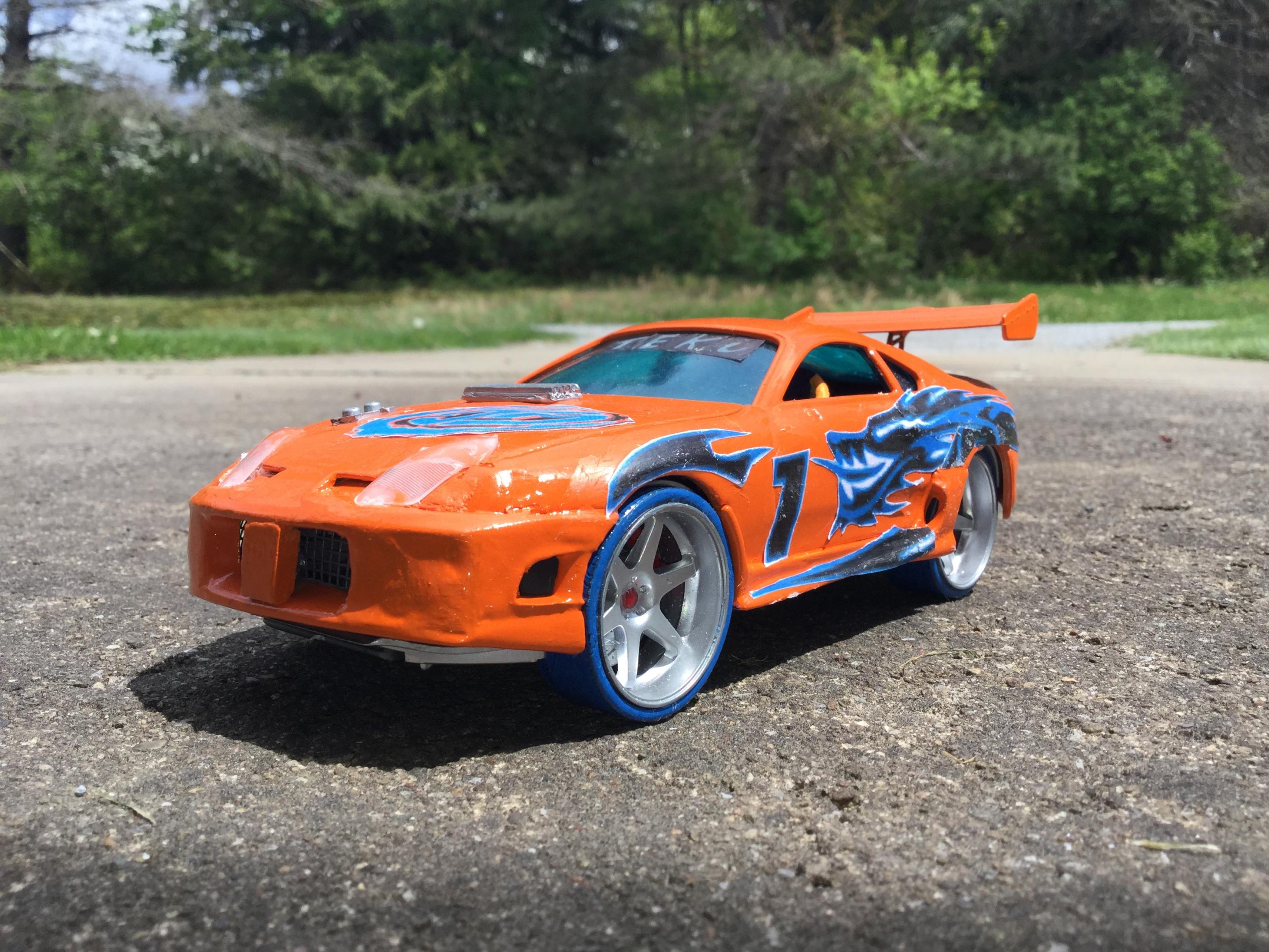 this is a replica of a hot wheels acceleracers car i made from parts i had in my parts boxes synkro is the the car driven by the teku street racing team leader nolo pasaro till it is destroyed in the metro realm in the second film speed of silence the movie cars specifications 500 HP Fuel injected Twin-Turbo Rotary Engine 7-speed transmission Carbon Fiber body with Aluminum Monocoque chassis 20" WR2 Series Y Wheels with 35 series rubber Carbon Fiber racing brakes 3 subwoofers 3 tweeterS Speakers Jump Jets Neon Underglow Top speed: 273 mph