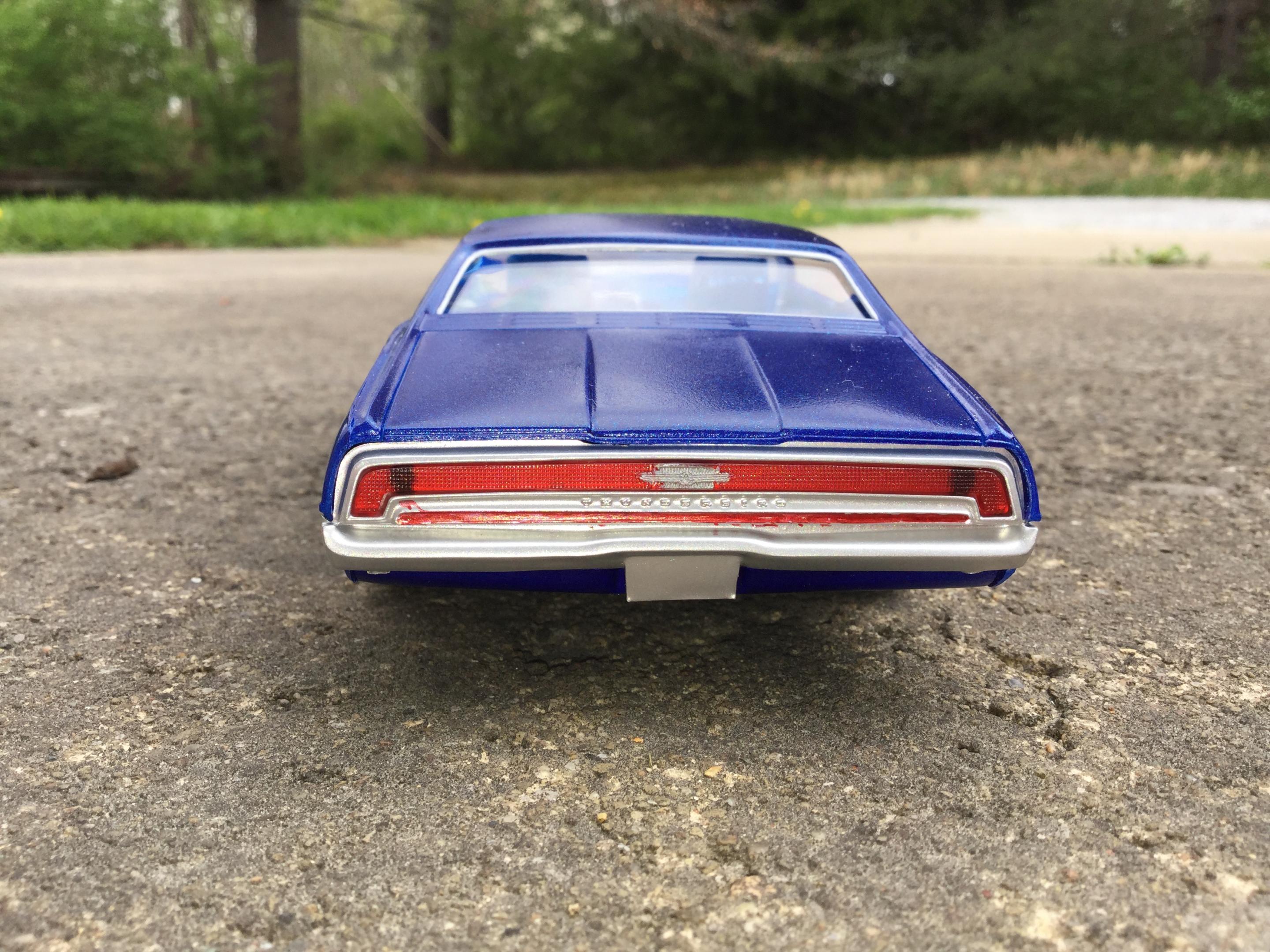 i pieced this together from a broken body that was missing most of the parts the roof in rough shape so that was the reason i chose to make a convertible i also had to use putty to fill in the ends of the top sides of the front quarter panels that were cut away had to trackdown grille tail lights for it and used a 68 dart dash and front and back bumpers and rear trunk peice between the tail lights and chassis and suspension wheel backs, tire and rims and exhast system the hood is from hart parts resin the engine and convertible boot came from my parts boxs