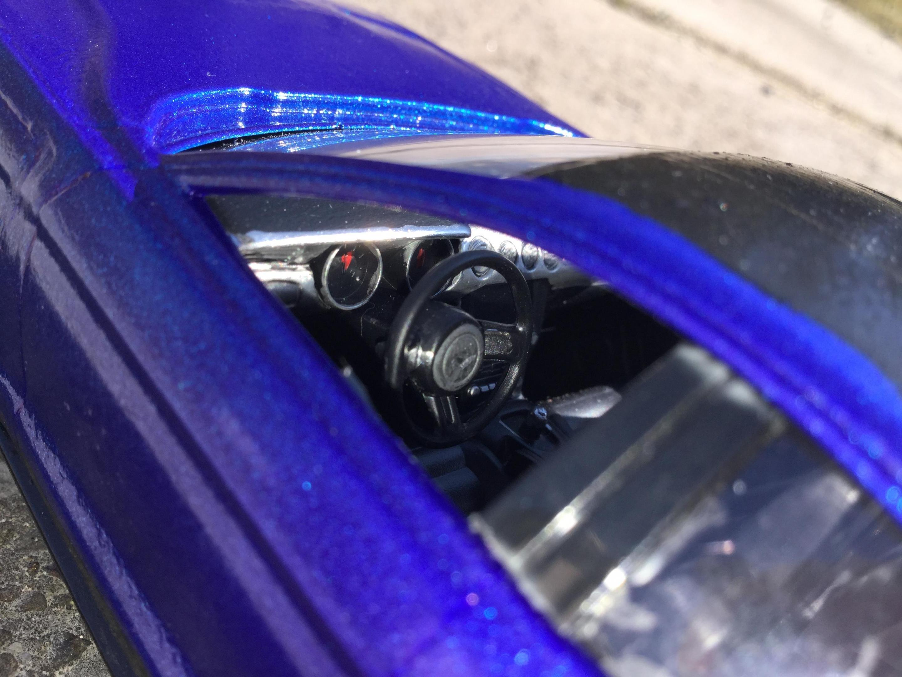 i acually painted all the parts and glued together all the sub assemblies for this model last year right before the weather got bad i finally got around to putting the rest of it together yesterday i wish there was a engine for it but it was missing when i pulled out the box from the cupboard i had it stored in so i am not sure if i used it in something else or if i never put it back in the box with the rest of the car when i finished the sub assemblies last year i painted the body testors extreme lacquer root beer and the interior i painted white i know i did a rim swap for the car last year cause i really did not want to use the rims that came with the kit the ones i used are from the revell 68 dart 2 in 1 kit