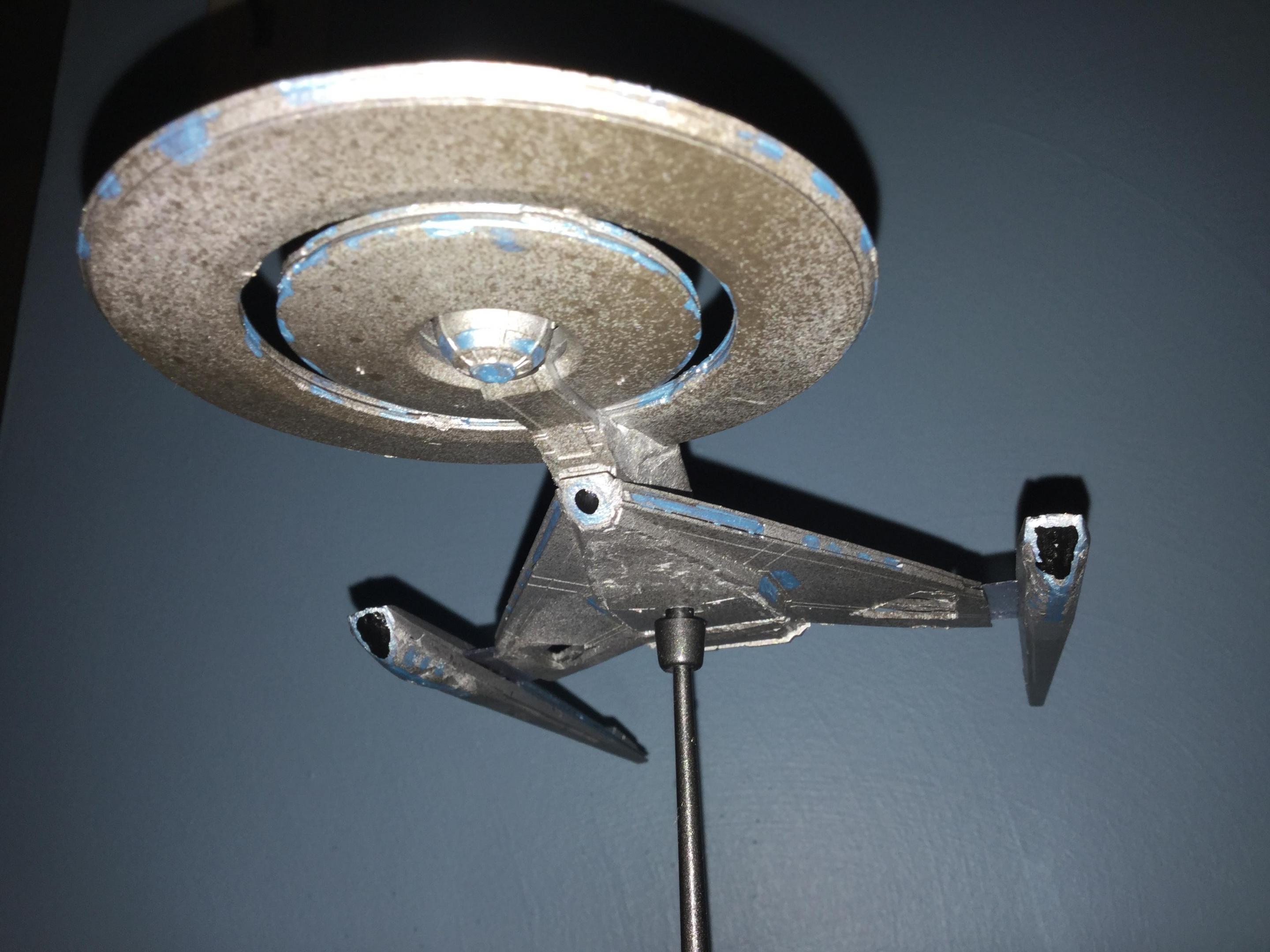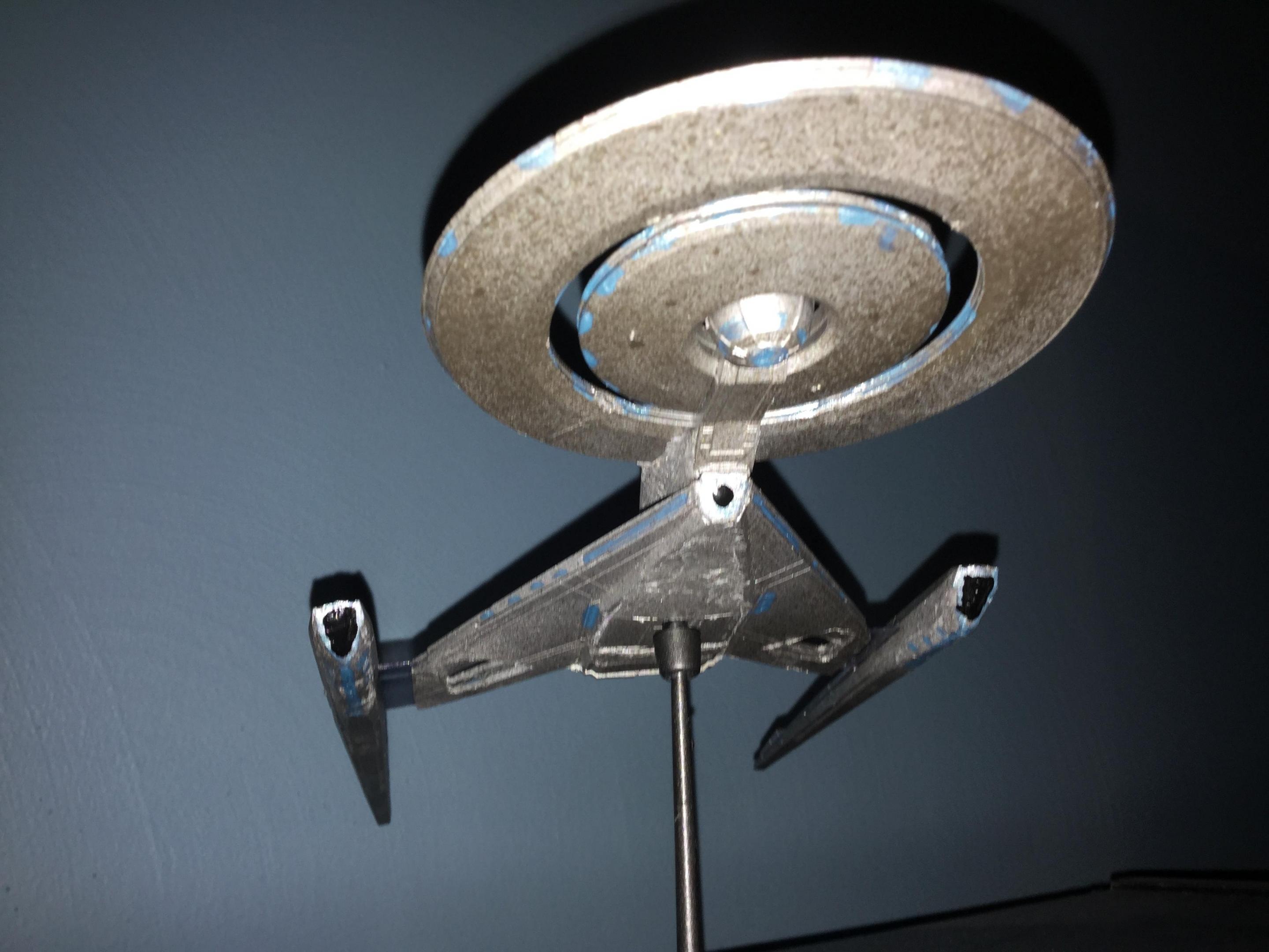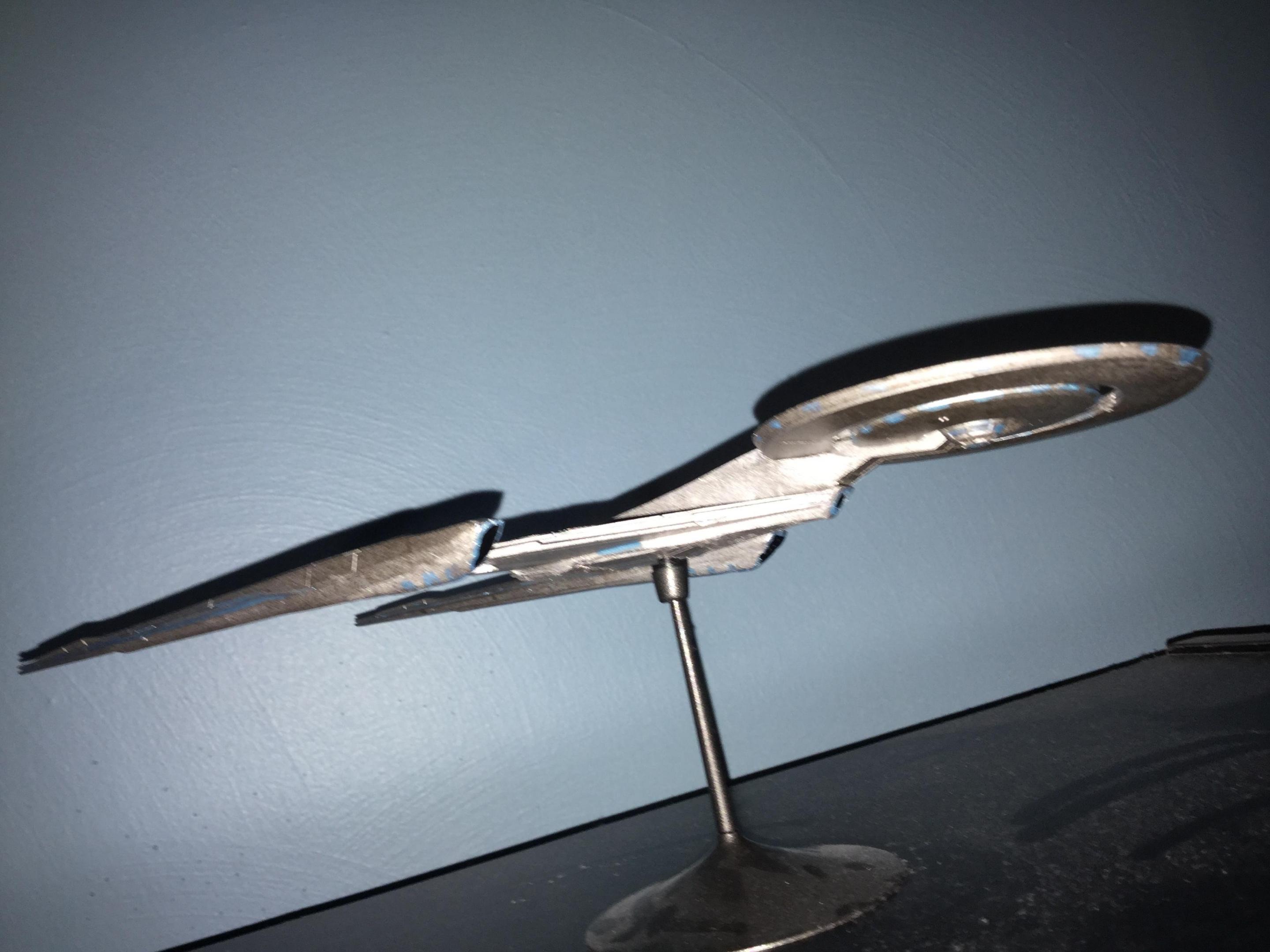 i moded a polar lights 1/2500 scale uss discovery ncc-1031 kit with some cutting some putty some scribing some some plastic to make the refited uss discovery ncc-1031-a so it is up to date with the late 32nd century starfleet in the year 3189 the reason the ship got the -A at the end of the regisrty number with this being only a refit is cause starfleet records show the uss discovery ncc-1031 was destroyed with all hands after the battle with control in the year 2258 and after the temporal wars in the early 31st century all time travel was baned and all devices and ships were destroyed and it was now fully illegal to time travel forward and backwards in time and instead of what starfleet records say happened to the ship and crew and capt pike and his crew on the enterprise and lt ash tyler only surviving section 31 officer left lied to the heads of starfleet during thier debriefing to hide the fact the ship and crew took the sphere data 930 years into the future so nothing like control a.i can happen agian so those are the two main reasons the discovery was given that -A cause as of the 32nd century the discovery and it's crew are all criminals for time traveling that starfleet and the federation are now harbouring and to keep up the pretense the discovery was destroyed and that is is a new ship with a new crew to the other groups who singed those temporal accords at the end of the temporal cold wars the ship now has programable matter intergrated into it's original computers and systems which now allow for detached nacelles that improves manuverbility and increased efficency in flight and since warp is limited to low warp speeds of warp 1 and 2 the discovery's spore drive makes the ship very valuble to starfleet as a rapid responder