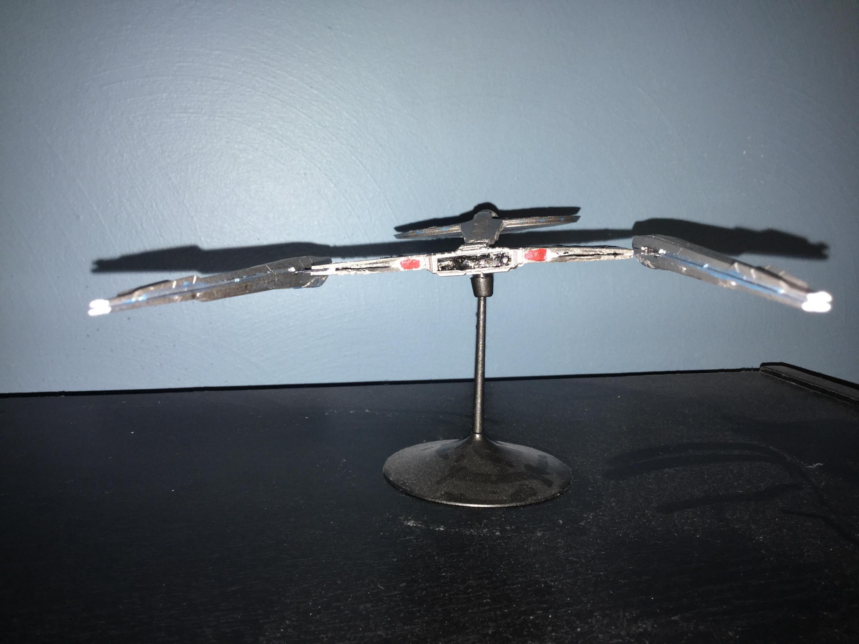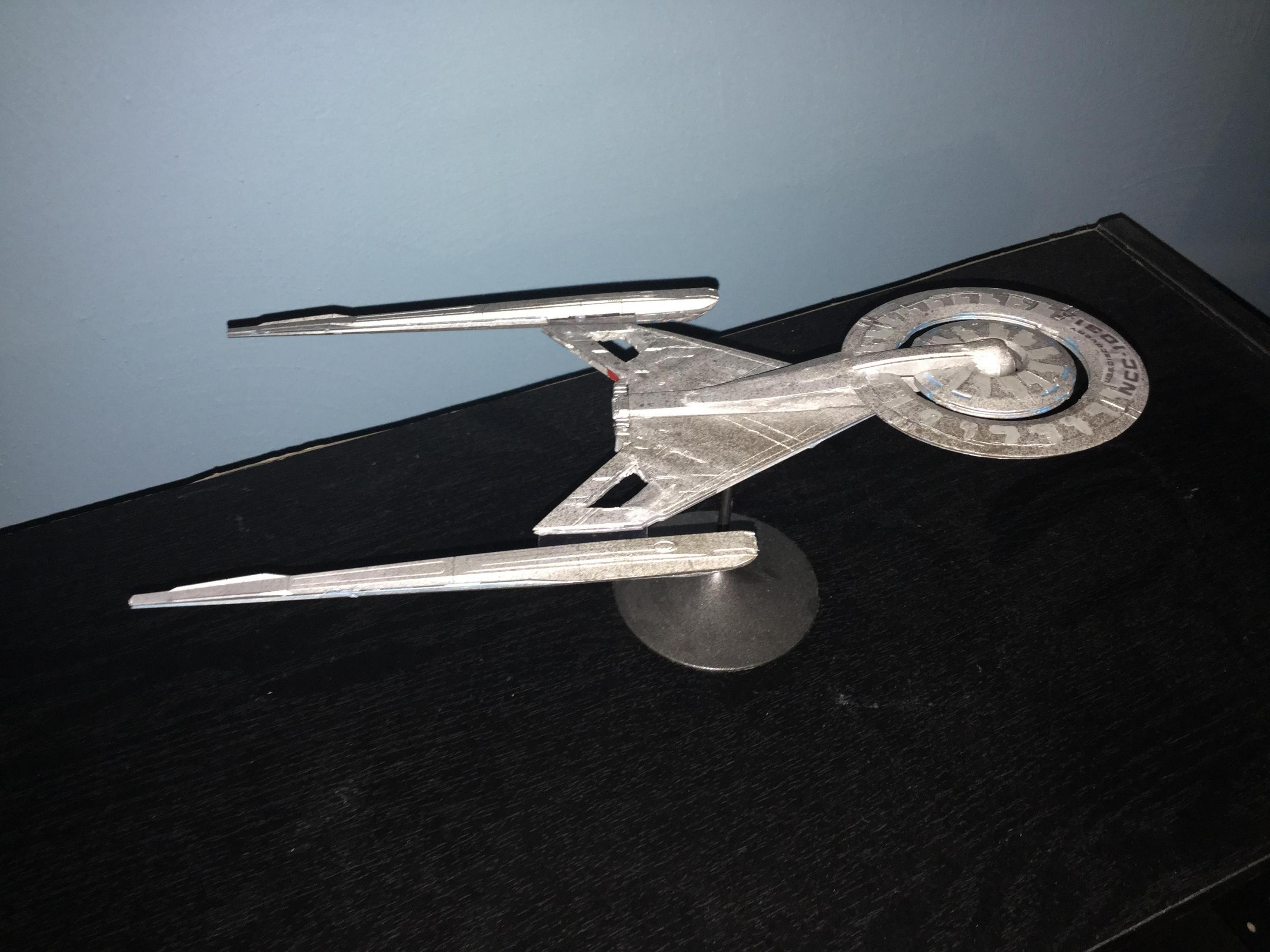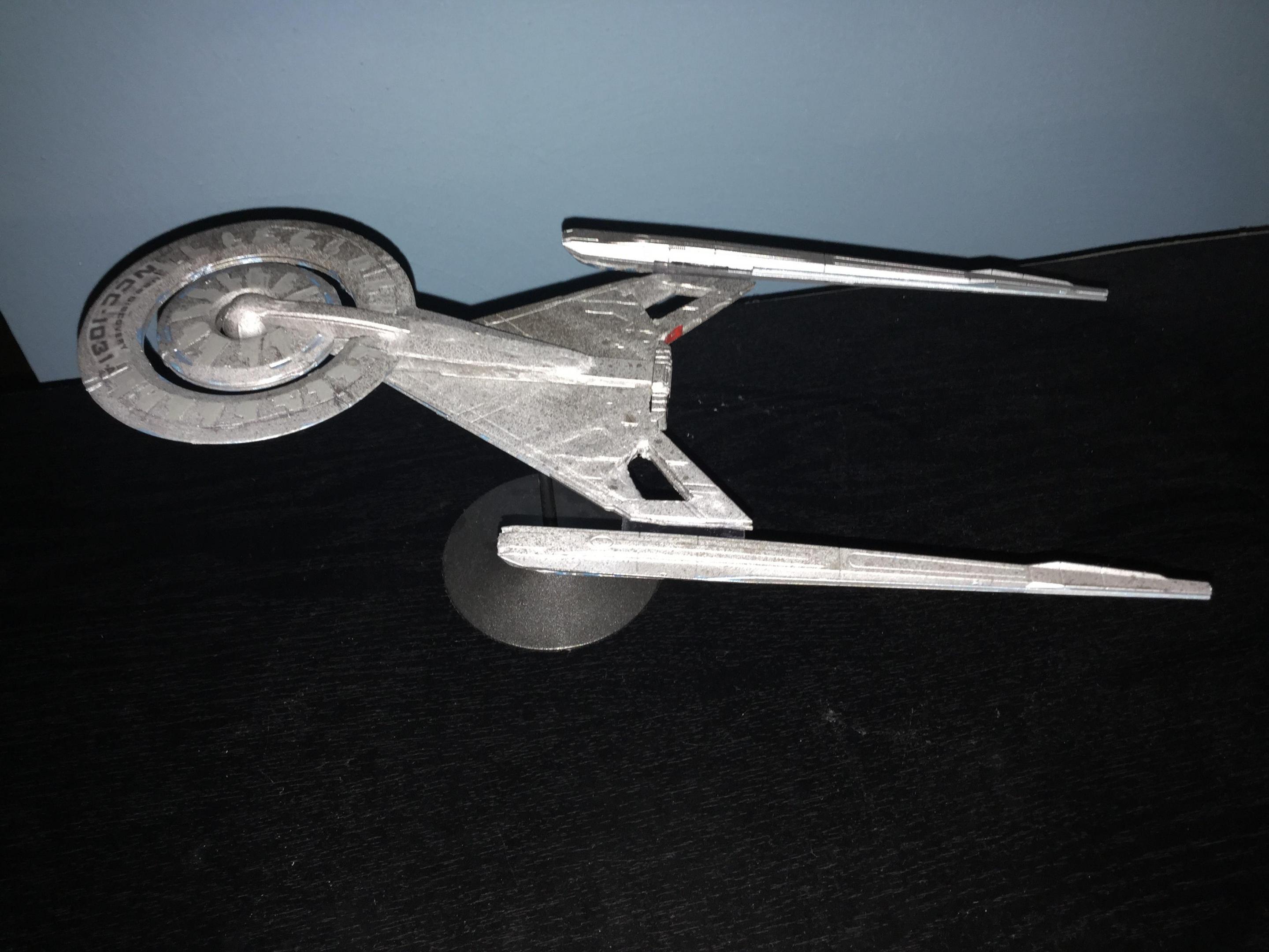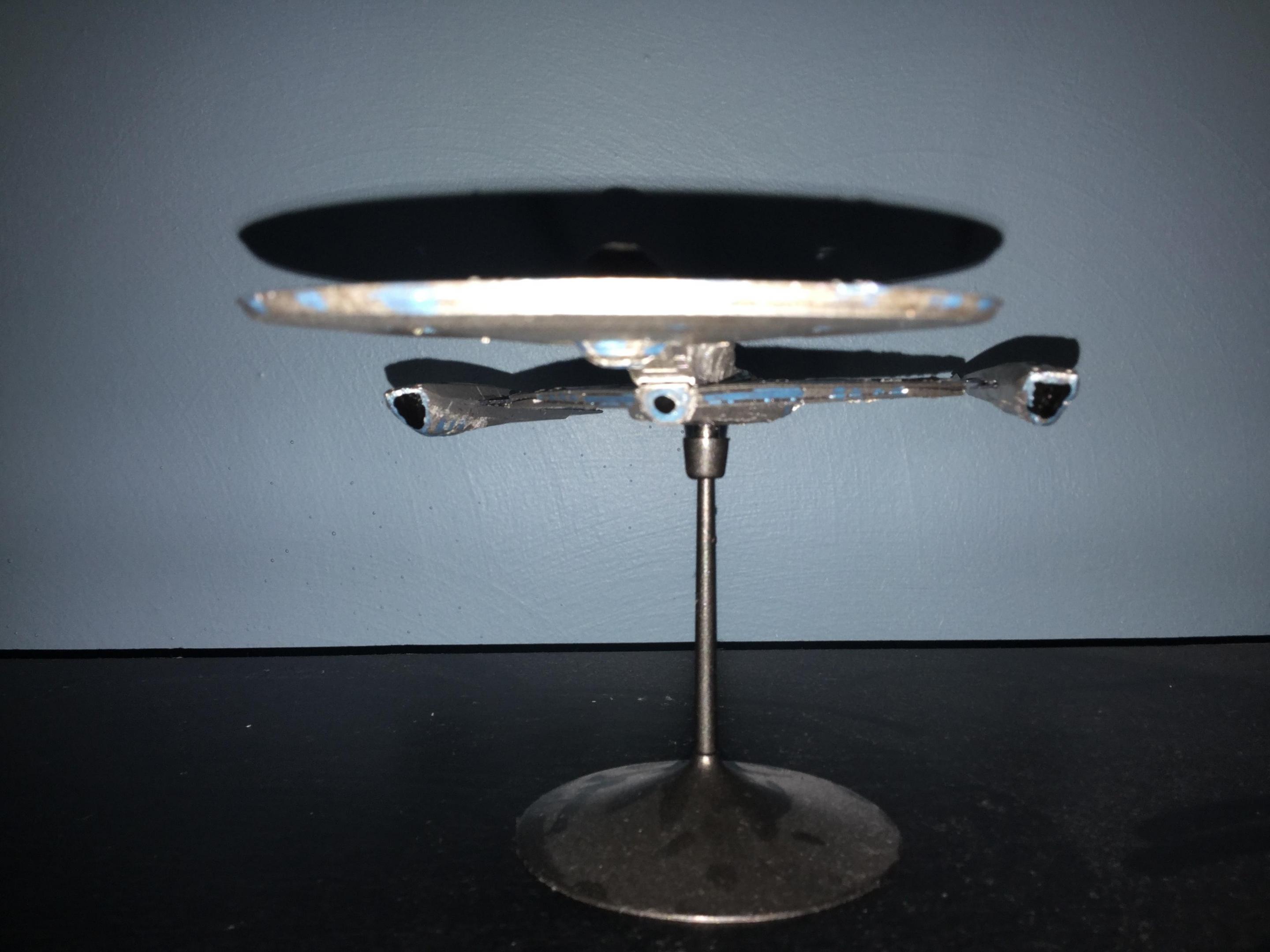 i moded a polar lights 1/2500 scale uss discovery ncc-1031 kit with some cutting some putty some scribing some some plastic to make the refited uss discovery ncc-1031-a so it is up to date with the late 32nd century starfleet in the year 3189 the reason the ship got the -A at the end of the regisrty number with this being only a refit is cause starfleet records show the uss discovery ncc-1031 was destroyed with all hands after the battle with control in the year 2258 and after the temporal wars in the early 31st century all time travel was baned and all devices and ships were destroyed and it was now fully illegal to time travel forward and backwards in time and instead of what starfleet records say happened to the ship and crew and capt pike and his crew on the enterprise and lt ash tyler only surviving section 31 officer left lied to the heads of starfleet during thier debriefing to hide the fact the ship and crew took the sphere data 930 years into the future so nothing like control a.i can happen agian so those are the two main reasons the discovery was given that -A cause as of the 32nd century the discovery and it's crew are all criminals for time traveling that starfleet and the federation are now harbouring and to keep up the pretense the discovery was destroyed and that is is a new ship with a new crew to the other groups who singed those temporal accords at the end of the temporal cold wars the ship now has programable matter intergrated into it's original computers and systems which now allow for detached nacelles that improves manuverbility and increased efficency in flight and since warp is limited to low warp speeds of warp 1 and 2 the discovery's spore drive makes the ship very valuble to starfleet as a rapid responder