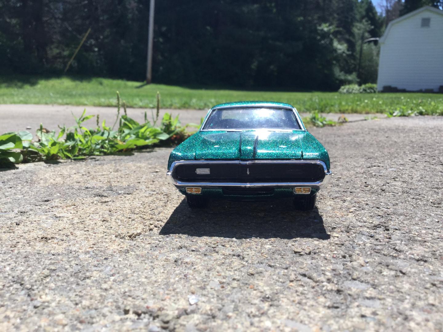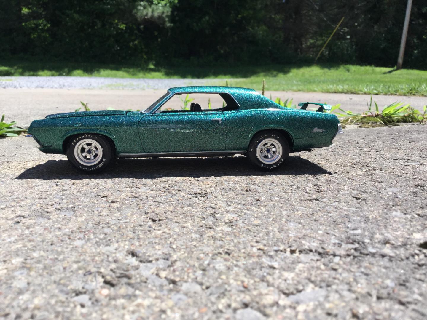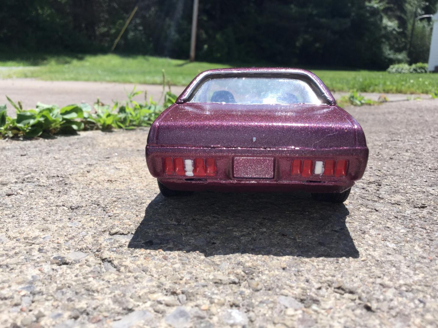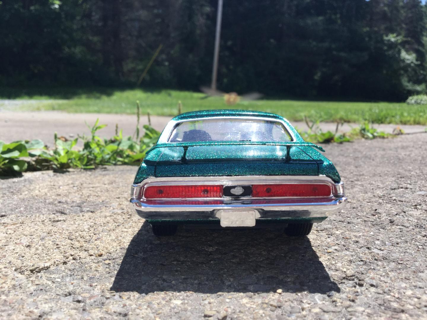 this was a 71 gtx was a parts car it was missing it's roof and wheels and tires and wheel backs most of the engine so i took a roof from a 69 superbee body i had and merged it with the body even though both were monogram kits and 1/24th scale it was not a easy joining of the roof to the body i used valve covers and air cleaner and carborator and fan belt and fan from my parts bags to rebuild the engine the hood also does not fit the body right either for some reason i painted it with kylon shimmer metallic black cherry decals came my decal box