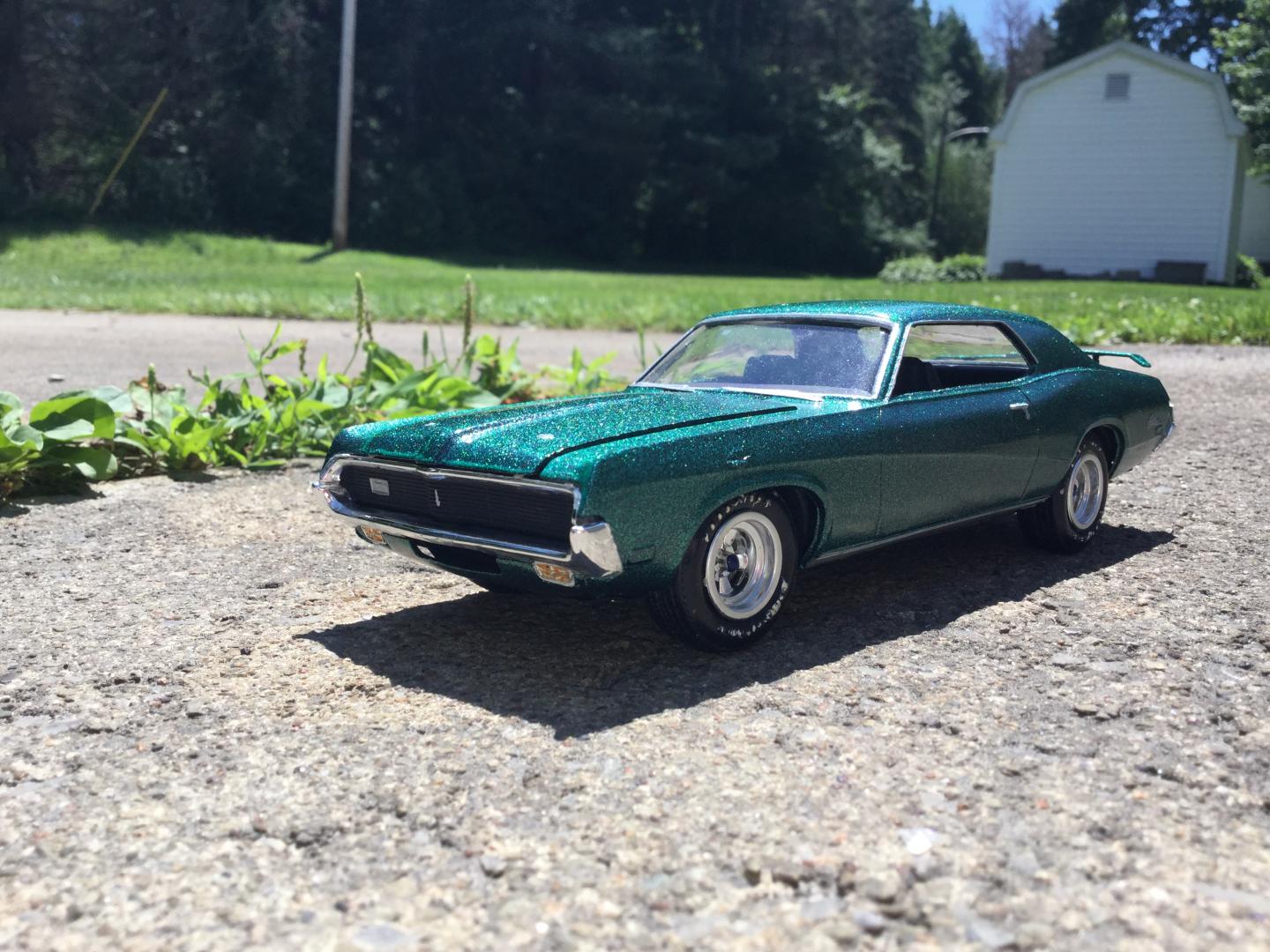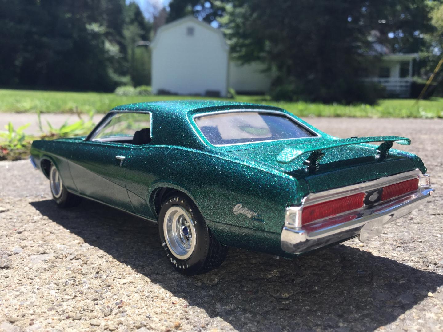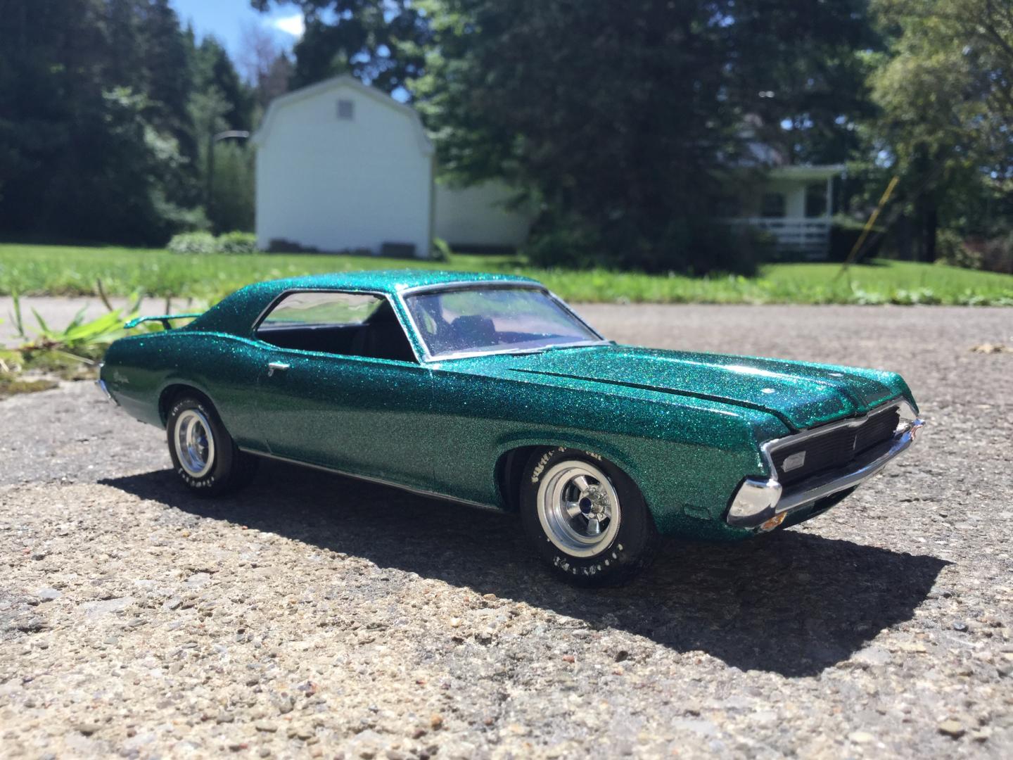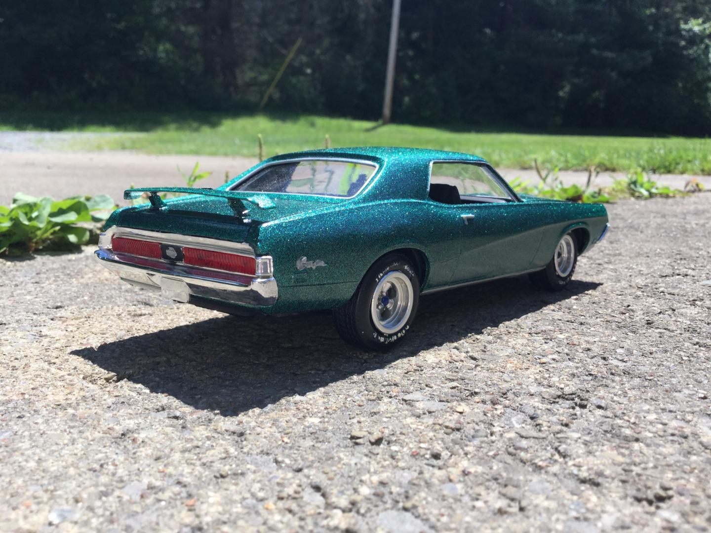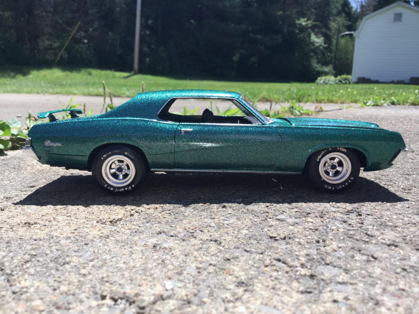 this was a 71 gtx was a parts car it was missing it's roof and wheels and tires and wheel backs most of the engine so i took a roof from a 69 superbee body i had and merged it with the body even though both were monogram kits and 1/24th scale it was not a easy joining of the roof to the body i used valve covers and air cleaner and carborator and fan belt and fan from my parts bags to rebuild the engine the hood also does not fit the body right either for some reason i painted it with kylon shimmer metallic black cherry decals came my decal box