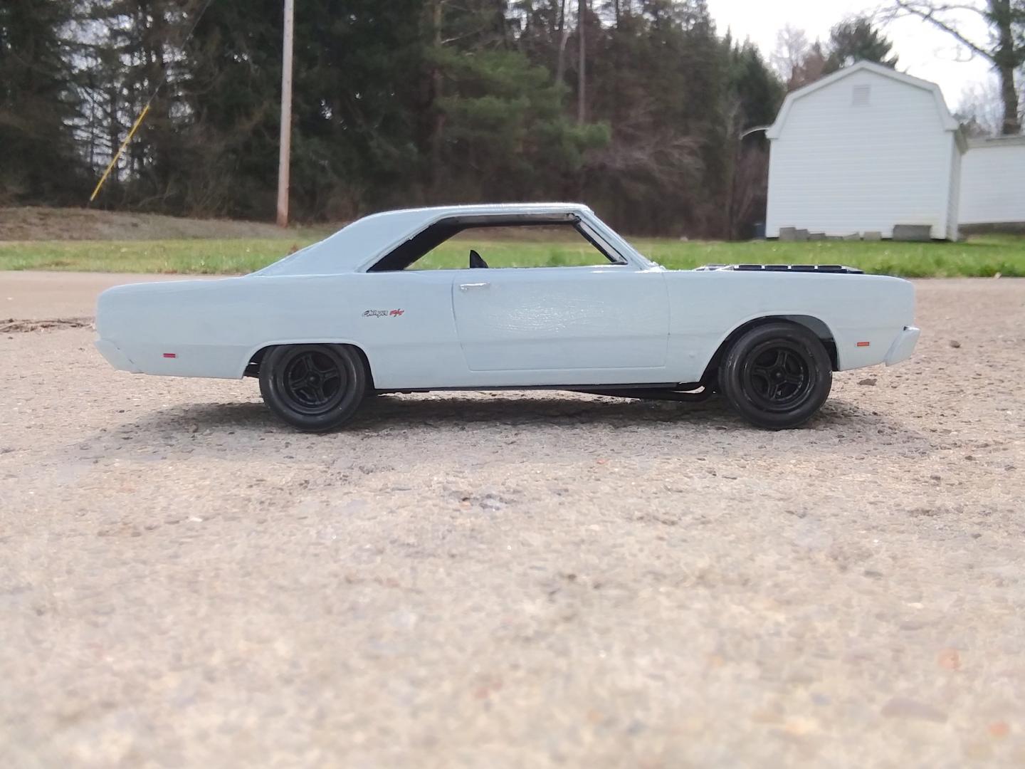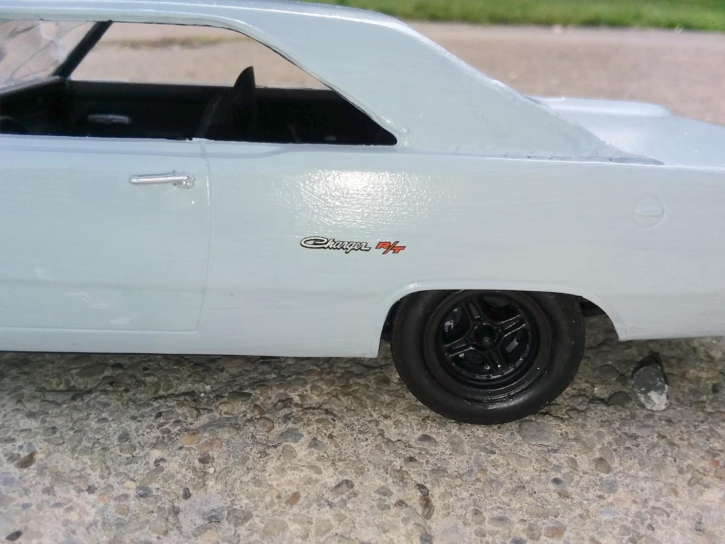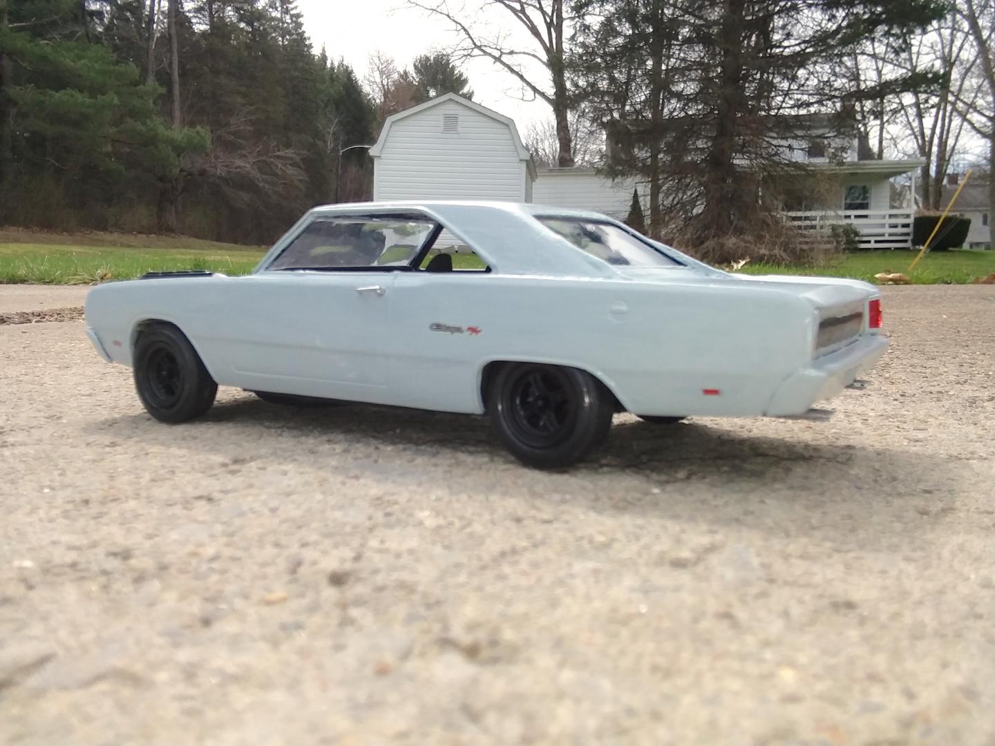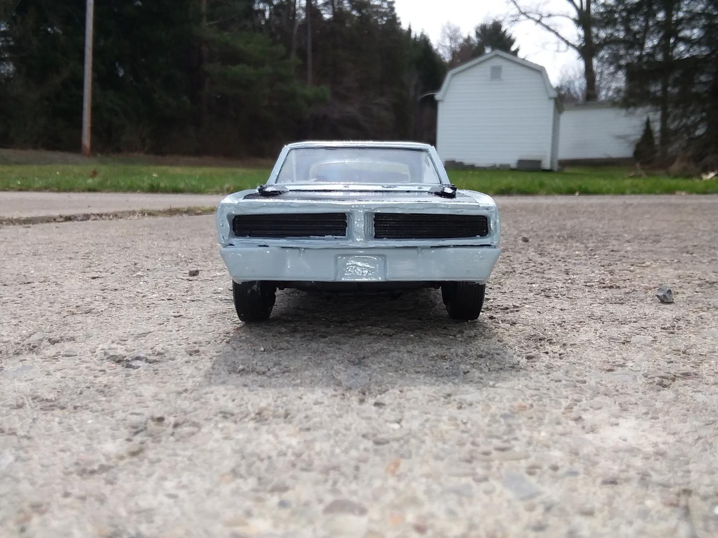 here is a custom kitbash i recently finished i used a 68 dart rebuilder i had and grille from a mpc 69 charger parts car used .060 plastic card to lengthen the rear pilars i made a new hood and scribed the front grille surround panel lines and moded the tail lights i based the paint job on the grey and black 70 us charger they used for fast five which was set in brazil so they should have used one of these chargers instead
