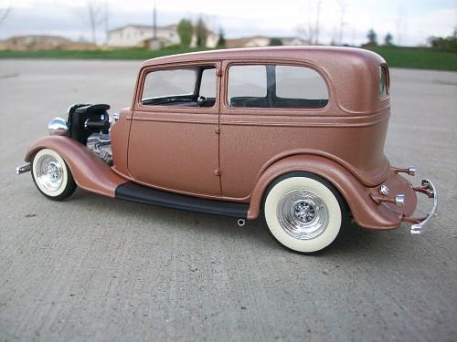 I started building the yellow version years ago. The biggest issue I discovered on it was the shape of quarter glass. It's too rounded and drops down a bit at the top rear. Pretty easily fixed. The rear of the roof can be fixed with some sanding. The grille on the box is nothing like the grille in the box. The grille in the yellow sedan is actually the most accurate of the AMT kits. It has more of a V to it. The hood sides are also much better than those in the five window. I was actually able to open the louvers on the hood sides on mine. IIRC, it's got some pretty cool aftermarket flathead parts. I'd like to get the '33 sometime just to check out the parts and such in it. I think it's street rod only.