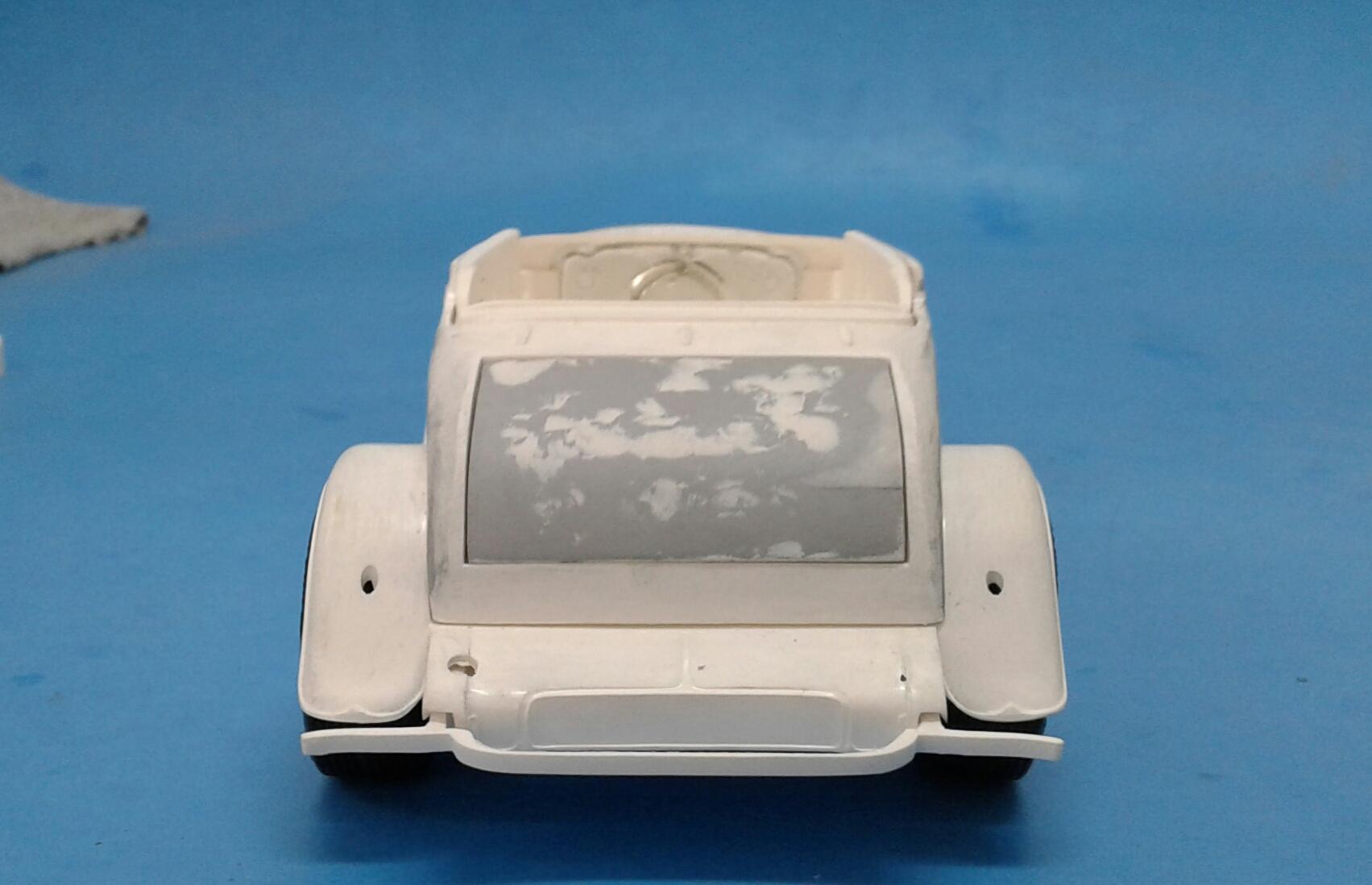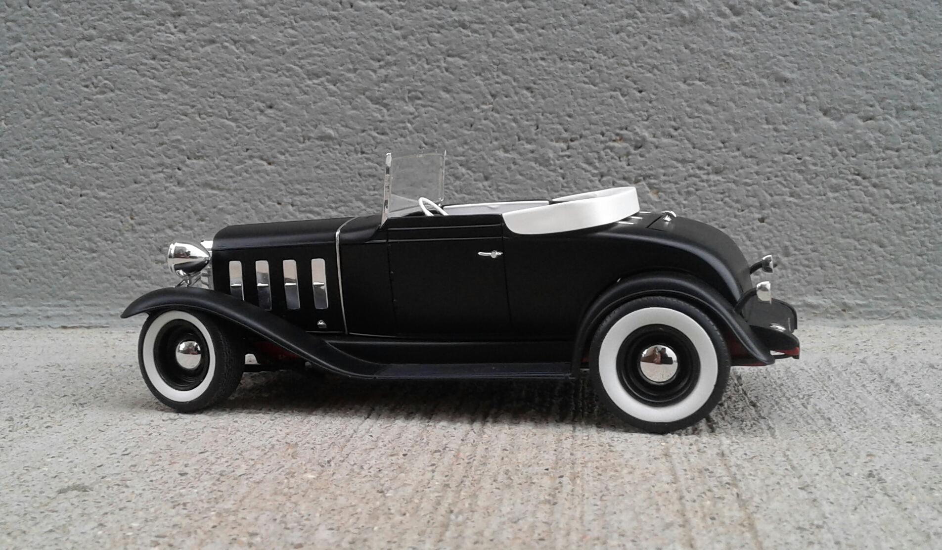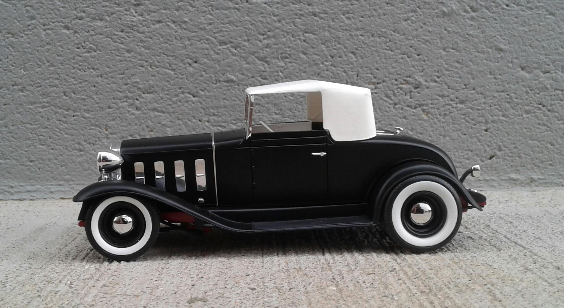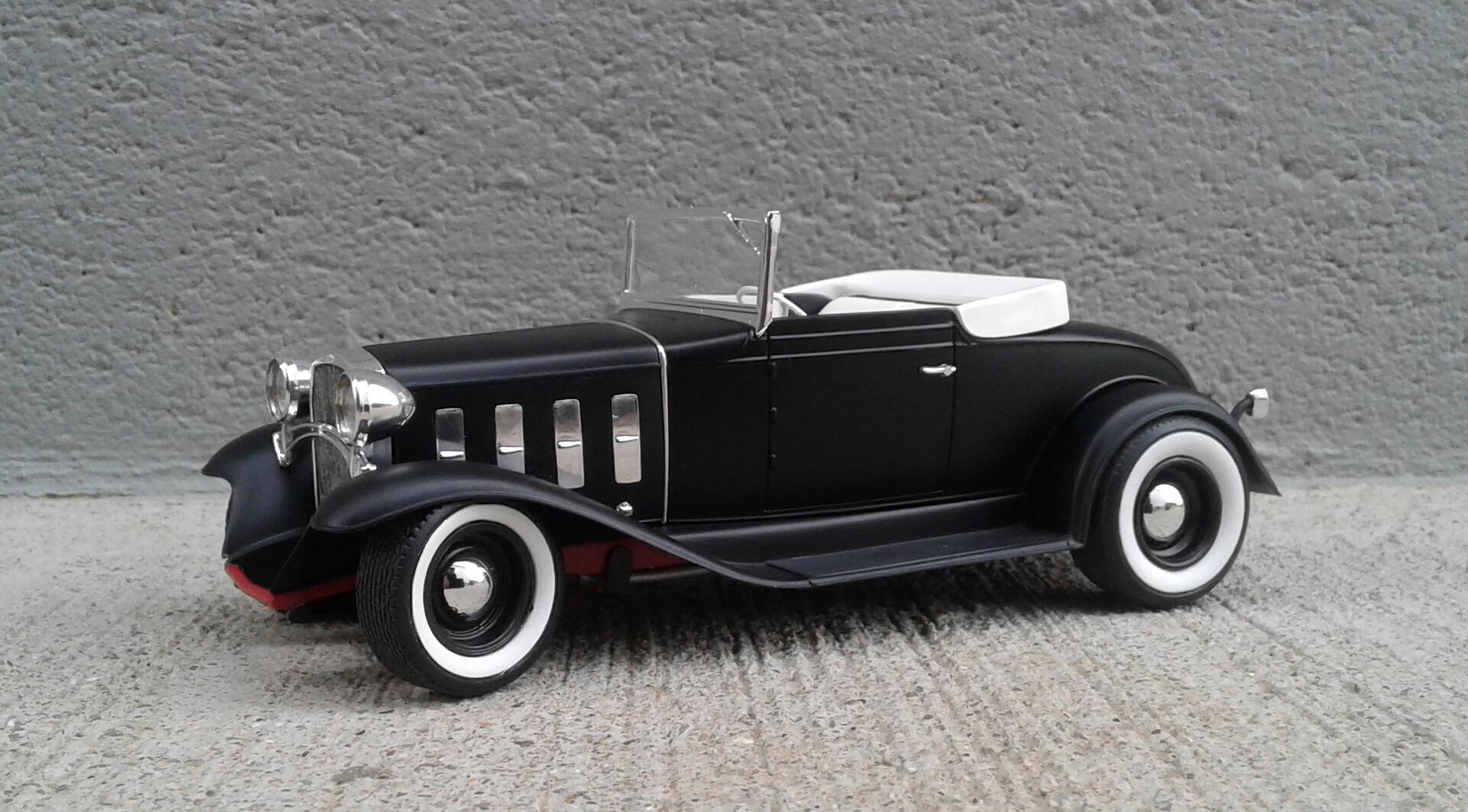 With the overwhelming popularity of the '32 Ford, it's Chevrolet counterpart receives about as much love as an ugly stepchild (no offense to ugly stepkids). They're a pretty rare sight for whatever reason. A rodded Chevy seems to be very rare. Even though I'm a Ford guy, I thought it was time to change that. Since I've stalled on no less than five projects this year, I wanted something simple. No details. No major changes. Just something almost box stock. The idea was to build something that someone could've built in their back yard or building back in the day. The biggest change was the engine. I swapped the anemic six cylinder for the 283 from the Revell '57 Chevy Sedan. I had to modify the belt and pulley setup to get them under the hood. The chrome breather from an AMT '55 Corvette and rocker covers from the parts box finished it off. It was covered with the very last squirt of Tamiya Bright Red. On the chassis, I moved two crossmembers to accommodate the engine, lowered the rearend and did an axle over conversion on the frontend. Luckily, I was able to keep the poseable steering. I cut away the bumper brackets front and rear. Then added a spreader bar up front. It was covered with Dupli Color Bright Red. On the body, all I did was remove the spare tire wells, filled a couple of holes, deleted the horns on the headlight bars and made new stalks for the stock taillights (my kit was missing one). It was then covered with Tamiya Semi Gloss Black. The interior is straight out of the box with different sheens of black and white. Tires are the old Good Year SCS's with painted whitewalls. Wheels are from two different AMT kits for the different offsets painted with Model Masters Semi Gloss Black. As usual, I had some trials and tribulations with this build. I'm definitely not a hot rod builder! But, in the end, I captured the look I was after. I'm pretty happy with how it turned out. Not my best. Not my worst. But, it'll do. Thanx for checking it out! Now I just gotta decide on which of my five previous projects to work on next!