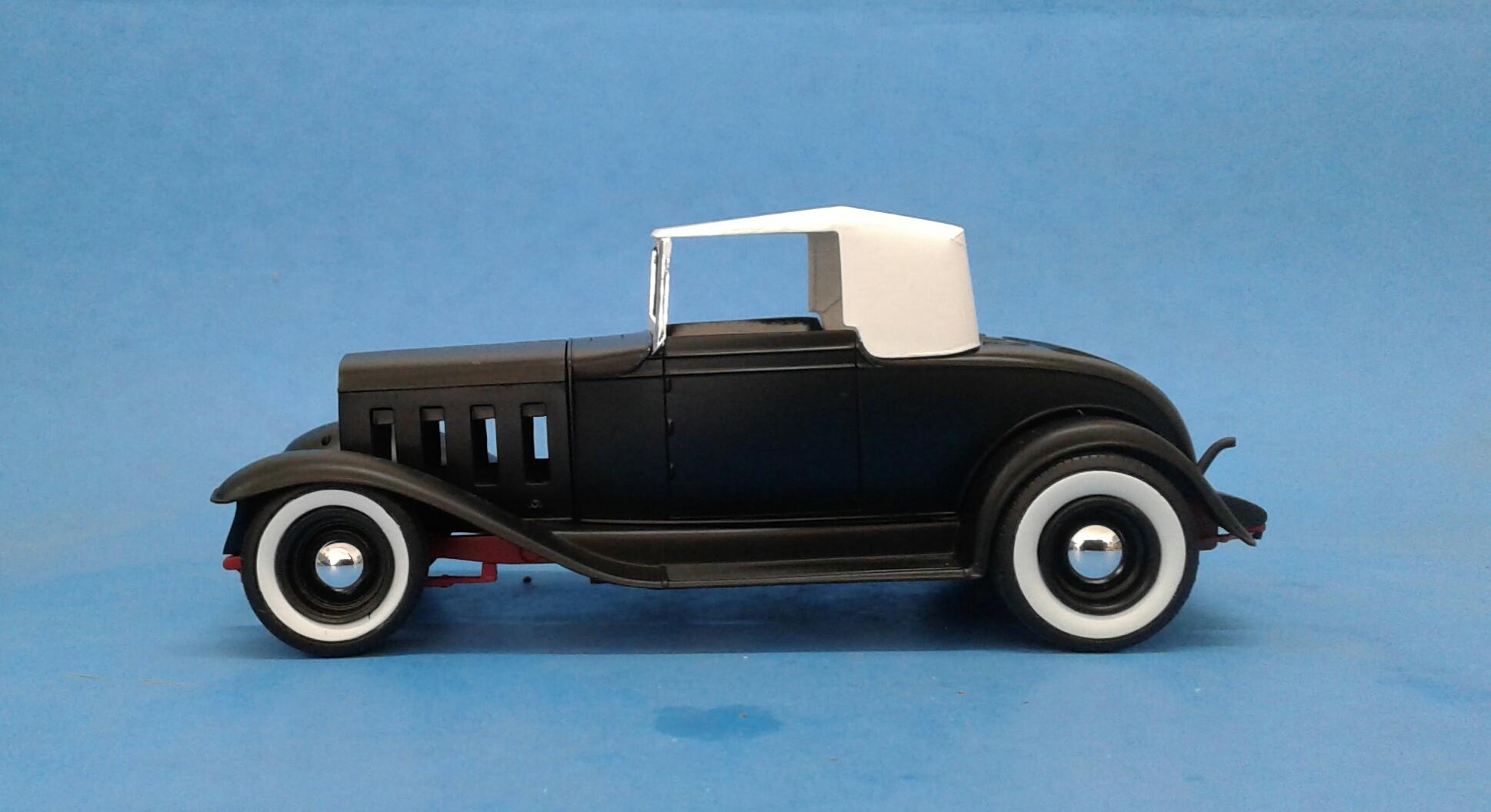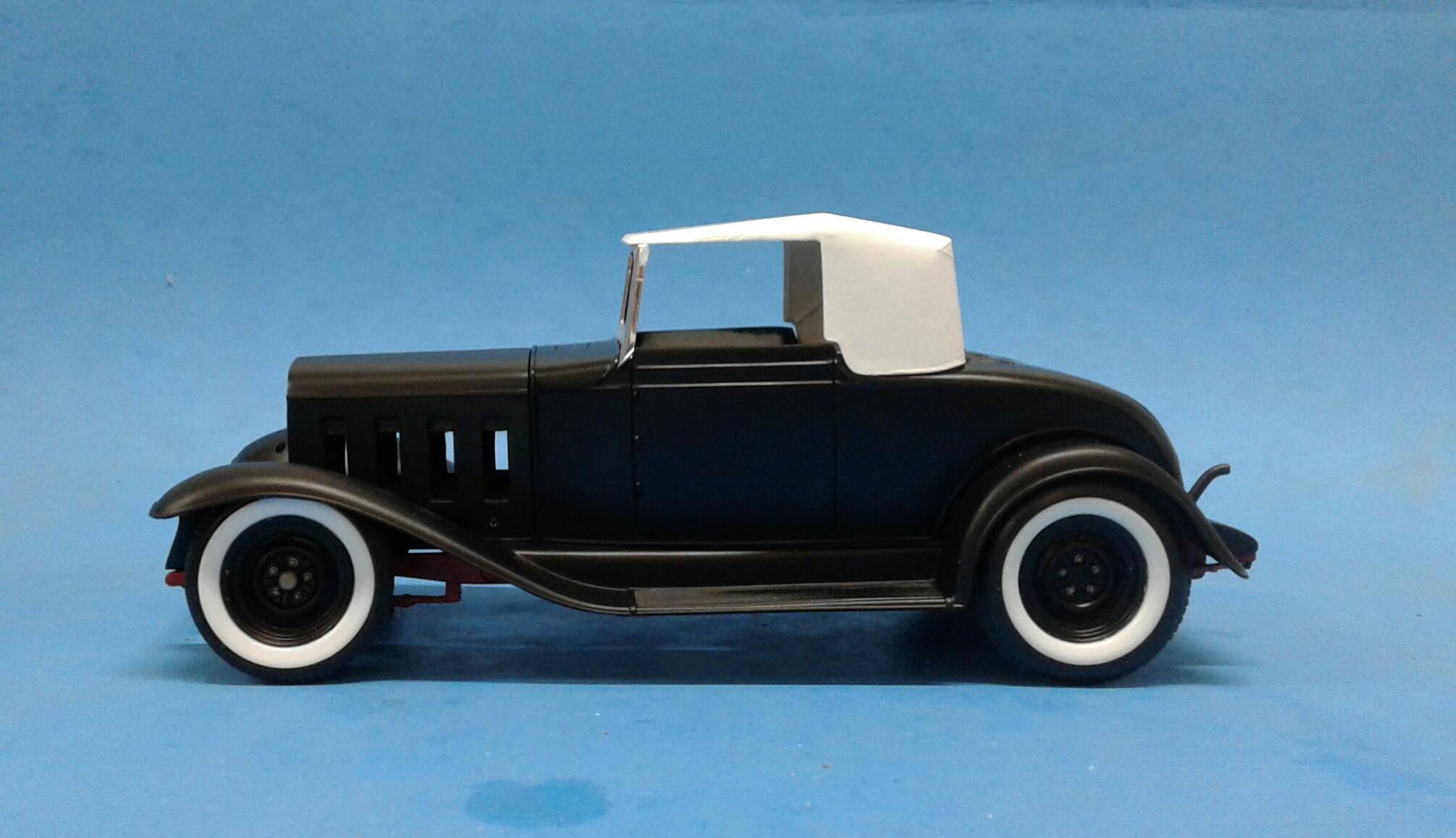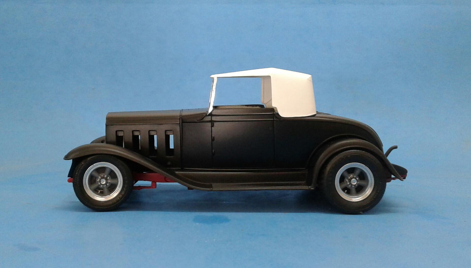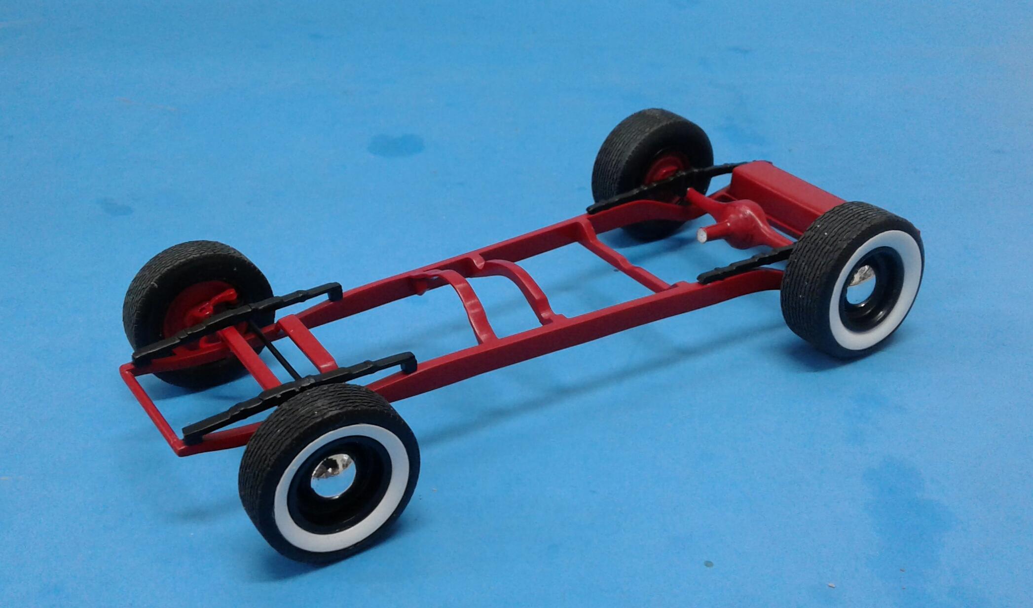 It's happened to me too many times. I keep thinking I'll get back to them. But, it rarely happens. This model has given me a hankering to get back in on this old model. It's been idling for about four years. Back to this one! I now have a rolling chassis! I was able to keep the poseable steering on it. I still have to add the pitman arm, steering link and I may or may not add the shocks. I think it's gonna make a cool looking old hot rod when it's done! Right now, I'm mulling over the interior color. I don't know if I should do the stock brown color or white. I'm really leaning towards white. But, it could be too much. It kinda looks too much in the bare styrene with the top on. But, it looks right with the folded down top. I may try an off white. -