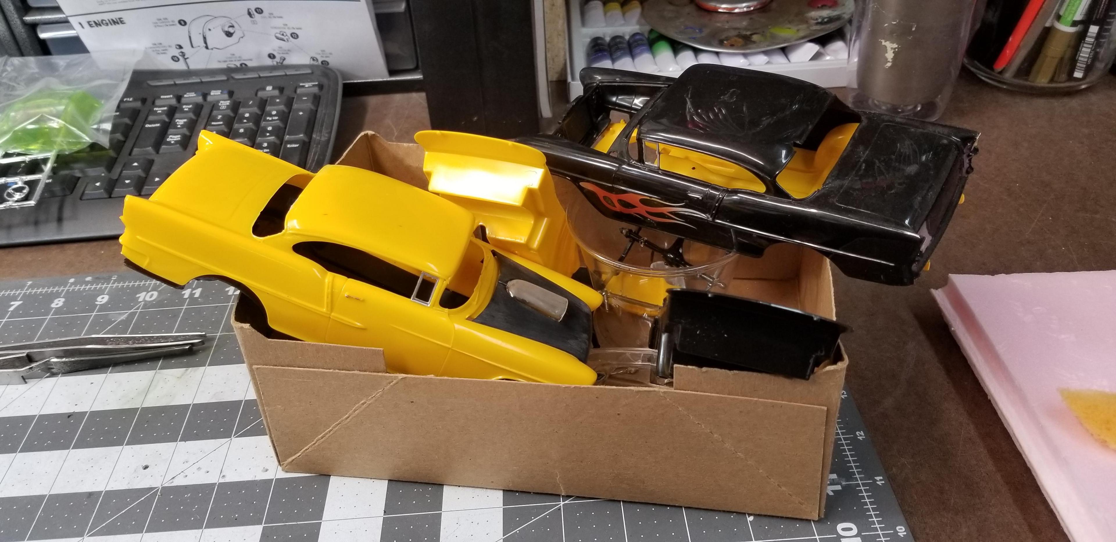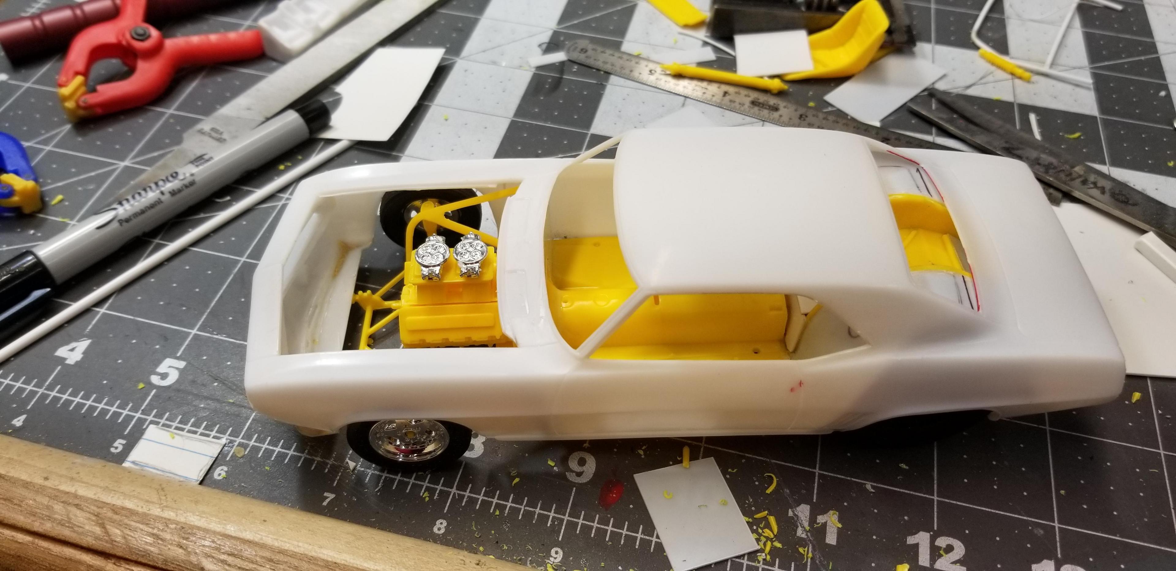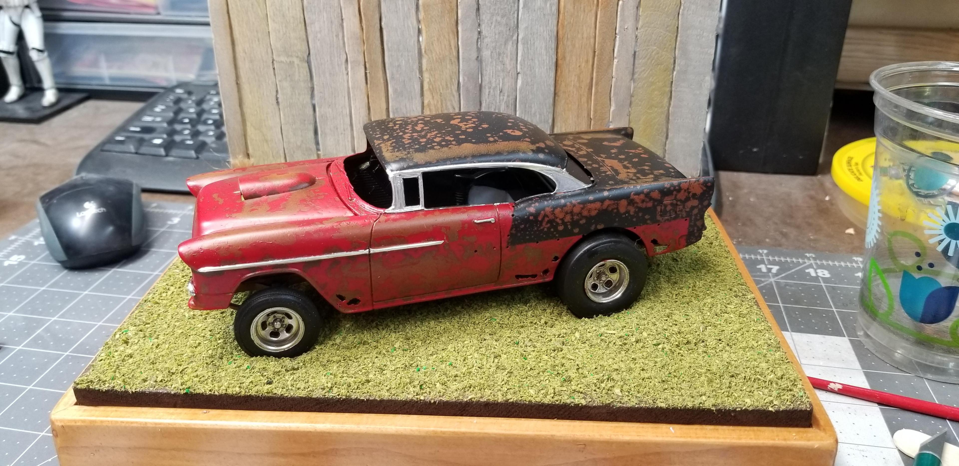 I've had these kits kicking around for a long time. I got them from a friend in a pile of stuff. There isn't enough parts to build a a complete car. So I figured I'd make it as an old Gasser left outside to die.